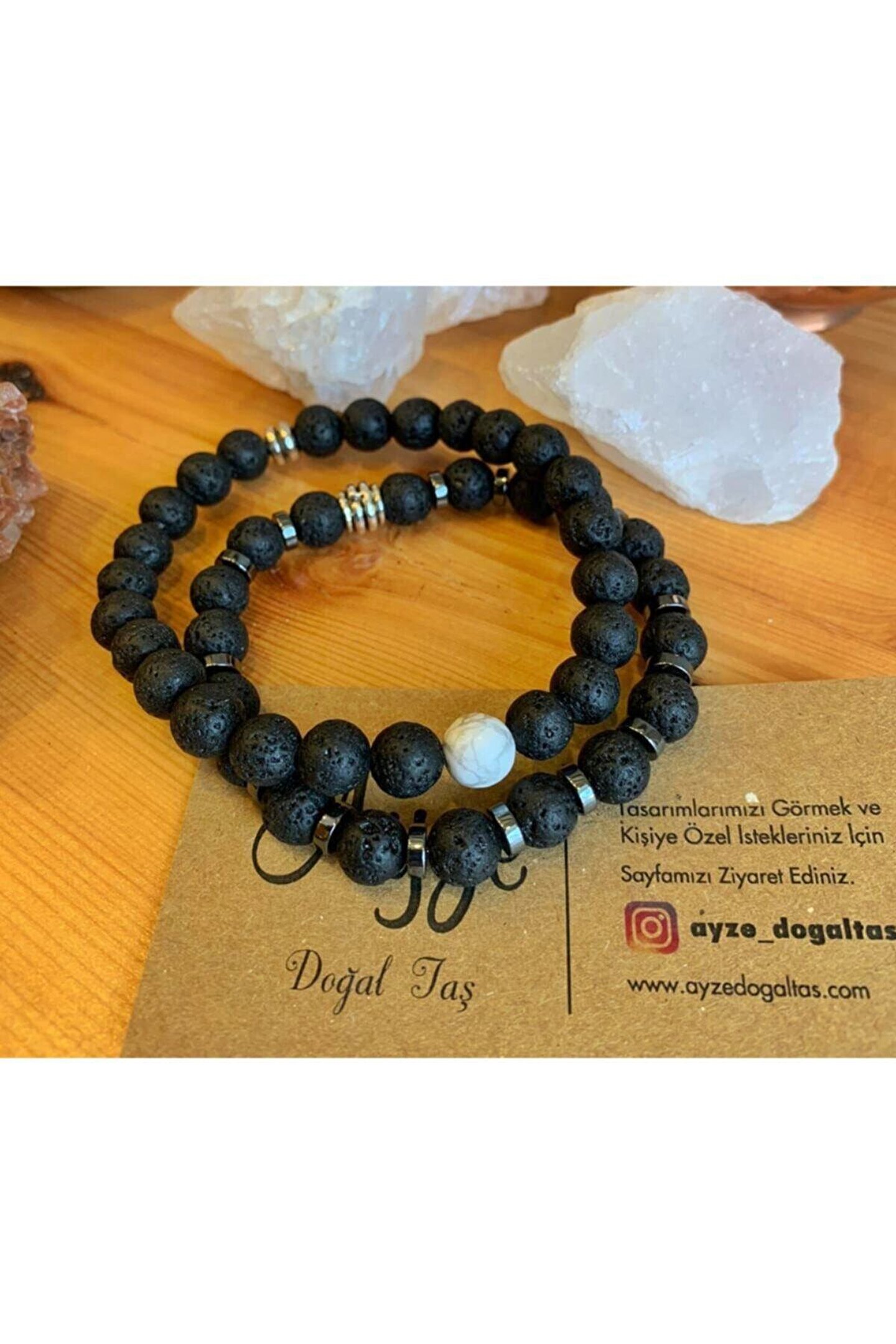 - Doğal taş kullanımı sayesinde her bileklik benzersiz ve otantik bir görünüm sunar; - Taş cinsi olarak seçilen lav taşı, bilekliğe doğal bir parlaklık ve estetik bir dokunuş katar; - Taş materyali ile üretilen bu bileklik, dayanıklılığı ve şıklığı bir arada sunar;