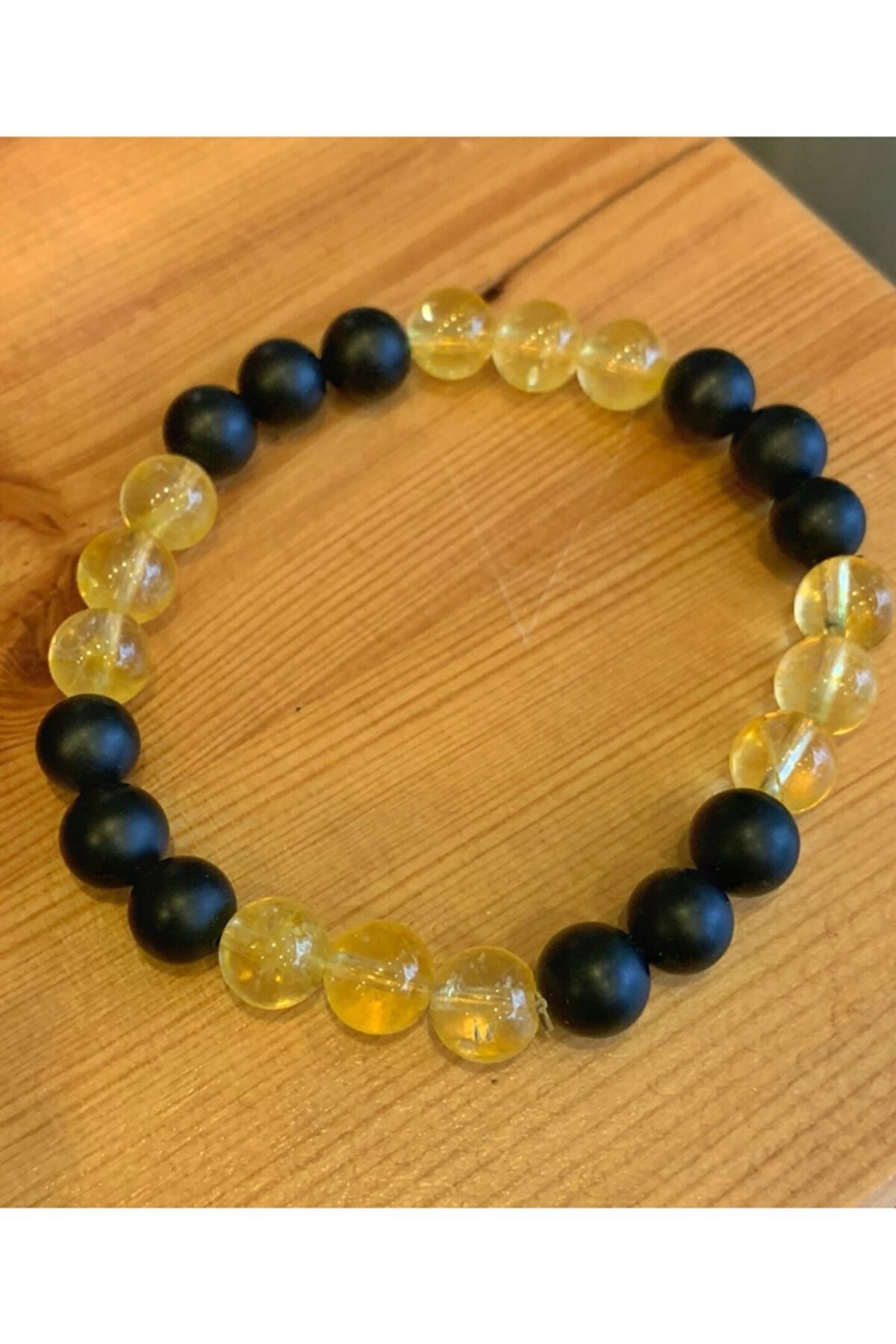 Doğal taş kullanımı, her bir bilekliğin benzersiz ve otantik bir görünüm kazanmasını sağlar; Sitrin ve oniks taşı kombinasyonu, şıklığı ve zarafeti bir arada sunar; Bu bileklik, günlük kullanım için idealdir ve her türlü kıyafetle uyum sağlar; Doğal taşların eşsiz dokusu, bilekliğe karakteristik bir hava katar; Hem günlük hem de özel günlerde tercih edilebilecek çok yönlü bir aksesuar seçeneği sunar;