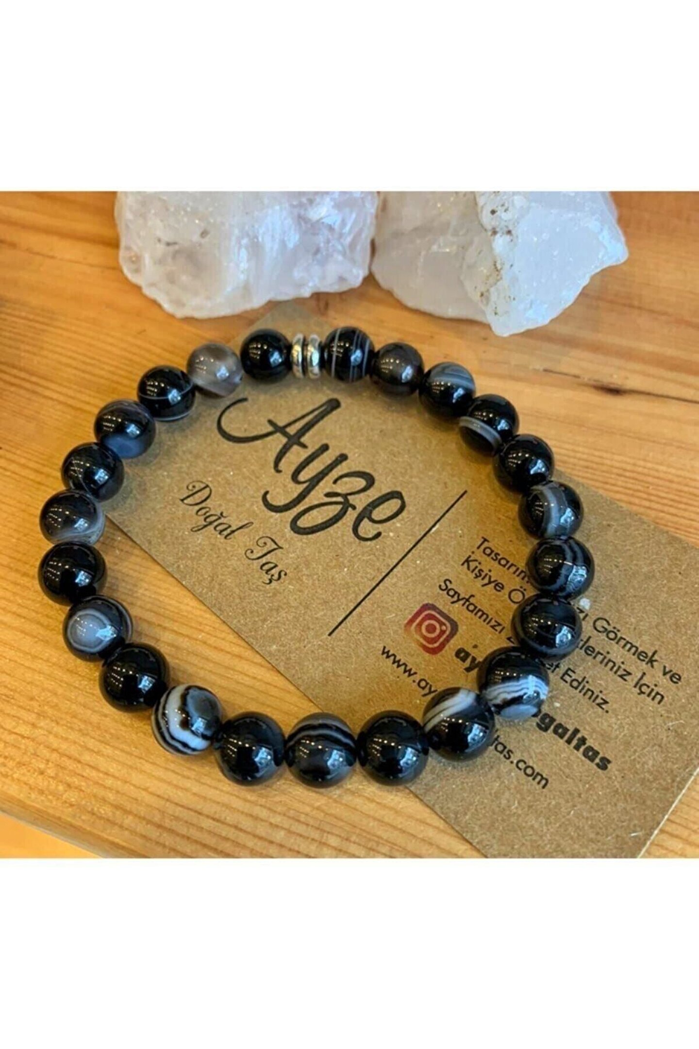 AYZE DOĞALTAŞ Siyah Akik Bileklik
