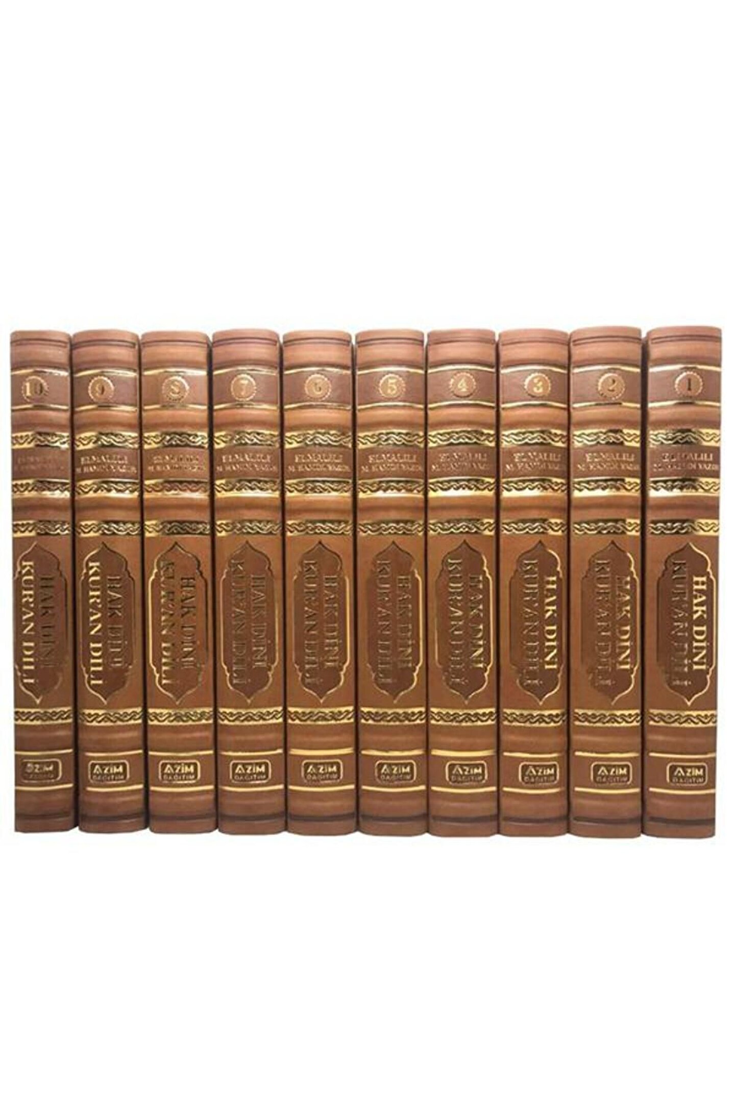 Hak Dini Kur'an Dili Elmalı Tefsiri - 10 Ciltli Termo Deri Ciltli - 40. yıl Özel Baskı ; Osmanlıulemasının en önemli şahsiyetlerinden biri olan Elmalılı Muhammed Hamdi Yazır,ömrünü İslamdinine adamış; üstün yetenekleri, muhakeme gücü, dehâ çapındaki zekâsı, ilmi vekültürüyle ün salmış büyük din alimidir. Süleymaniye Medresesi Müderrisliğivazifesinde de bulunan Elmalılı Hamdi, ilmi hizmetleri sebebiyle, Osmanlınişanı ile ödüllendirilmiştir. ; MuhammedHamdi, 1926'da yazımına başladığı, sabırla ve itinayla sürdürdüğü "HakDini Kuran Dili" adlı tefsirini, on iki yıllık uzun ve zorlu çalışmanınardından, 1938'de tamamladı. Milletimizin Kur'an-ıKerim'i daha iyi anlayabilmesi amacıyla yazılan bu eser, ilim çevreleriningüven ve takdirini kazananönemli tefsirlerdendir. 10Cilt ; Hadis,Ayet ve Tefsirlerden Alıntılar Tamamen Tahricli. Rical,Alfabetik Fihrist ve Lügatçe İlaveli. ; TürkiyedeBenzeri Bulunmayan Bu Şaheser, Artık Günümüz Türkçesinde İnsallığıkaranlıktan çıkaracak ilahi mesaj, Elmalı M.Hamdi Yazırım Kuran tefsiri ilesizleri aydınlığa çağırıyor cumhuriyet döneminin en büyük tefsirçalışmalarından biri olması Prof.Dr.İsmailKaraçam Yrd.Doç.DrEmin Işık Dr.NusrettinBolelli AbdullahYücel tarafındanyapılan bu sadeleştirmenin halen aşılamamış olması bu esere ayrı bir önemkazandırmaktadır. ;