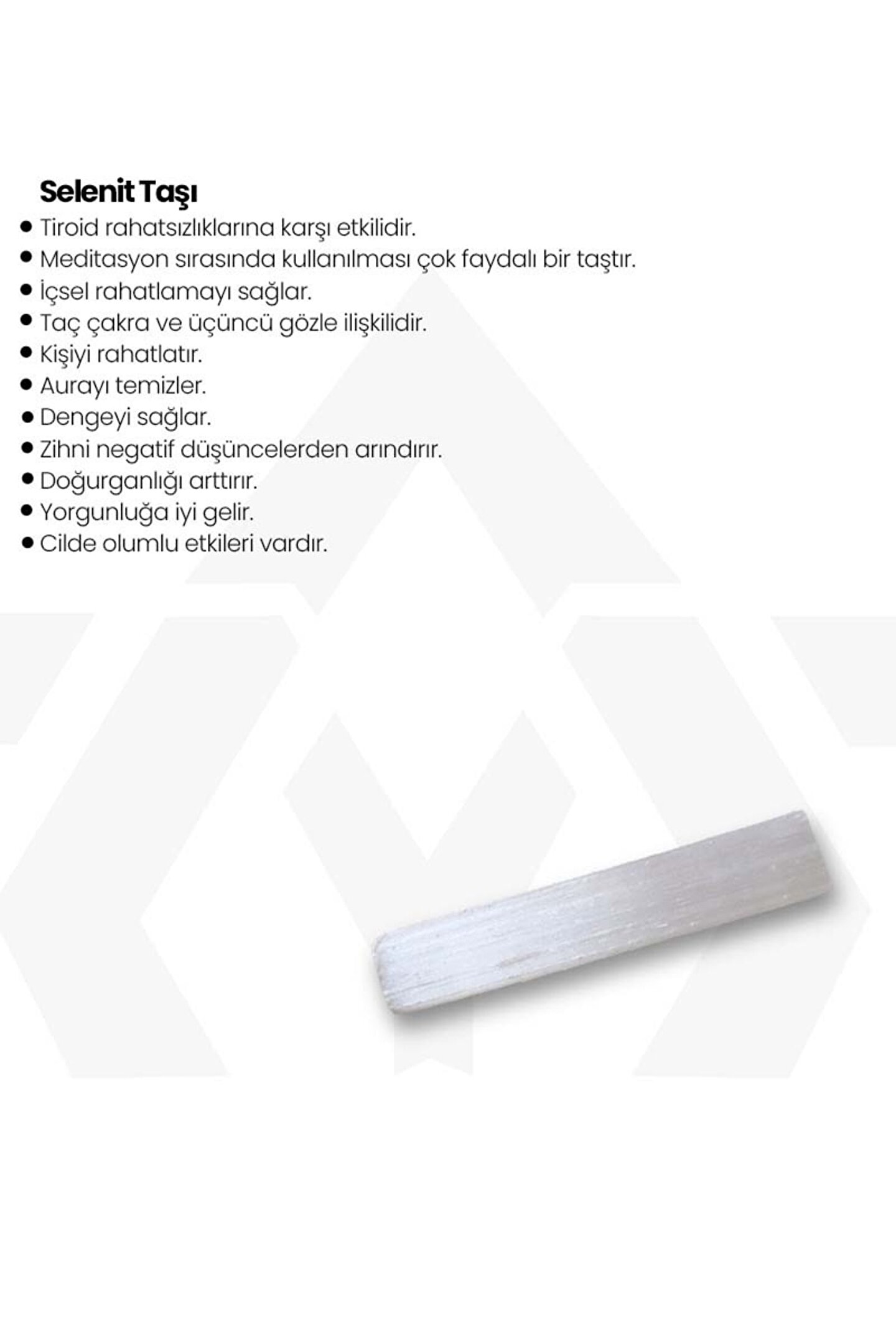 Ürünlerimizde şekil, renk ve desen farklılıkları görülebilir. Selenit Taşının Faydaları Tiroid rahatsızlıklarına karşı etkilidir. ; Meditasyon sırasında kullanılması çok faydalı bir taştır. ; İçsel rahatlamayı sağlar. ; Taç çakra ve üçüncü gözle ilişkilidir. ; Kişiyi rahatlatır. ; Aurayı temizler. ; Dengeyi sağlar. ; Zihni negatif düşüncelerden arındırır. ; Doğurganlığı arttırır. ; Yorgunluğa iyi gelir. ; Cilde olumlu etkileri vardır. ;