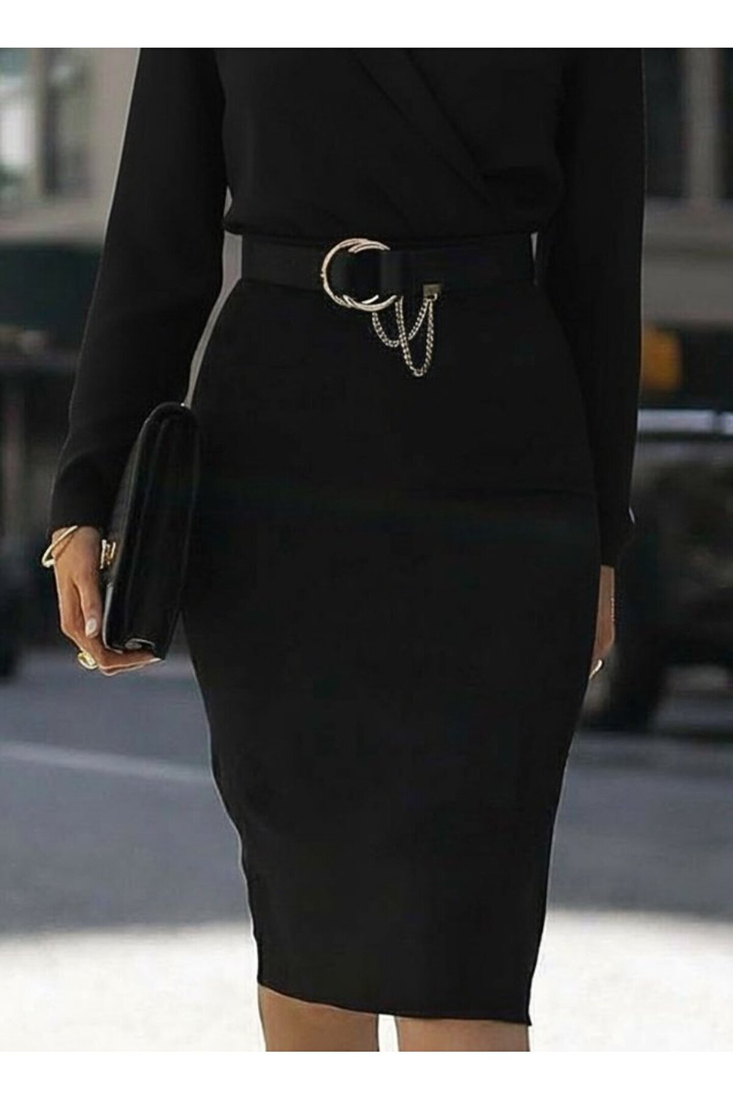 babatr.com EQURİ Kadın Uzun Kollu Kruvaze Yaka Janjan Krep Midi Elbise