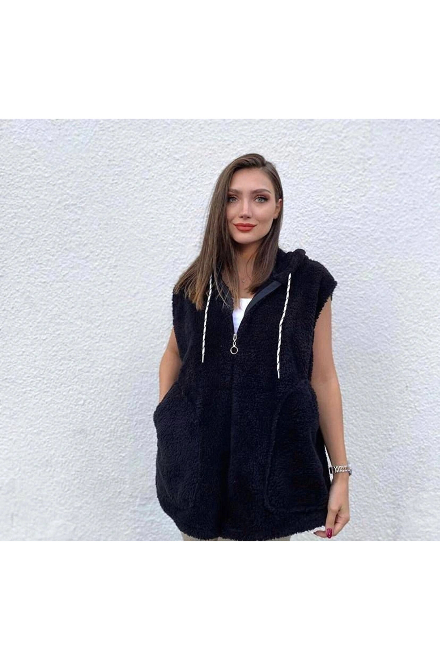 babatr.com Kadın Kapüşon Ve Fermuar Detay Welsoft Kolsuz Yelek