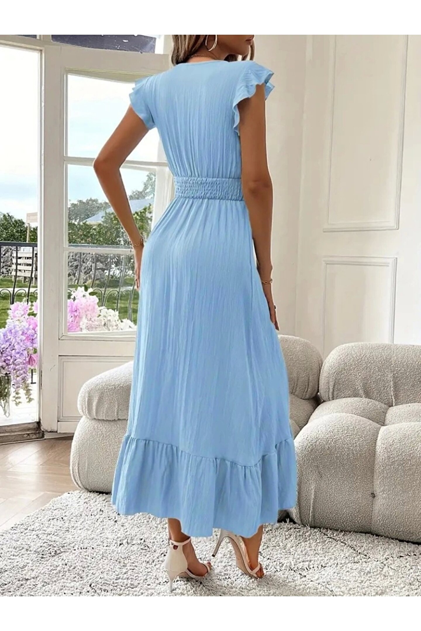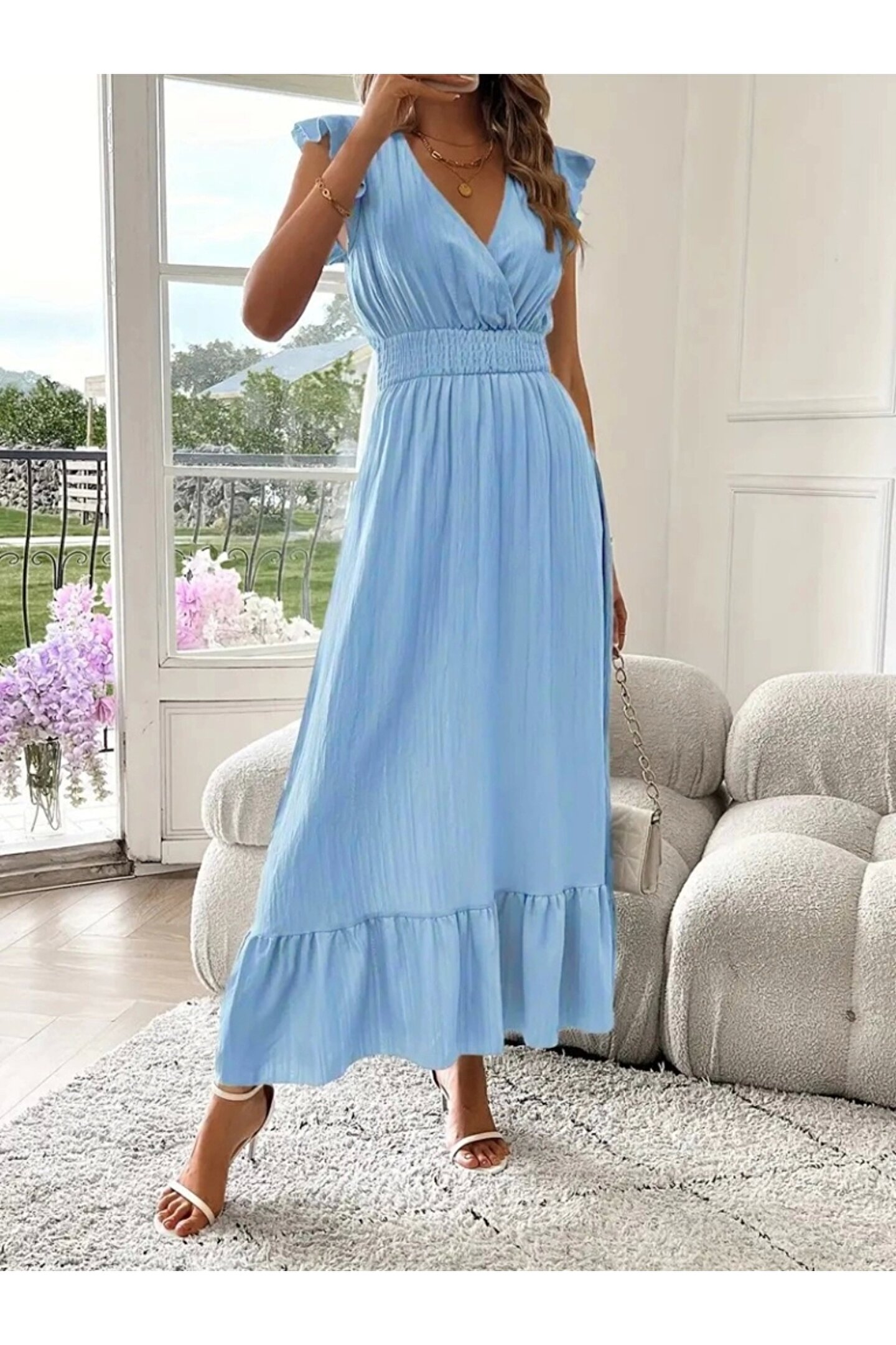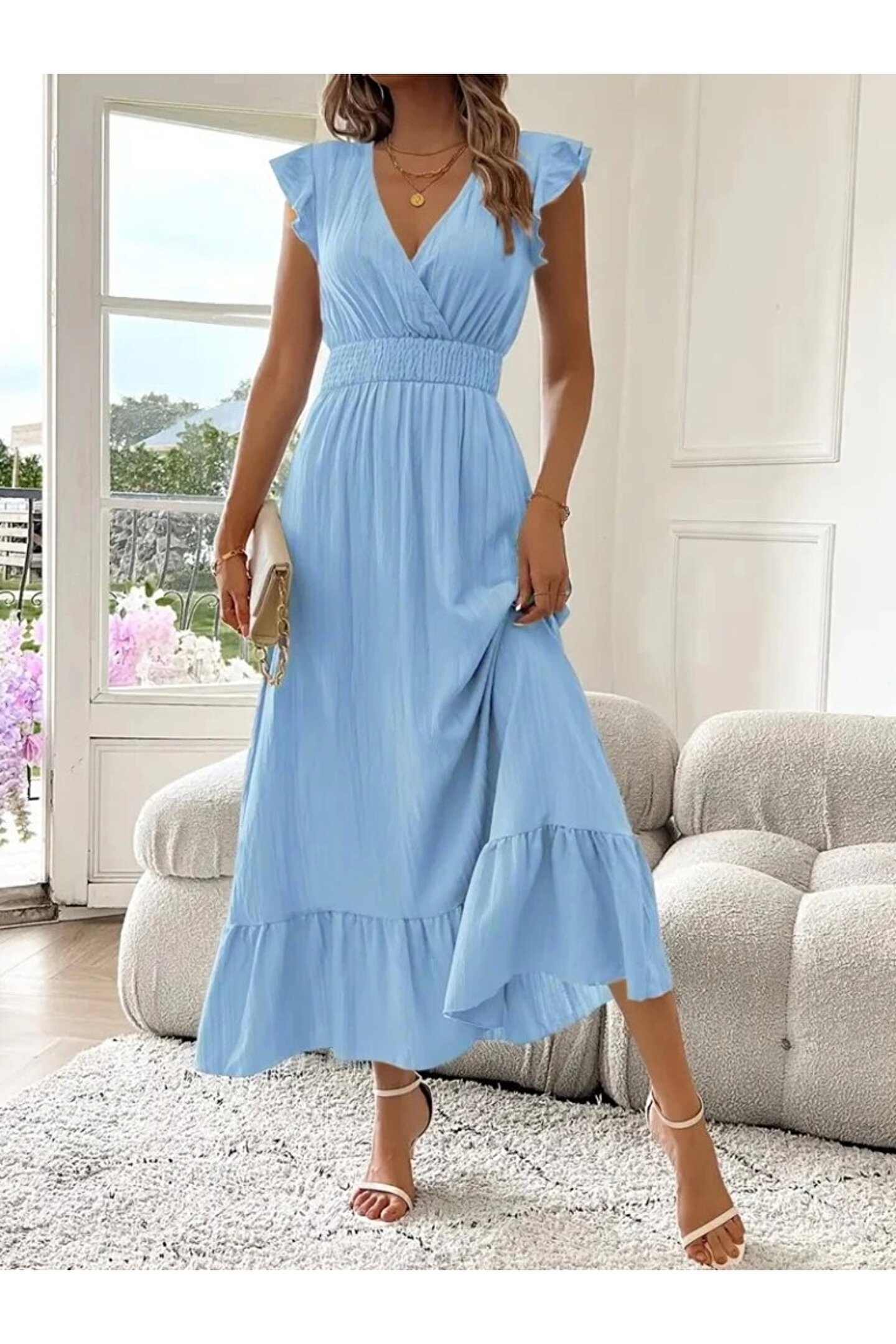Kadın Kısa Kollu Kruvaze Yakalı Beli Lastikli Müslim Elbise