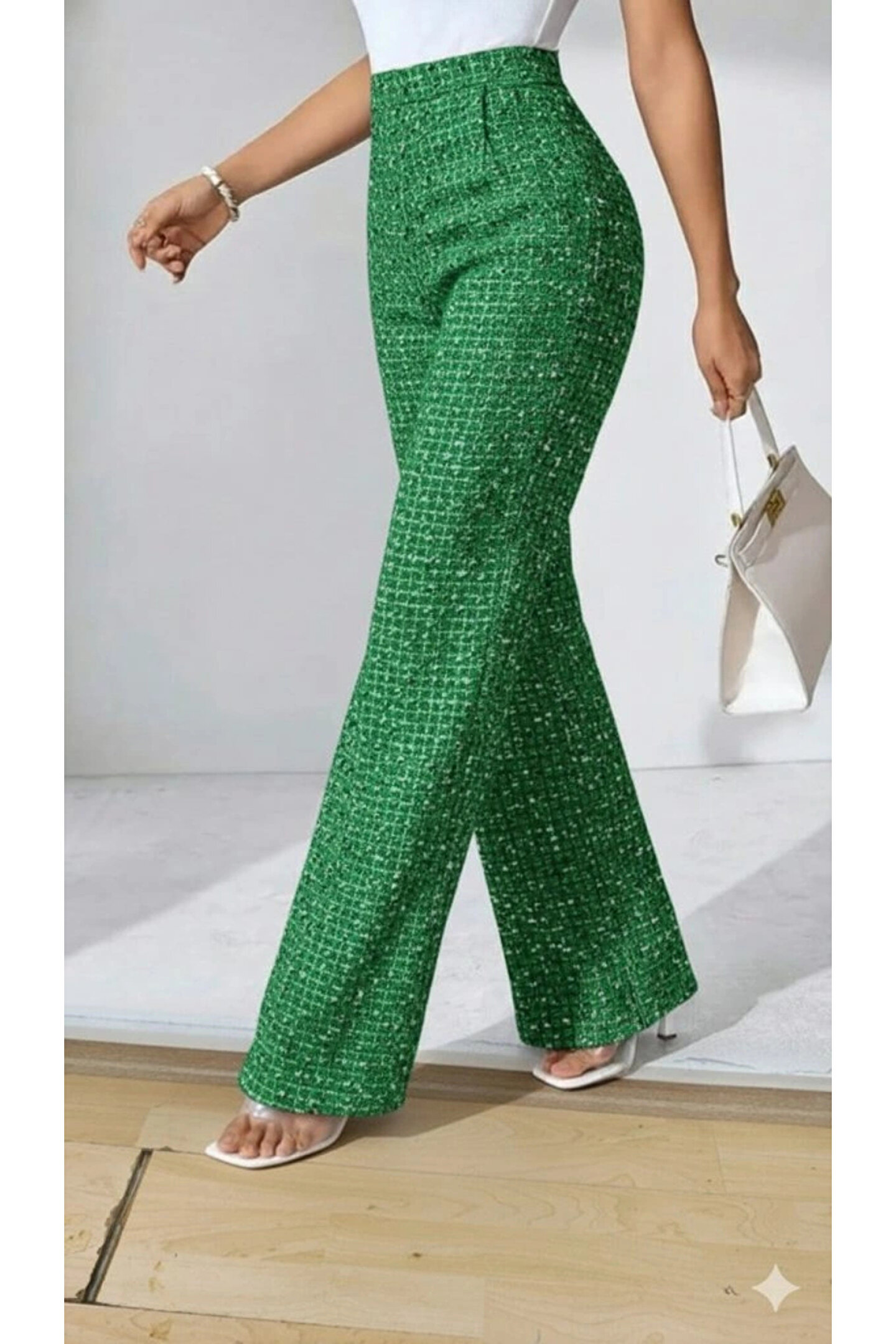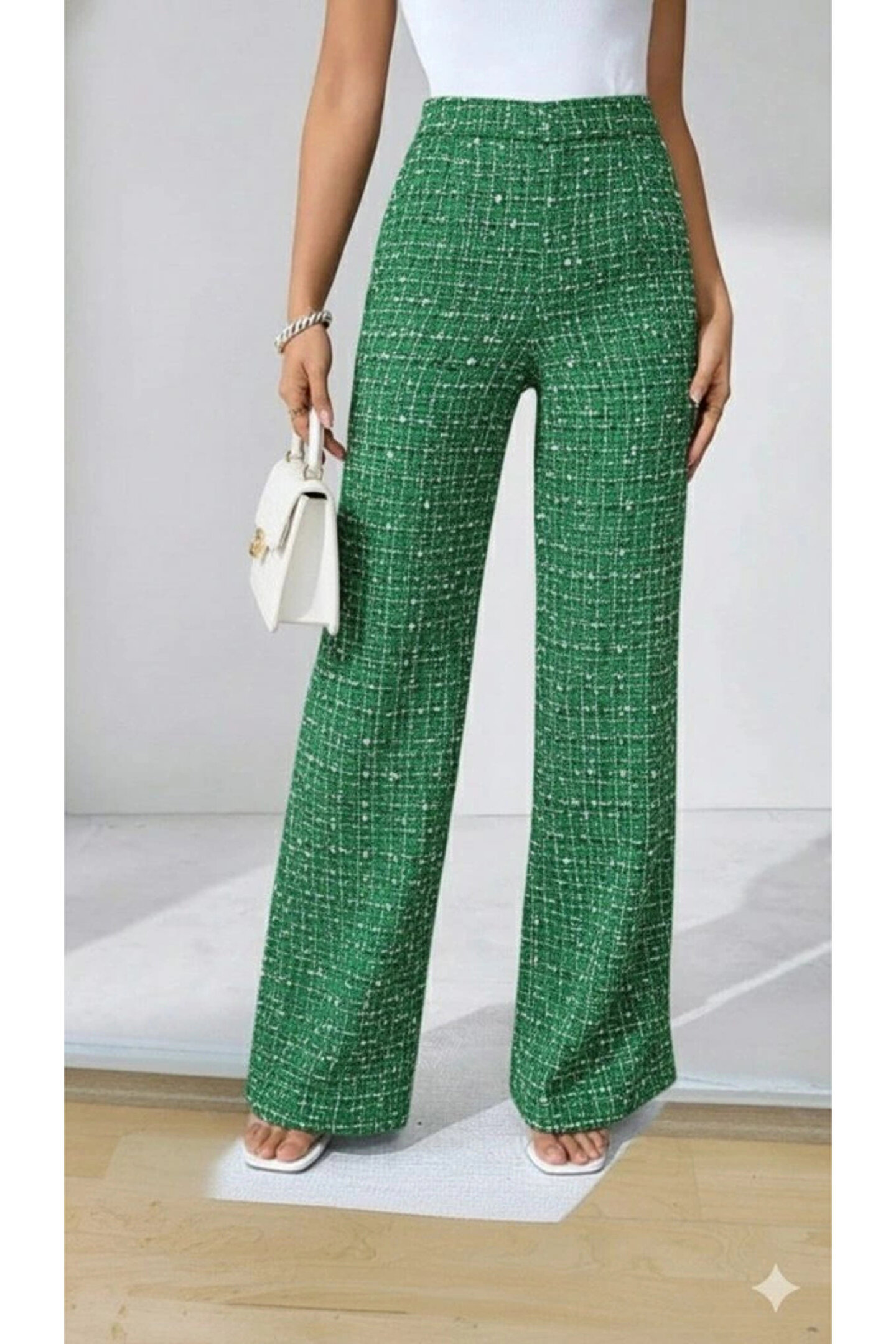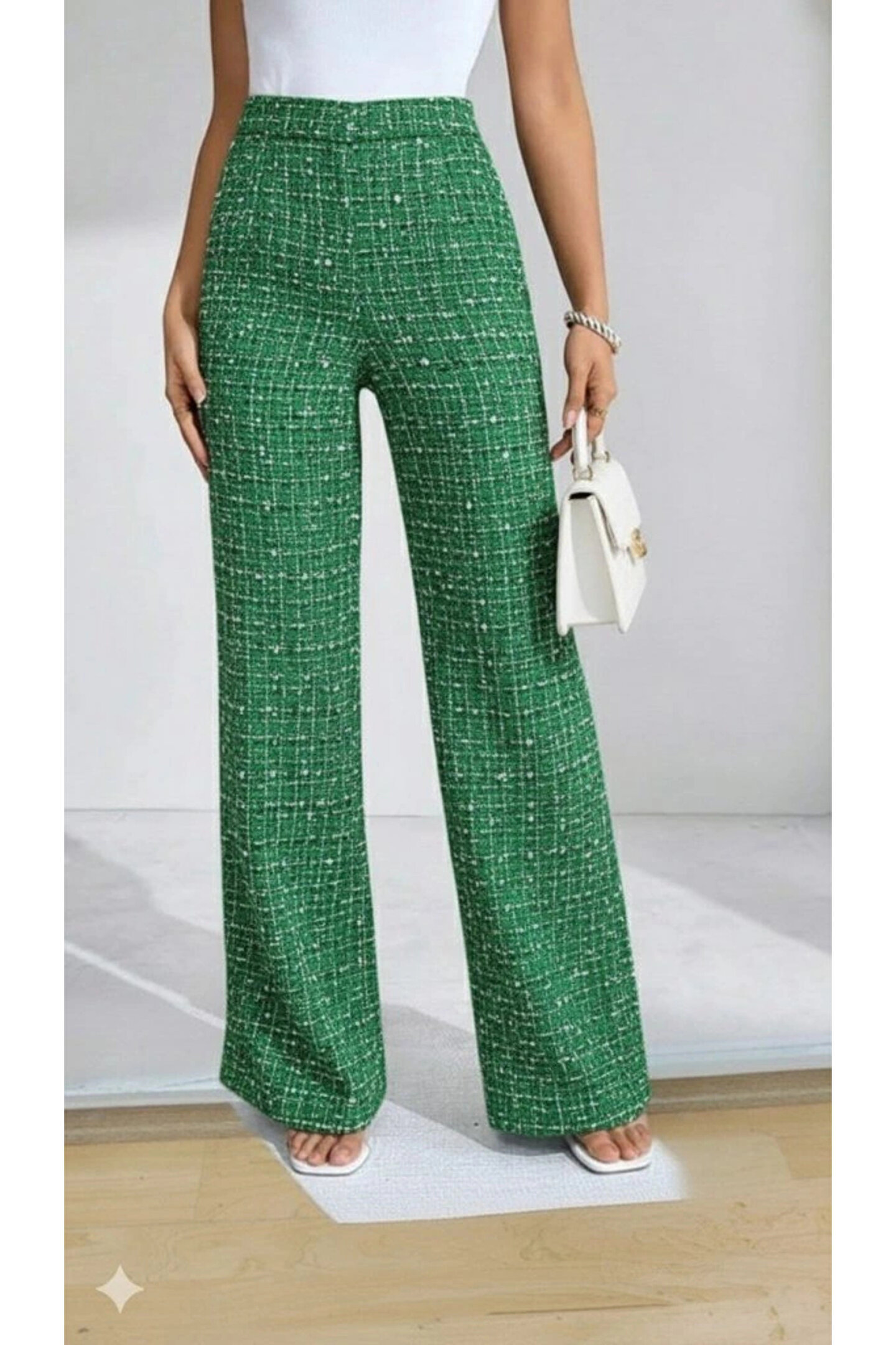 Kadın Yüksek Bel Paçaya Doğru Geniş Dokuma Pantolon