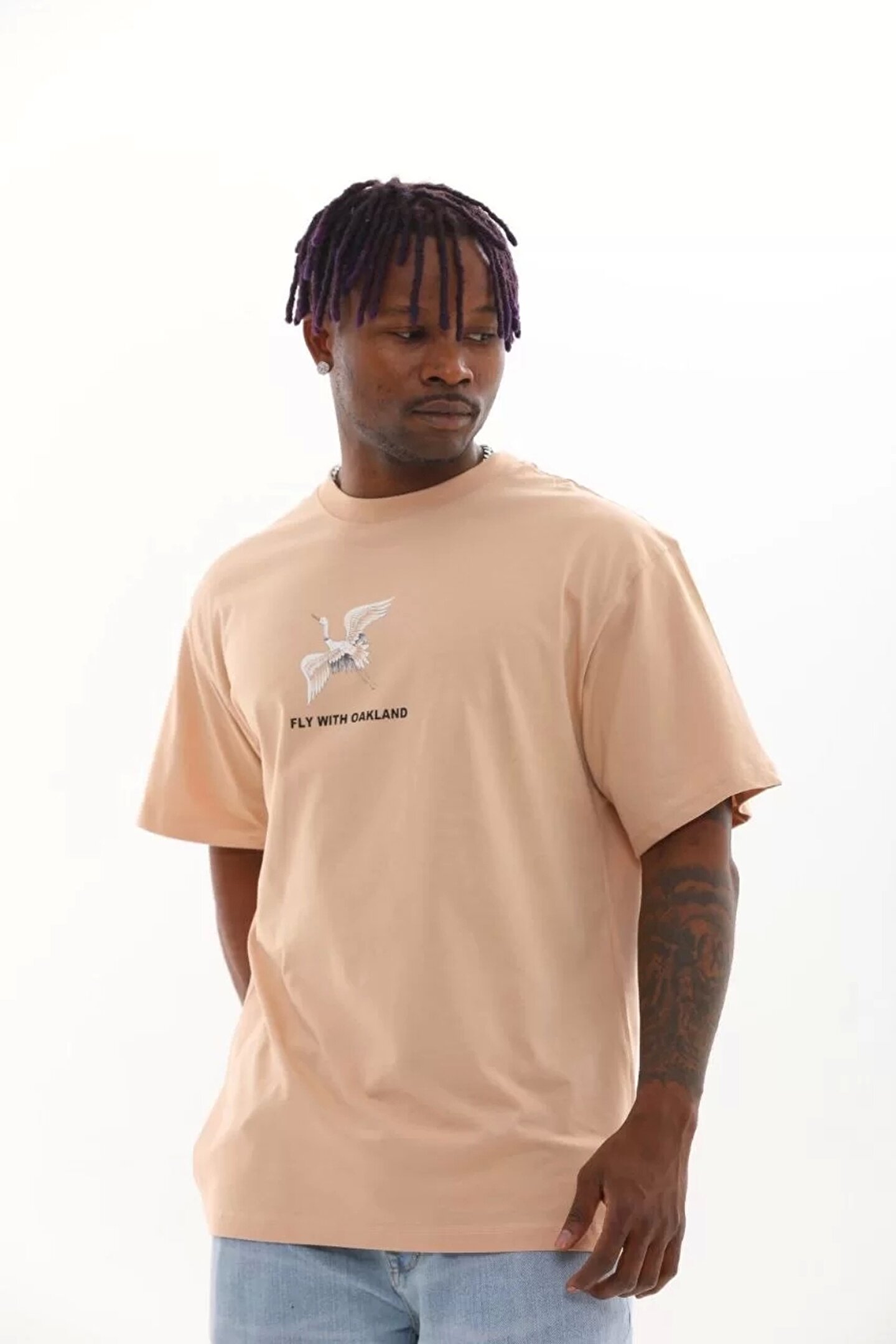 babatr.com Unisex Baskılı Oversize T-Shirt - Bej