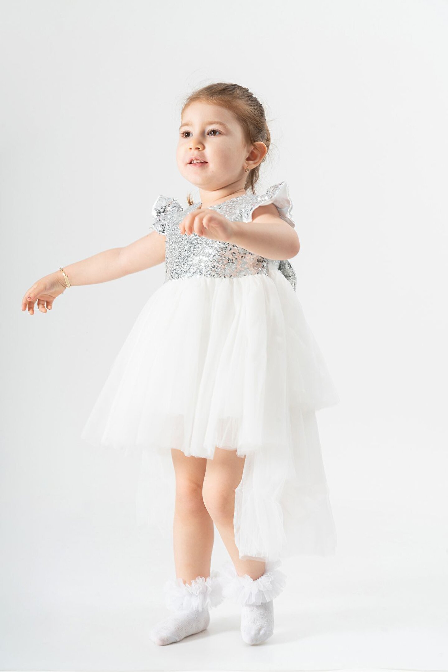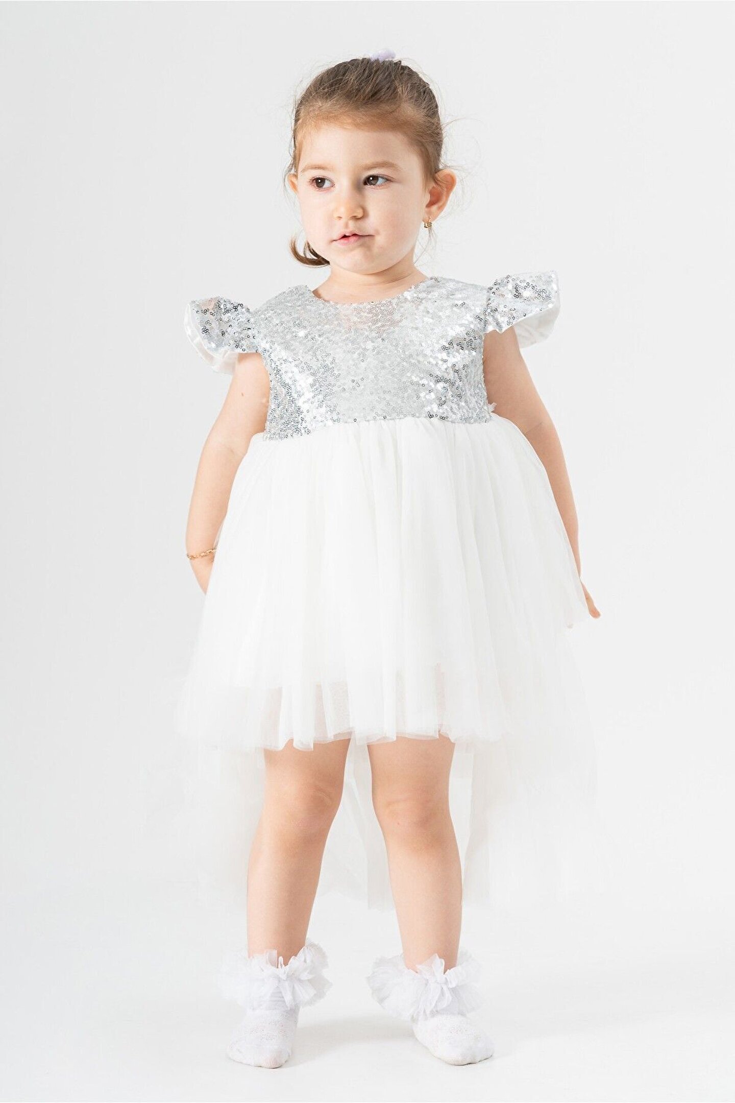 Büyüleyici Kız Çocuk Yazlık Özel Gün Elbisesi: Küçük prenseslerin yaz günlerinde zarafetlerini ve özel günlerdeki büyüleyici görünümlerini tamamlamak için tasarlanan bu elbise, tüm dikkatleri üzerine çekiyor. ; Pullu üst detayları ve tüllü, kuyruklu eteğiyle benzersiz bir şıklık sunuyor. ; Rahat kısa kollu tasarımı ise hareket özgürlüğünü maksimum seviyede tutuyor. ; Özellikler: Pullu Üst Detaylar: Elbisenin üst kısmı, incelikle işlenmiş pullarla süslenmiştir, böylece küçük prensesiniz ışıltısını en üst düzeye çıkarır. ; Tüllü, Kuyruklu Etek: Hafif ve göz alıcı tüllü etek, uzunluğuyla zarafetin simgesi olan bir kuyrukla son bulur. ; Bu detaylar, her adımda prensesinizin büyüleyici bir görünüm sergilemesini sağlar. ; Rahat Kısa Kollu Tasarım: Yazın sıcak günlerinde bile rahatlıkla giyilebilecek olan kısa kollu tasarım, küçük prensesinizin serin ve konforlu kalmasını sağlar. ; Yüksek Kaliteli Malzemeler: Elbise, dayanıklı ve konforlu olması için özenle seçilmiş yüksek kaliteli malzemelerden üretilmiştir. ; Uzun süre dayanıklılığını korur ve tekrar tekrar giyilebilir. ; Farklı Renk Seçenekleri: Çeşitli renk seçenekleri mevcuttur, böylece küçük prensesinizin tarzına ve tercihlerine uygun olanı seçebilirsiniz. ; Bu muhteşem elbise, küçük prensesinizin yaz mevsimindeki özel günlerinde unutulmaz bir görünüm elde etmesini sağlayacak. ; Her bir detayıyla zarif ve büyüleyici olan bu elbise, onun için unutulmaz anlar yaratacak.;
