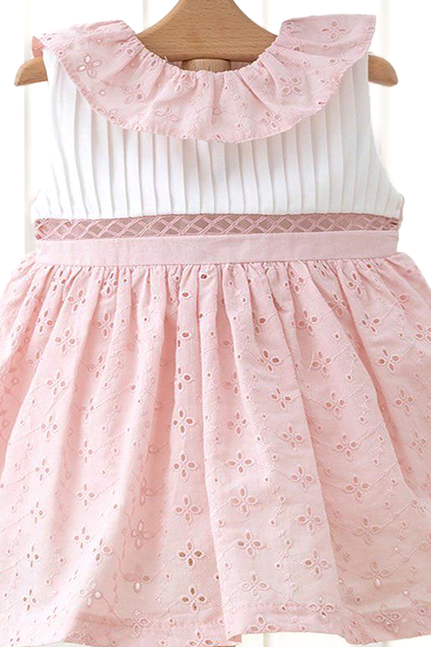 Yazlık Kısa Kollu Kolsuz Askılı Dantel Detaylı Astarlı Kız Çocuk Elbisesi: Küçük prensesinizin yaz mevsiminde özel günlerde zarafetini ve şıklığını ön plana çıkaracak bu elbise, önünde bulunan fiyonk detayı ve dantel işlemeleriyle tasarlanmıştır.; Ayrıca etek kısmında bulunan yırtmaç detayı, hareket özgürlüğü sağlarken bebeğinizin zarif bir görünüm sergilemesini sağlar.; Özellikler: Dantel Detaylar: Elbisenin ön kısmında ve kollarda bulunan dantel detaylar, zarafet ve incelik katarken, küçük prensesinizin görünümünü daha etkileyici hale getirir.; Önünde Fiyonk Detayı: Elbisenin ön kısmında bulunan fiyonk detayı, sevimliliği ve şıklığı artırır.; Küçük prensesinizin görünümüne hoş bir dokunuş ekler.; Yırtmaç Detayı: Etek kısmında bulunan yırtmaç detayı, hareket özgürlüğü sağlarken, elbisenin tasarımına dinamizm katar.; Kısa Kollu Tasarım: Sıcak yaz günlerinde rahatlıkla giyilebilecek kısa kollu tasarım, bebeğinizin serin kalmasını sağlar ve özgürce hareket etmesine olanak tanır.; Yazlık Kullanıma Uygun: Hafif yapısı ve nefes alabilen kumaşıyla yaz aylarında rahatlıkla giyilebilir.; Özel Günler İçin Uygun: Özel günlerde tercih edilebilecek şık tasarımıyla bebeğinizin her anında göz kamaştırmasını sağlar.; Bu yırtmaçlı, önü fiyonklu ve dantel detaylı kısa kollu Kolsuz Askılı kız çocuk elbisesi, küçük prensesinizin yazın serin ve şık kalmasını sağlarken, aynı zamanda özel günlerde de zarafetini tamamlar.; Zarif detaylarıyla bezenmiş bu elbise, bebeğinizin tarzını ve güzelliğini ön plana çıkarır.