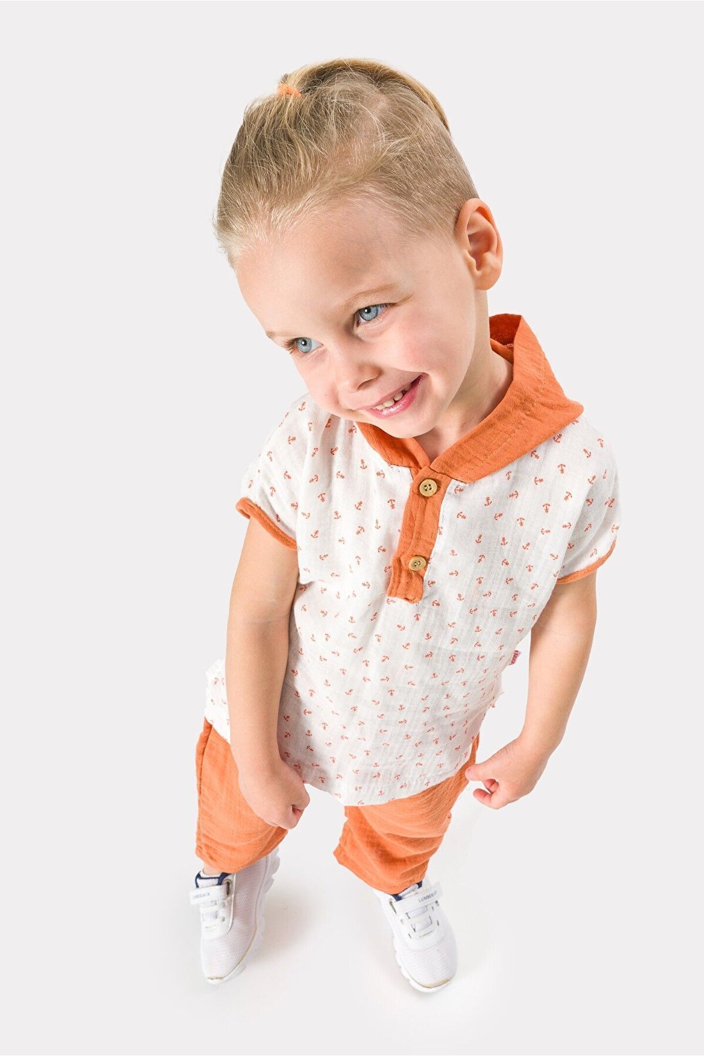 Baby Animals Erkek Bebek Şapkalı Yazlık Müslin Kumaş Müslin Alt Üst Bebek Takımı