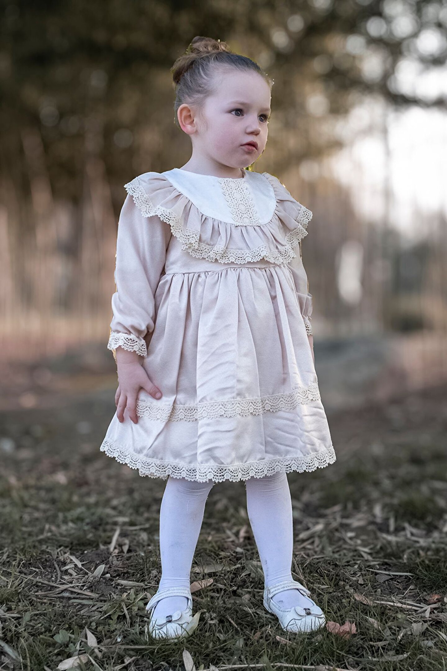 Zarif Dantel Detaylarıyla Saten Retro Tarzı Kız Çocuk Elbise Küçük prensesiniz için özel olarak tasarlanmış, vintage tarzıyla göz kamaştıran uzun kollu kız çocuk elbisesi ile klasik şıklığı keşfedin! Bu zarif elbise, saten kumaşının dokunaklılığı ve dantel detaylarının estetiğiyle, çocuğunuzun tarzını tamamlar. ; Özellikler: Önü Dantel Detaylı: Elbisenin ön kısmında yer alan incelikli dantel detayları, vintage tarzıyla çocuğunuzun gardırobuna romantik bir hava katar. ; Bu detay, özel günlerde veya günlük kullanımda fark yaratır. ; Uzun Kollu Tasarım: Serin havalarda dahi konfor sunan uzun kollu yapısı, çocuğunuzun rahat etmesini sağlar. ; Mevsim geçişlerinde stil ve konforu bir araya getirir. ; İç Astarlama: Saten kumaşın yumuşak astarı, cildi tahriş etmeden gün boyu rahatlık sunar. ; Kaliteli malzeme kullanımıyla birleşen astar, çocuğunuzun hareket özgürlüğünü destekler. ; Retro Tarzı: Klasik ve zamansız tasarımıyla retro tarzının izlerini taşıyan bu elbise, özel günlerde veya fotoğraf çekimlerinde unutulmaz bir görünüm sunar. ; Boyut Seçenekleri: 2-5 yaş aralığındaki kızlar için özel olarak tasarlanmış çeşitli beden seçenekleri mevcuttur, böylece en uygun bedeni seçerek çocuğunuzun konforunu sağlayabilirsiniz. ; Bu dantel detaylı, saten kumaşlı retro tarzı kız çocuk elbisesi, özel günlerde veya günlük kullanımda zarafet ve rahatlığı bir arada sunar. ; Yüksek kaliteli malzemeler ve özenli detaylar, çocuğunuzun tarzını ve konforunu ön planda tutar. ; Eğer çocuğunuzun gardırobuna vintage bir dokunuş katmak istiyorsanız, bu elbise onun için mükemmel bir seçenek olabilir!;