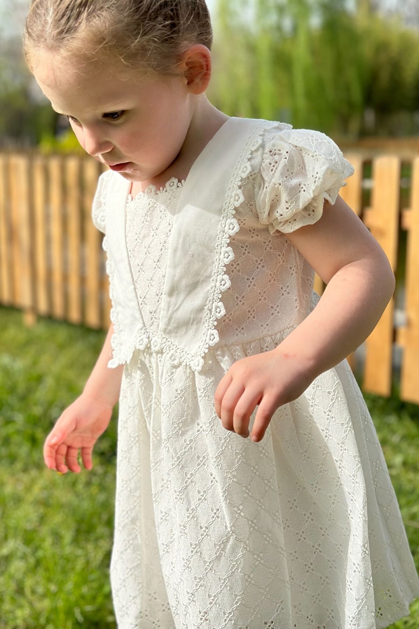 Yazlık Dantelli Kısa Kollu Kız Çocuk Elbisesi: Küçük prensesinizin yazın serin ve zarif kalmasını sağlayacak bu dantelli elbise, özel günlerdeki görünümünü tamamlayacak şıklıkta tasarlanmıştır. ; Dantel detaylarıyla zenginleştirilmiş kısa kollu tasarımı, bebeğinizin hem konforunu hem de zarafetini ön planda tutar. ; Özellikler: Zarif Dantel Detayları: Elbisenin üzerindeki dantel detayları, küçük prensesinizin görünümüne zarafet ve incelik katar. ; Özel günlerdeki parıltısını artırır. ; Yazlık Kullanım İçin Uygun: Hafif ve nefes alabilen kumaşıyla yaz aylarında bebeğinizin serin kalmasını sağlar. ; Kısa Kollu Tasarım: Yazın sıcak günlerinde rahatlıkla giyilebilecek olan kısa kollu tasarım, bebeğinizin özgürce hareket etmesini sağlar. ; Çeşitli Renk Seçenekleri: Farklı renk seçenekleri arasından bebeğinizin tarzına ve zevkine uygun olanı seçebilirsiniz. ; Özel Günler İçin Uygun Kesim: Dantel detayları ve zarif tasarımıyla özel günlerde kullanıma uygun olan bu elbise, bebeğinizin her adımda göz kamaştırmasını sağlar. ; Bu dantelli kısa kollu kız çocuk elbisesi, küçük prensesinizin yazın serin ve zarif kalmasını sağlarken aynı zamanda özel günlerinde de şıklığını tamamlar. ; Zarif dantel detaylarıyla bezenmiş bu elbise, bebeğinizin unutulmaz anlar yaşamasını sağlar.;