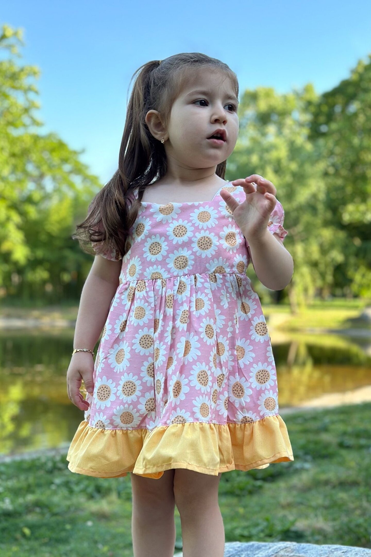 Baby Animals Kız Bebek Elbise Kız Çocuk Elbise Doğum Günü Parti Düğün Elbise Dantelli Kısa Kol Astarlı Elbise