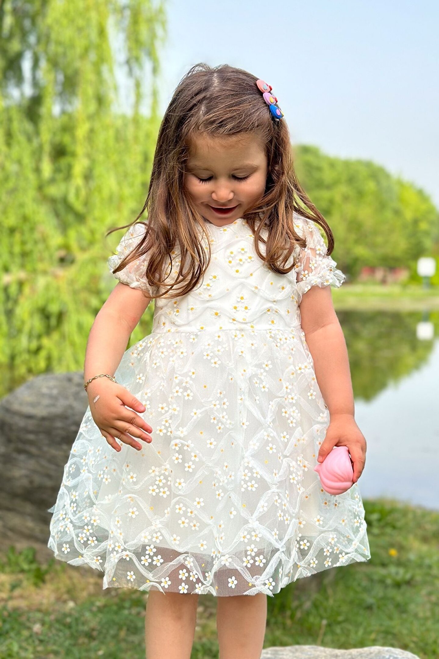 Baby Animals Kız Bebek Elbise Kız Çocuk Elbise Doğum Günü Parti Düğün Elbise Dantelli Kısa Kol Astarlı Elbise