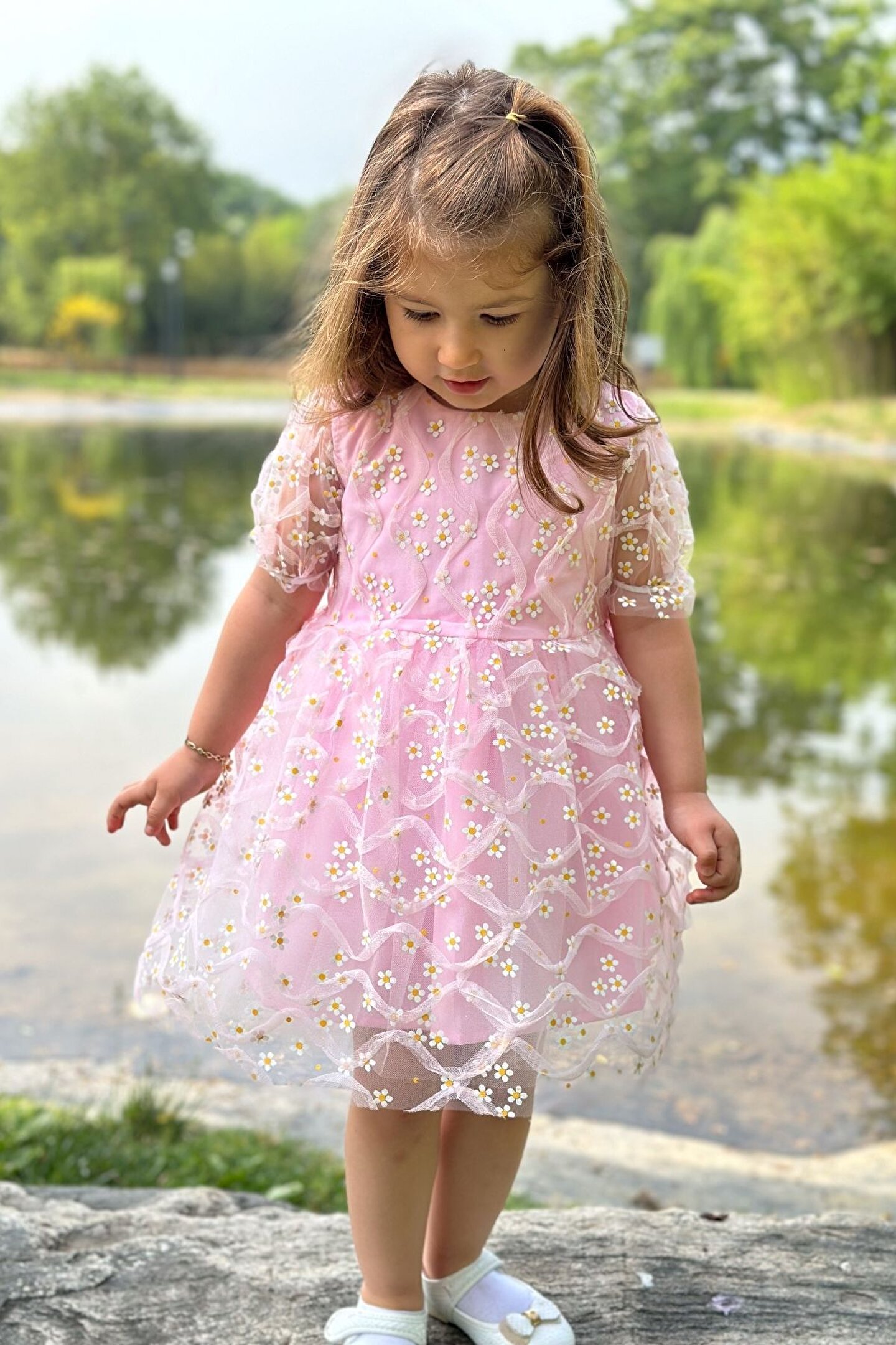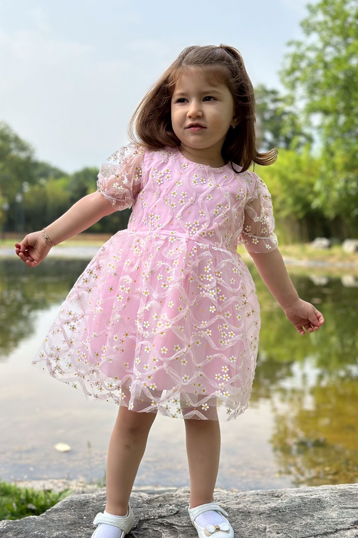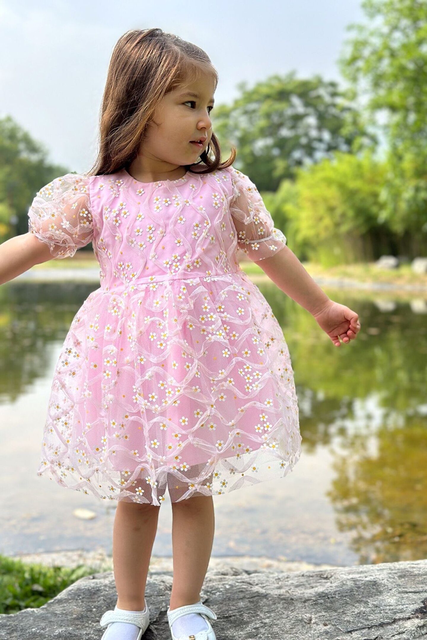 Baby Animals Kız Bebek Elbise Kız Çocuk Elbise Doğum Günü Parti Düğün Elbise Dantelli Kısa Kol Astarlı Elbise