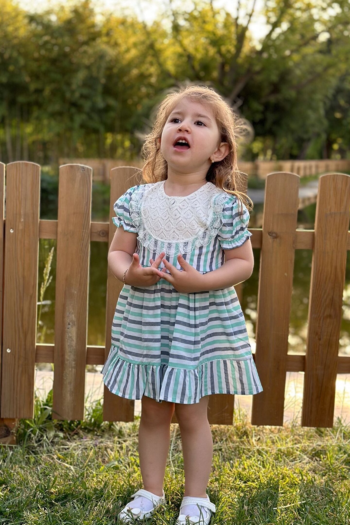 "Yazlık Kısa Kollu Dantel Detaylı Kız Çocuk Elbisesi: Küçük prensesinizin yaz mevsiminde özel günlerde zarafetini ve şıklığını ön plana çıkaracak bu elbise, önünde bulunan fiyonk detayı ve dantel işlemeleriyle tasarlanmıştır. ; Ayrıca etek kısmında bulunan yırtmaç detayı, hareket özgürlüğü sağlarken bebeğinizin zarif bir görünüm sergilemesini sağlar. ; Özellikler: Dantel Detaylar: Elbisenin ön kısmında ve kollarda bulunan dantel detaylar, zarafet ve incelik katarken, küçük prensesinizin görünümünü daha etkileyici hale getirir. ; Önünde Fiyonk Detayı: Elbisenin ön kısmında bulunan fiyonk detayı, sevimliliği ve şıklığı artırır. ; Küçük prensesinizin görünümüne hoş bir dokunuş ekler. ; Yırtmaç Detayı: Etek kısmında bulunan yırtmaç detayı, hareket özgürlüğü sağlarken, elbisenin tasarımına dinamizm katar. ; Kısa Kollu Tasarım: Sıcak yaz günlerinde rahatlıkla giyilebilecek kısa kollu tasarım, bebeğinizin serin kalmasını sağlar ve özgürce hareket etmesine olanak tanır. ; Yazlık Kullanıma Uygun: Hafif yapısı ve nefes alabilen kumaşıyla yaz aylarında rahatlıkla giyilebilir. ; Özel Günler İçin Uygun: Özel günlerde tercih edilebilecek şık tasarımıyla bebeğinizin her anında göz kamaştırmasını sağlar. ; Bu yırtmaçlı, önü fiyonklu ve dantel detaylı kısa kollu kız çocuk elbisesi, küçük prensesinizin yazın serin ve şık kalmasını sağlarken, aynı zamanda özel günlerde de zarafetini tamamlar. ; Zarif detaylarıyla bezenmiş bu elbise, bebeğinizin tarzını ve güzelliğini ön plana çıkarır.";