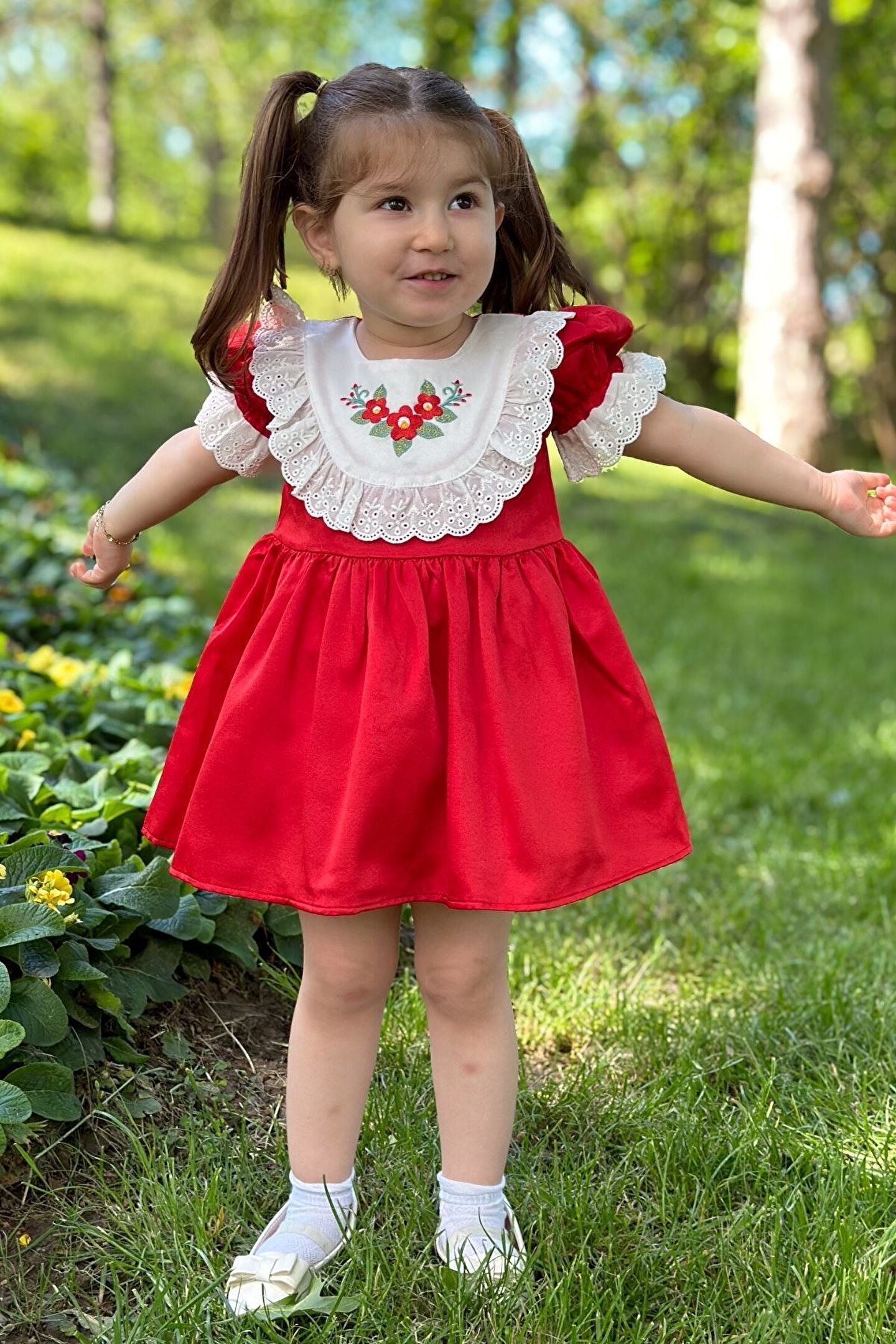 Yazlık Kısa Kollu Dantel Detaylı Kız Çocuk Elbisesi: Küçük prensesinizin yaz mevsiminde özel günlerde zarafetini ve şıklığını ön plana çıkaracak bu elbise, önünde bulunan fiyonk detayı ve dantel işlemeleriyle tasarlanmıştır. ; Ayrıca etek kısmında bulunan yırtmaç detayı, hareket özgürlüğü sağlarken bebeğinizin zarif bir görünüm sergilemesini sağlar. ; Özellikler: Dantel Detaylar: Elbisenin ön kısmında ve kollarda bulunan dantel detaylar, zarafet ve incelik katarken, küçük prensesinizin görünümünü daha etkileyici hale getirir. ; Önünde Fiyonk Detayı: Elbisenin ön kısmında bulunan fiyonk detayı, sevimliliği ve şıklığı artırır. ; Küçük prensesinizin görünümüne hoş bir dokunuş ekler. ; Yırtmaç Detayı: Etek kısmında bulunan yırtmaç detayı, hareket özgürlüğü sağlarken, elbisenin tasarımına dinamizm katar. ; Kısa Kollu Tasarım: Sıcak yaz günlerinde rahatlıkla giyilebilecek kısa kollu tasarım, bebeğinizin serin kalmasını sağlar ve özgürce hareket etmesine olanak tanır. ; Yazlık Kullanıma Uygun: Hafif yapısı ve nefes alabilen kumaşıyla yaz aylarında rahatlıkla giyilebilir. ; Özel Günler İçin Uygun: Özel günlerde tercih edilebilecek şık tasarımıyla bebeğinizin her anında göz kamaştırmasını sağlar. ; Bu yırtmaçlı, önü fiyonklu ve dantel detaylı kısa kollu kız çocuk elbisesi, küçük prensesinizin yazın serin ve şık kalmasını sağlarken, aynı zamanda özel günlerde de zarafetini tamamlar. ; Zarif detaylarıyla bezenmiş bu elbise, bebeğinizin tarzını ve güzelliğini ön plana çıkarır.;