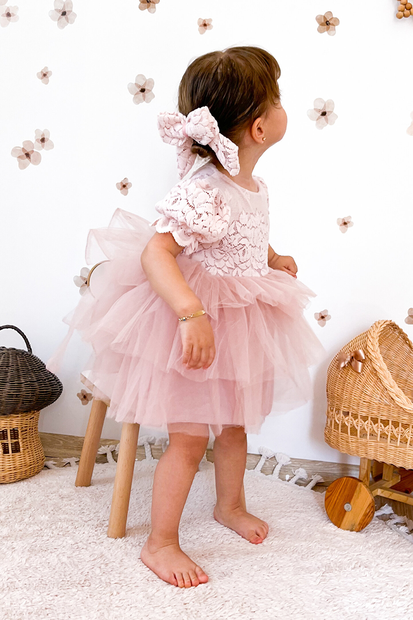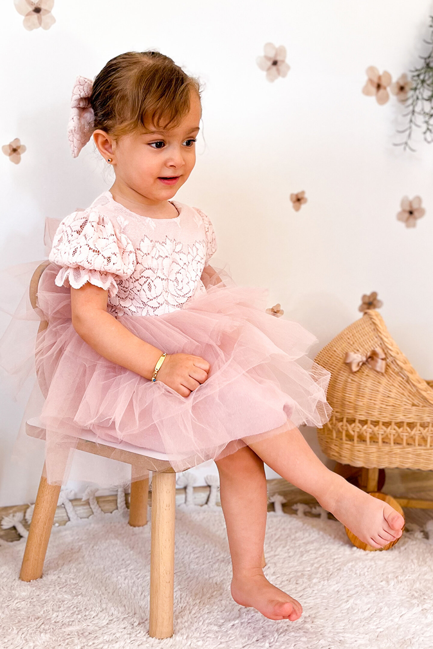 Baby Animals Kız Bebek Elbise Kız Çocuk Elbise Doğum Günü Parti Düğün Elbise Dantelli Kısa Kol Astarlı Elbise