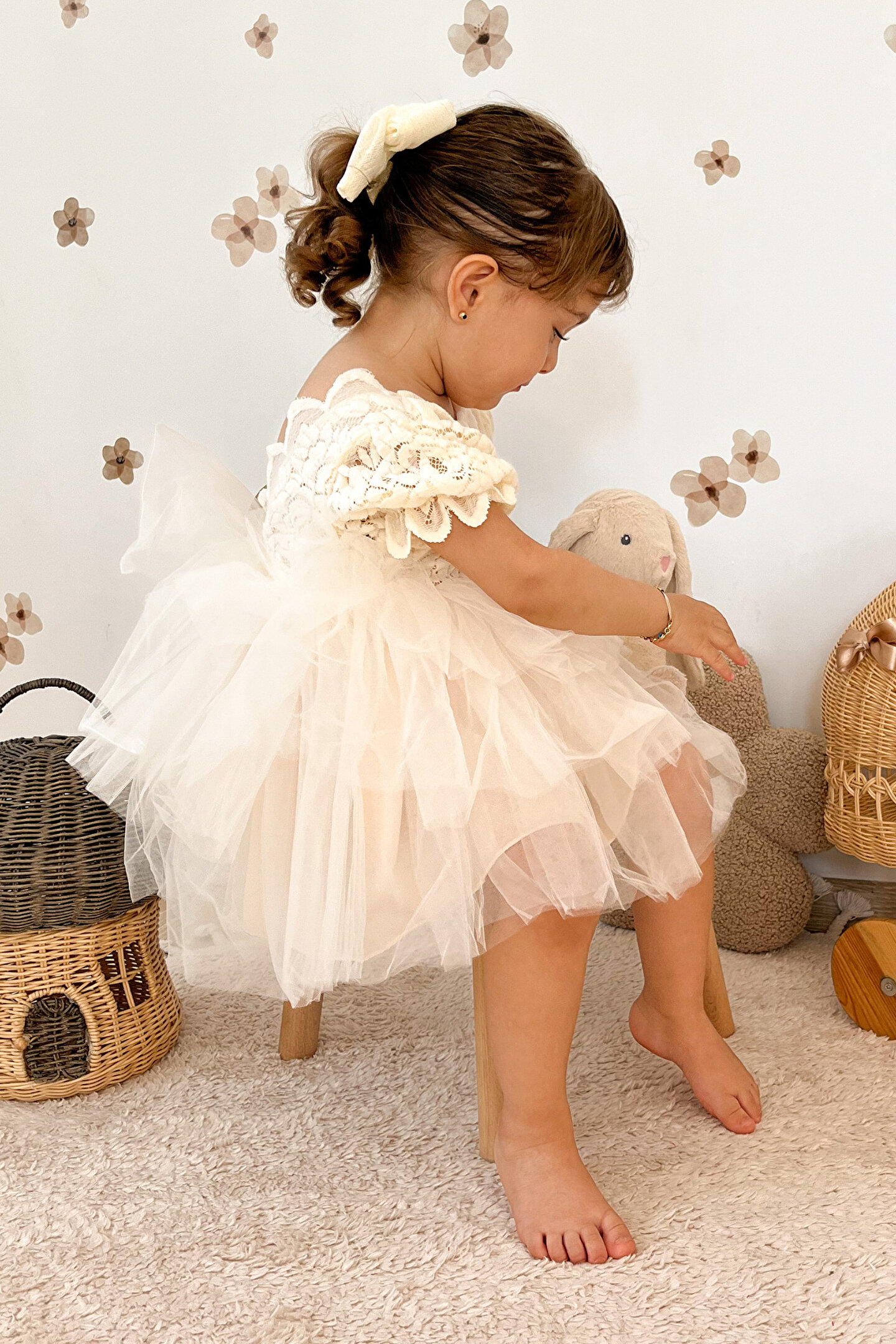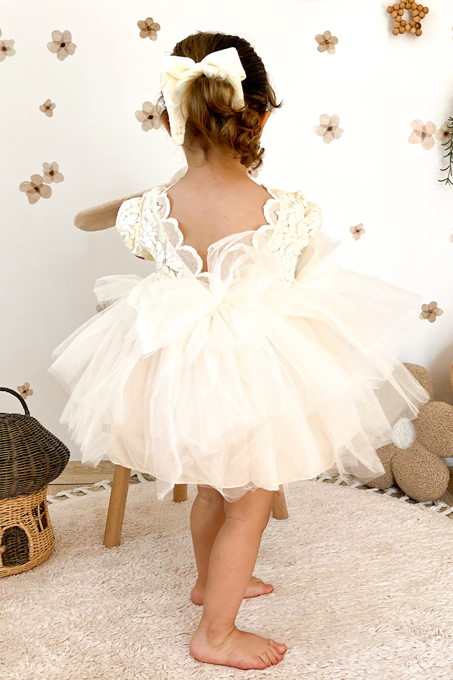 Baby Animals Kız Bebek Elbise Kız Çocuk Elbise Doğum Günü Parti Düğün Elbise Dantelli Kısa Kol Astarlı Elbise