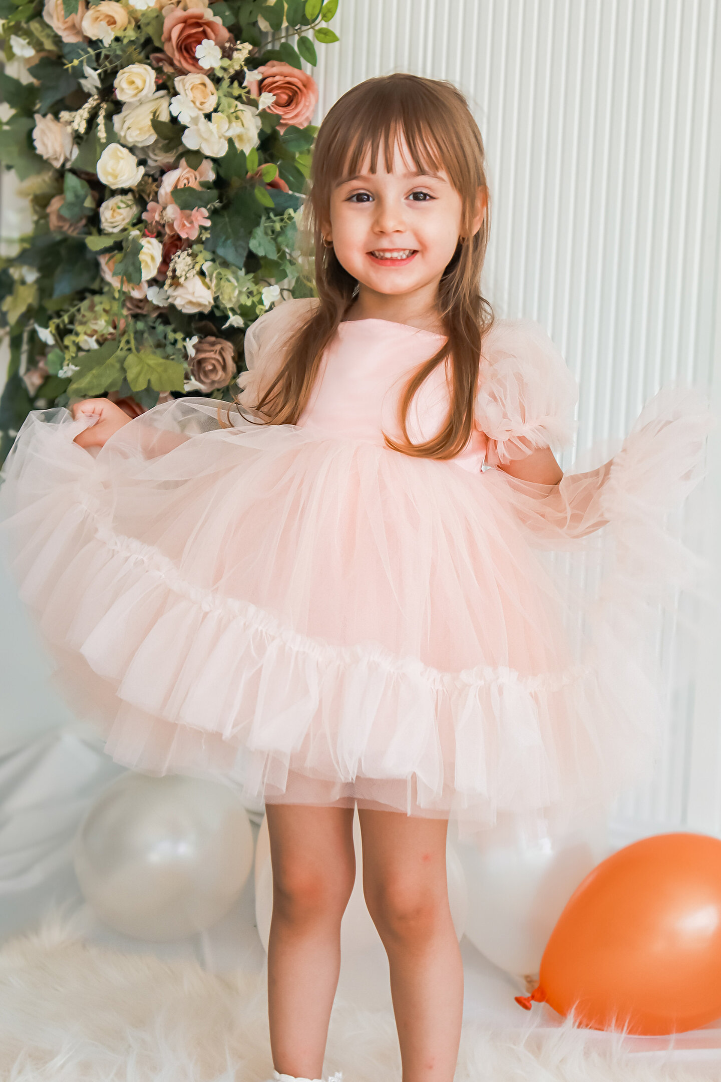 Baby Animals Kız Bebek Elbise Kız Çocuk Elbise Doğum Günü Parti Düğün Elbise Dantelli Kısa Kol Astarlı Elbise