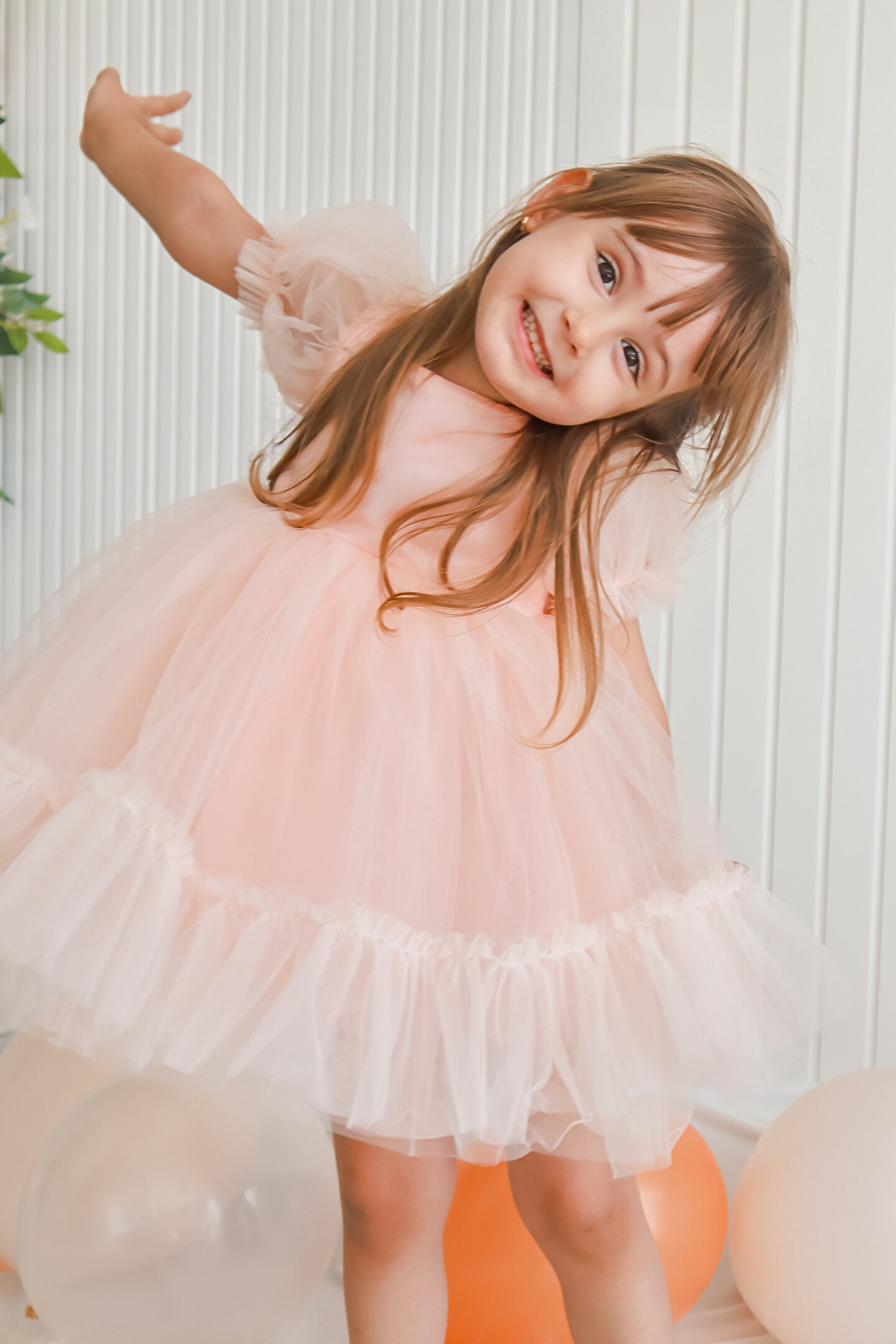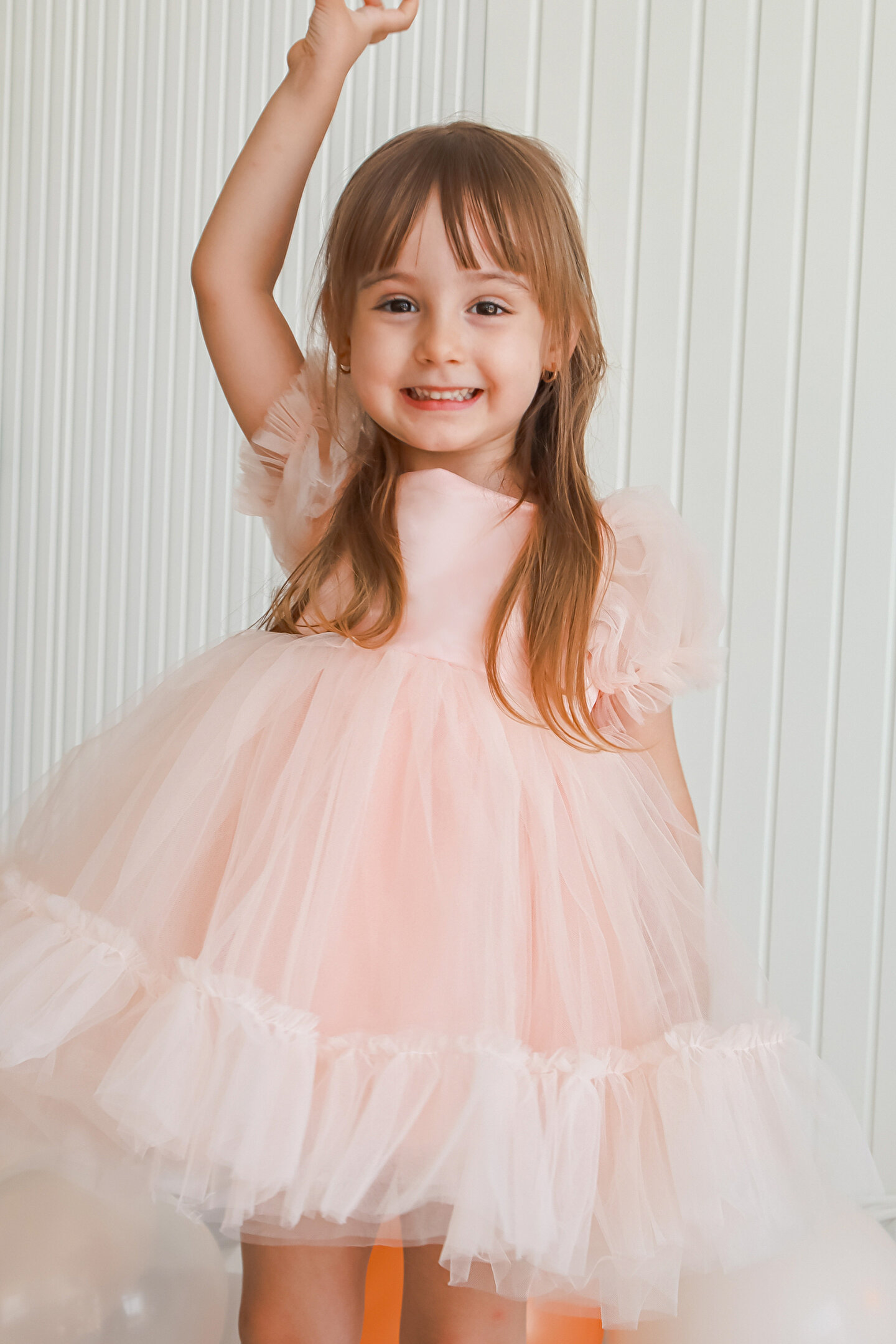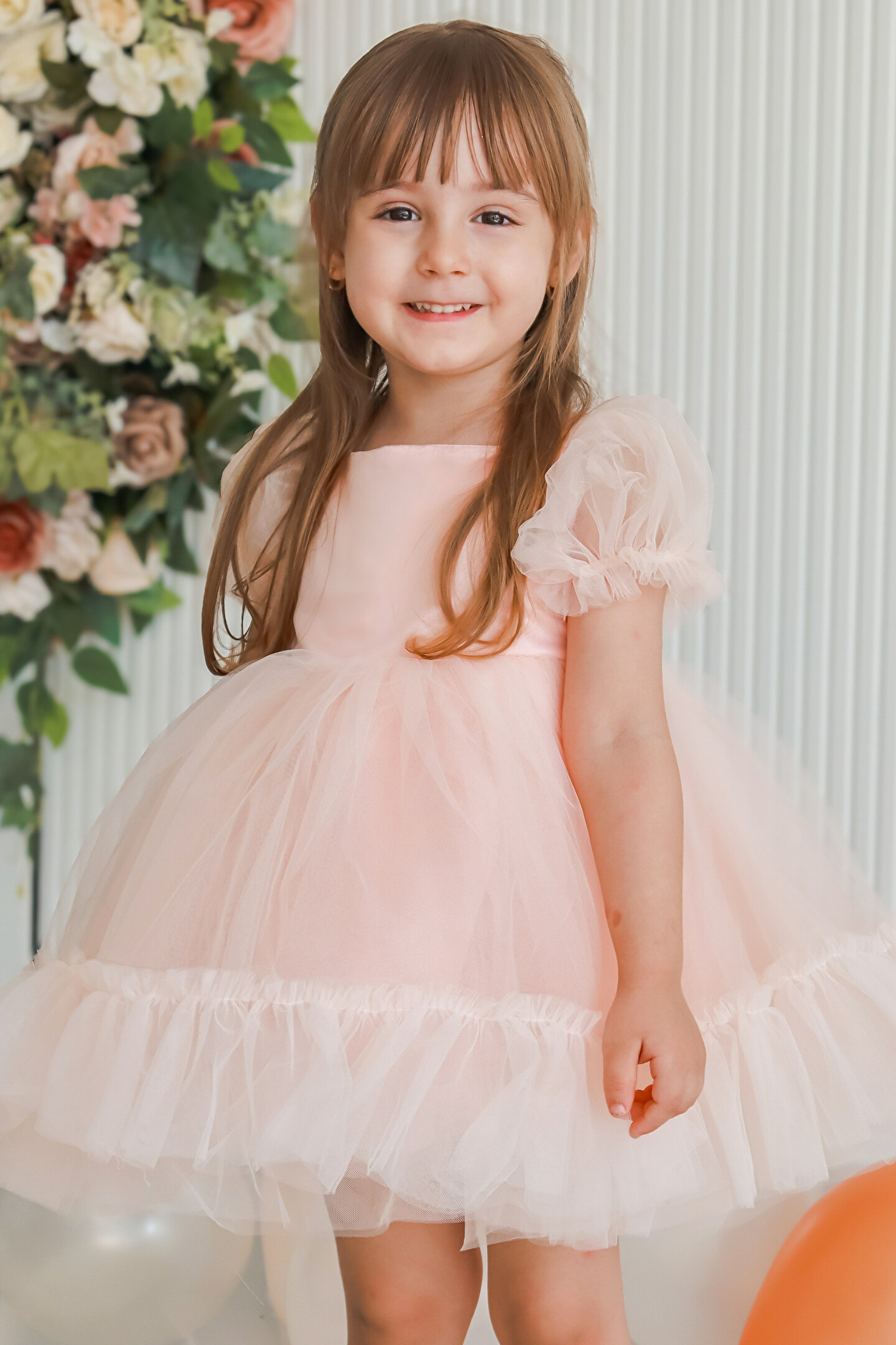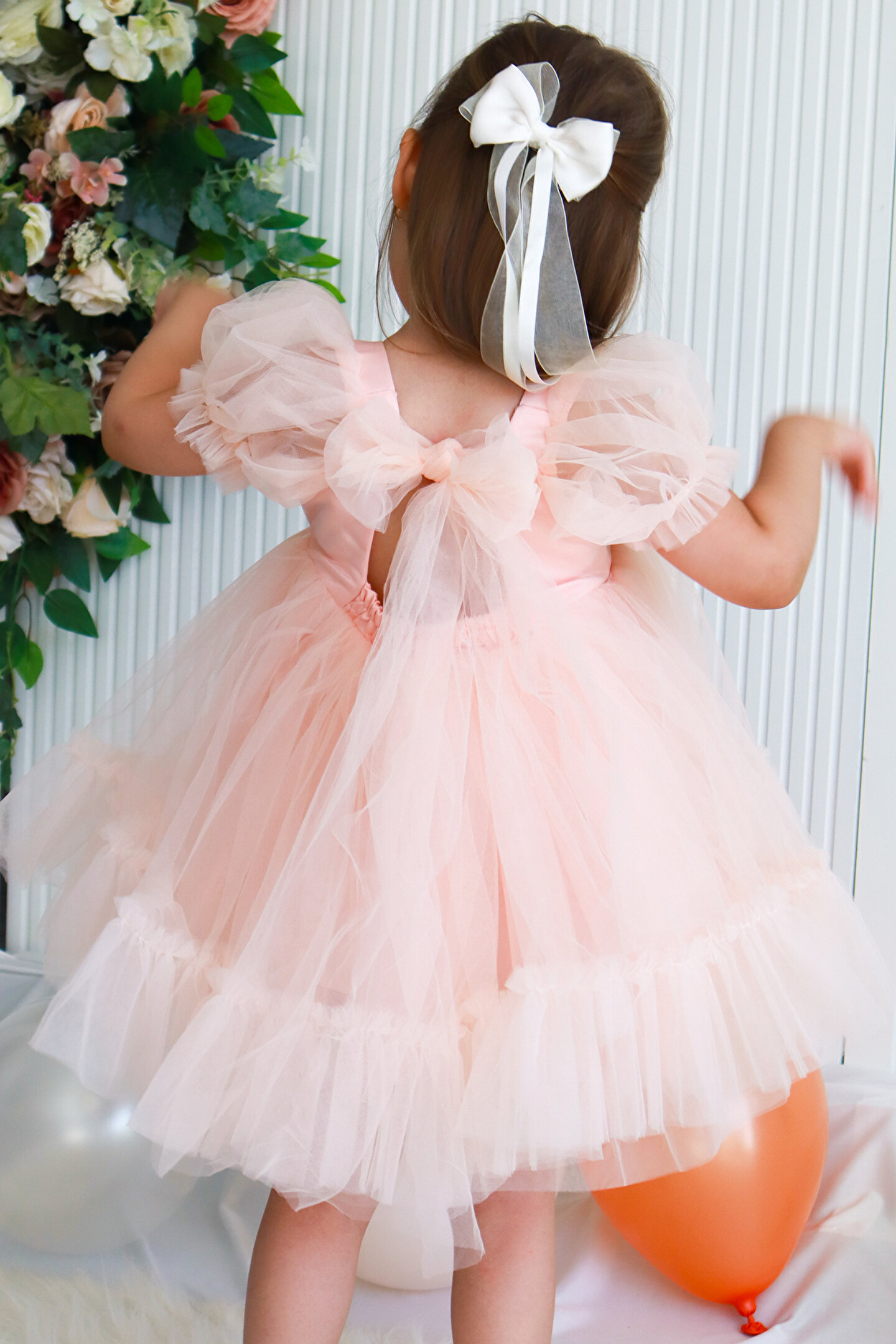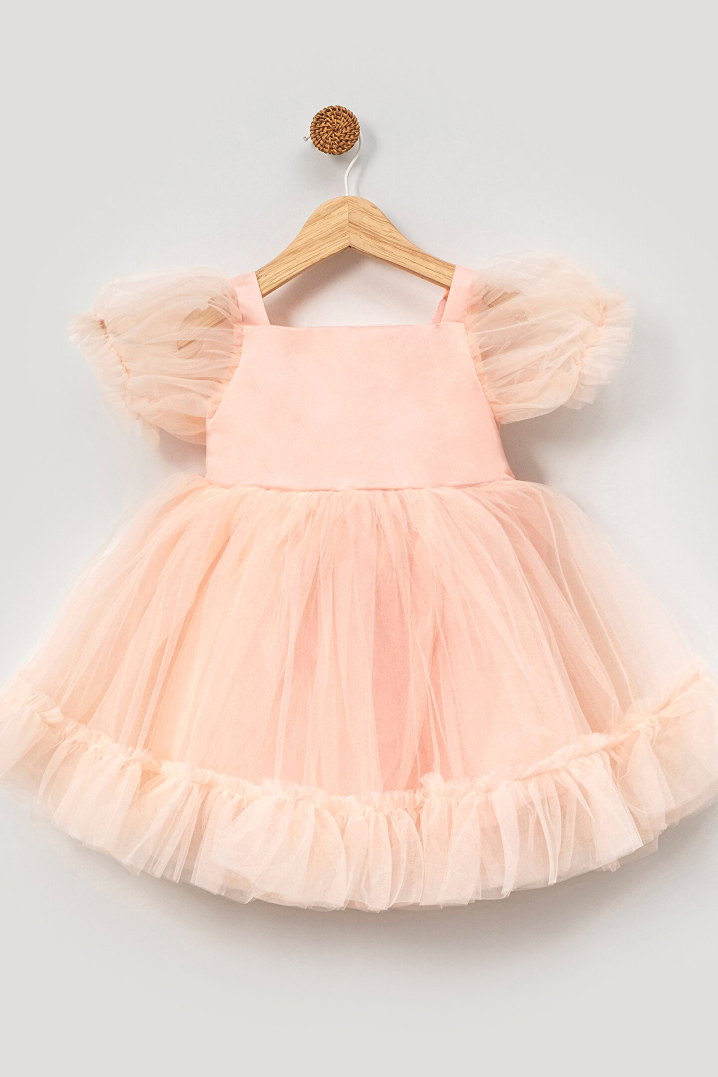 Baby Animals Kız Bebek Elbise Kız Çocuk Elbise Doğum Günü Parti Düğün Elbise Dantelli Kısa Kol Astarlı Elbise