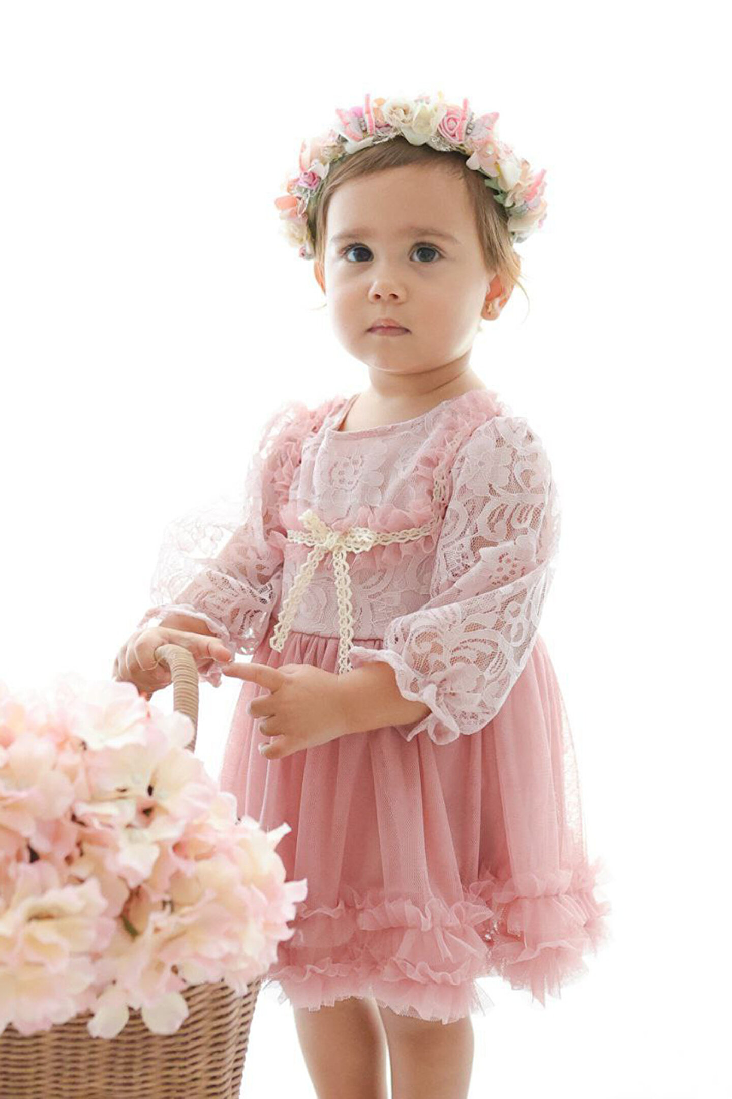 Baby Animals Kız Bebek Elbise Kız Çocuk Elbise Doğum Günü Parti Düğün Elbise Dantelli Uzun Kol Astarlı Elbise