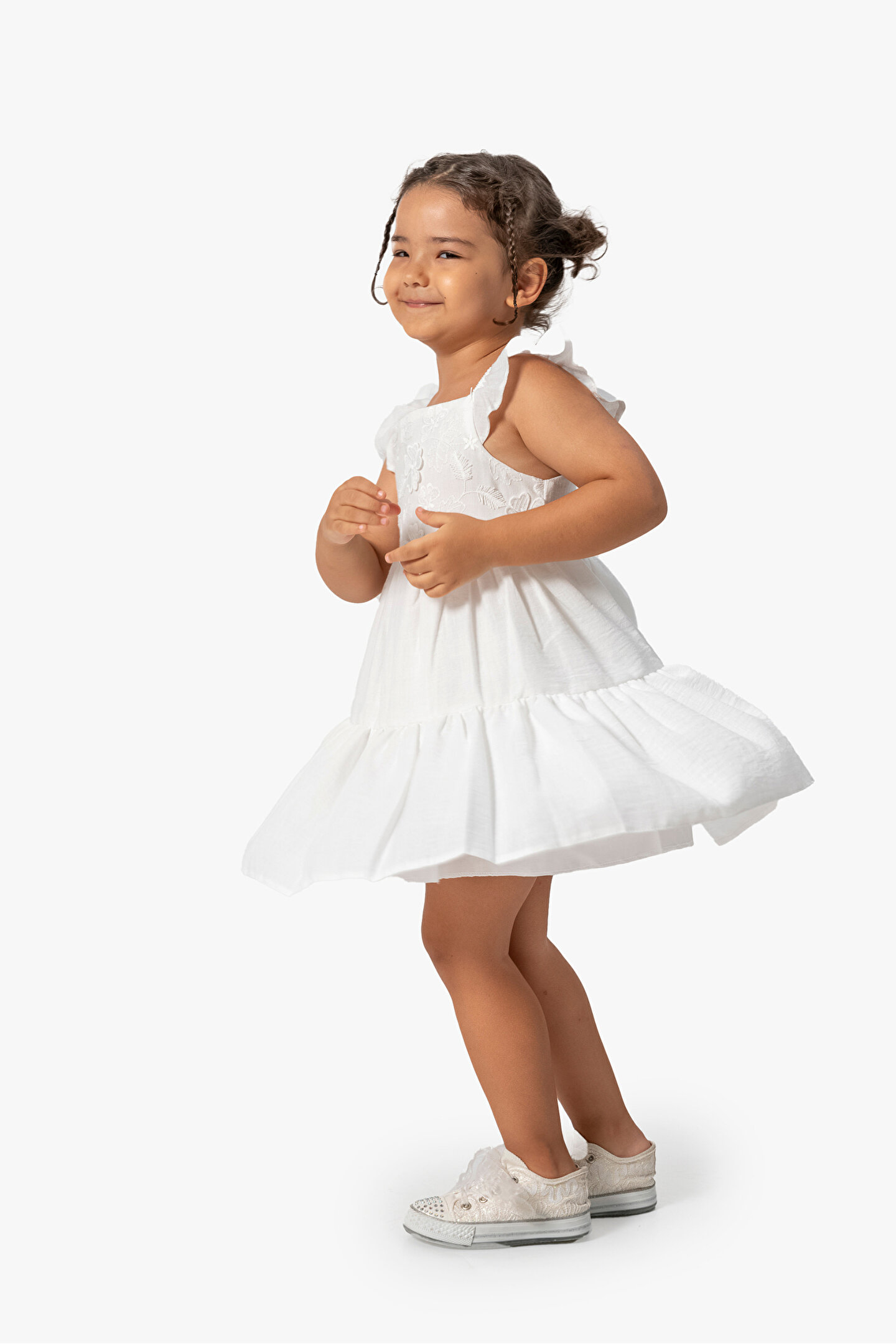 Yazlık Kısa Kollu Kolsuz Askılı Dantel Detaylı Astarlı Kız Çocuk Elbisesi: Küçük prensesinizin yaz mevsiminde özel günlerde zarafetini ve şıklığını ön plana çıkaracak bu elbise