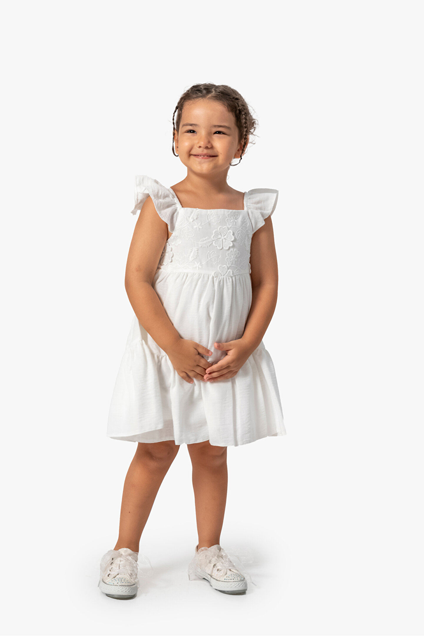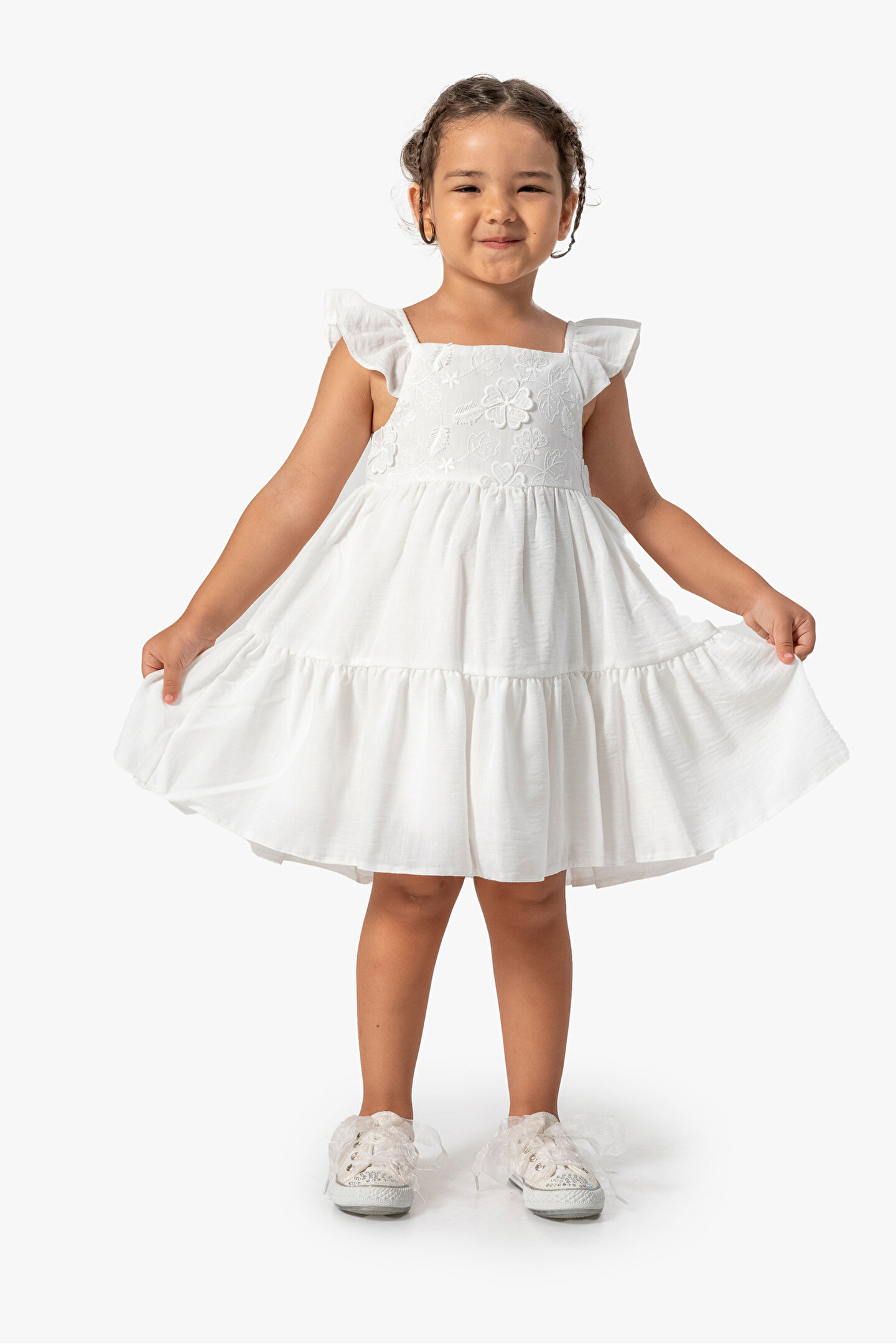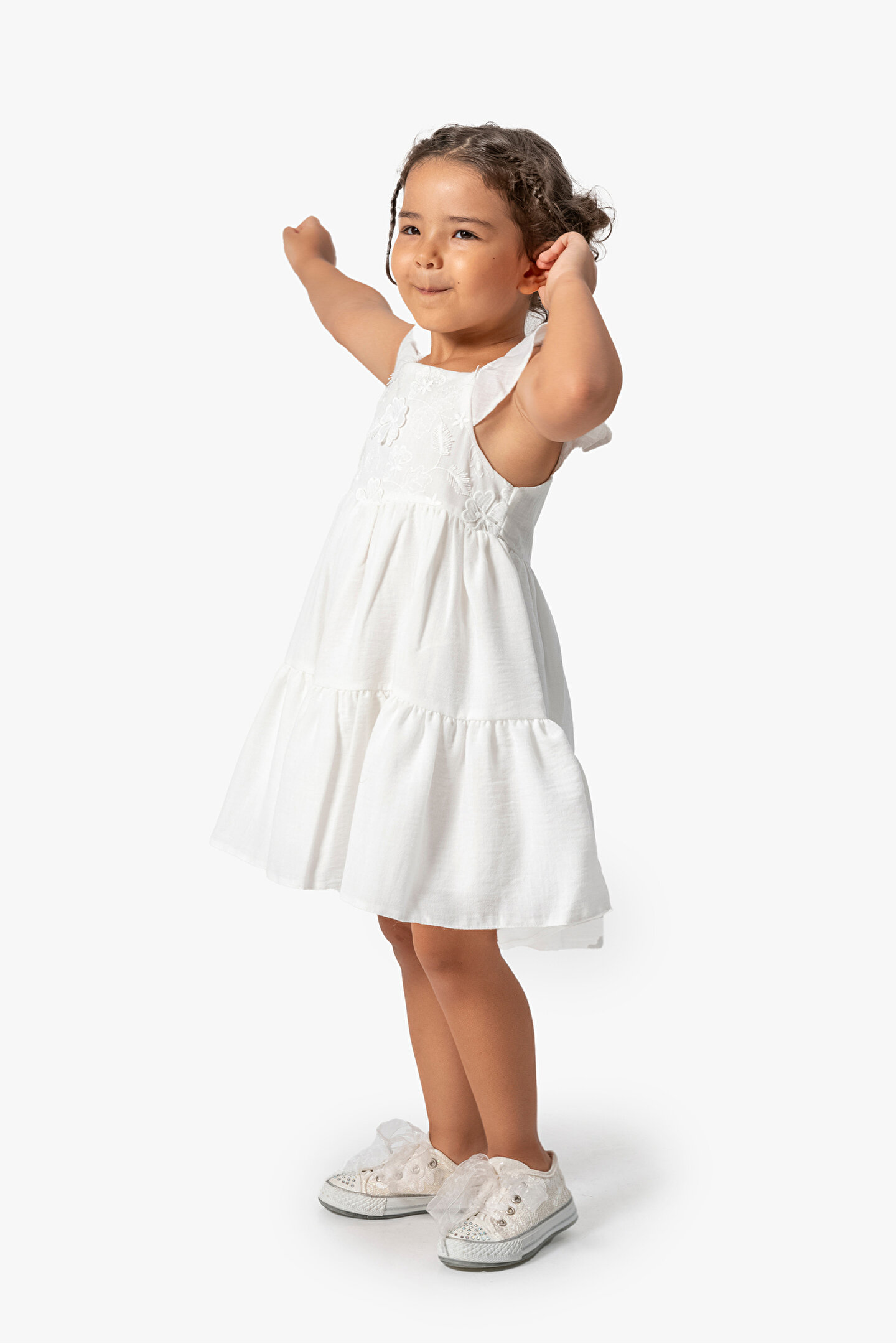 Yazlık Kısa Kollu Kolsuz Askılı Dantel Detaylı Astarlı Kız Çocuk Elbisesi: Küçük prensesinizin yaz mevsiminde özel günlerde zarafetini ve şıklığını ön plana çıkaracak bu elbise