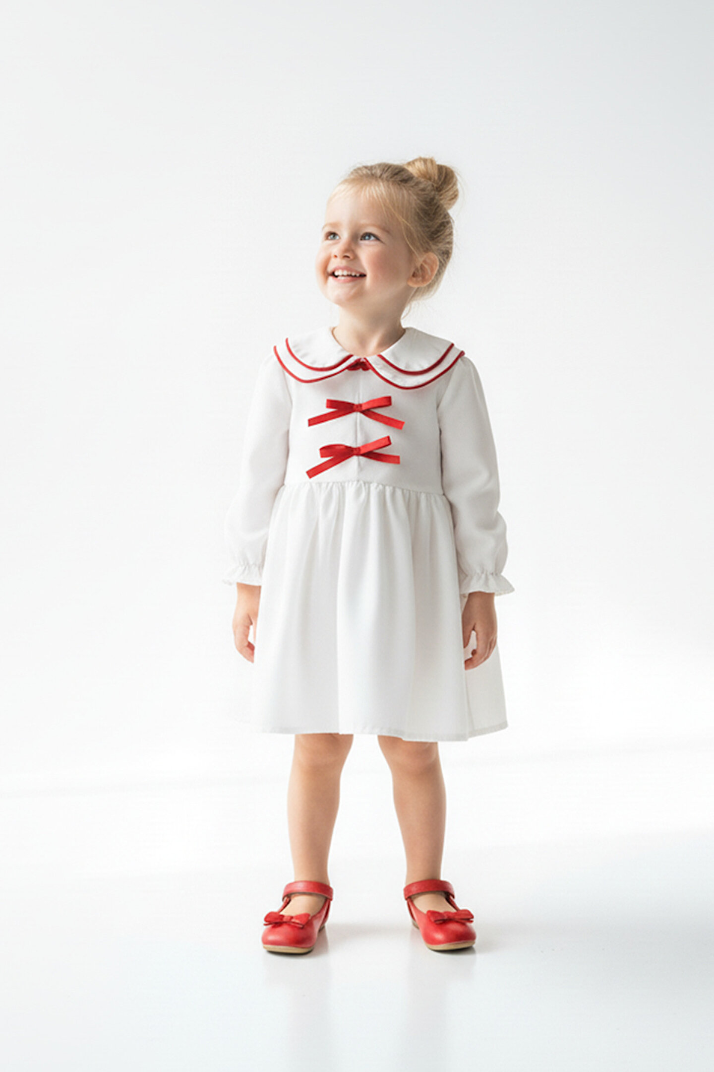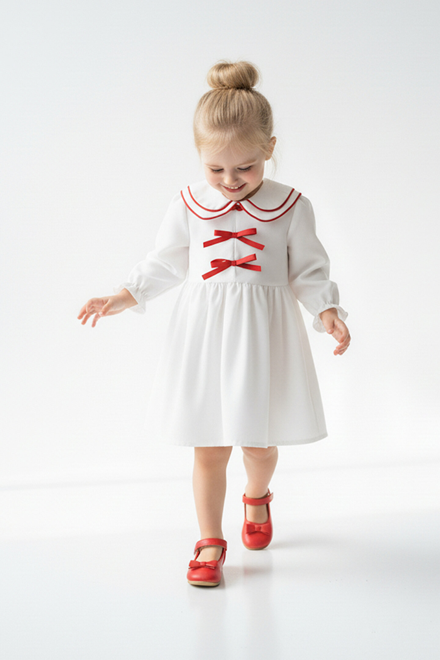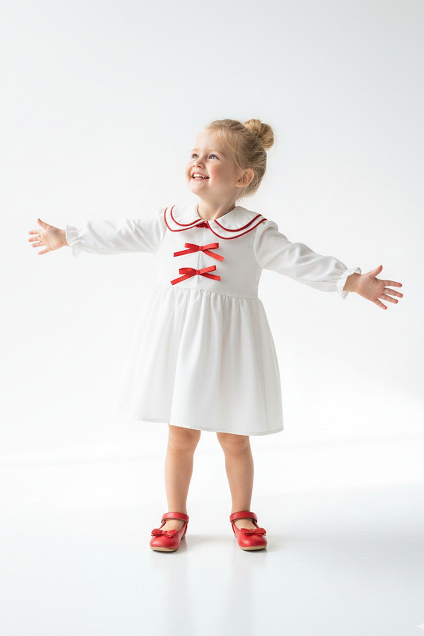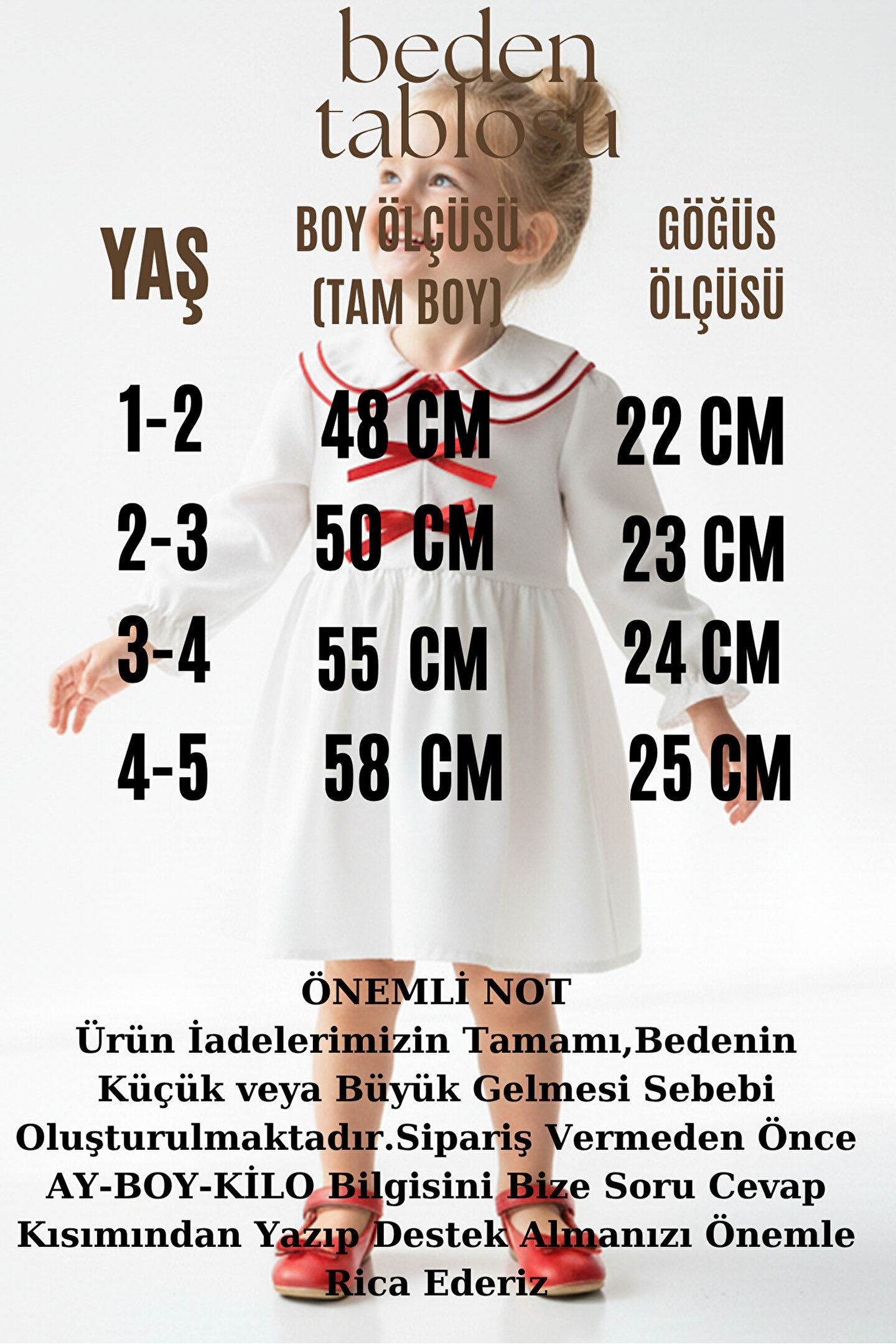 Mevsimlik Uzun Kollu Dantel Detaylı Kız Çocuk Elbisesi: Küçük prensesinizin yaz mevsiminde özel günlerde zarafetini ve şıklığını ön plana çıkaracak bu elbise, önünde bulunan fiyonk detayı ve dantel işlemeleriyle tasarlanmıştır.; Ayrıca etek kısmında bulunan yırtmaç detayı, hareket özgürlüğü sağlarken bebeğinizin zarif bir görünüm sergilemesini sağlar.; Özellikler: Dantel Detaylar: Elbisenin ön kısmında ve kollarda bulunan dantel detaylar, zarafet ve incelik katarken, küçük prensesinizin görünümünü daha etkileyici hale getirir.; Önünde Fiyonk Detayı: Elbisenin ön kısmında bulunan fiyonk detayı, sevimliliği ve şıklığı artırır.; Küçük prensesinizin görünümüne hoş bir dokunuş ekler.; Yırtmaç Detayı: Etek kısmında bulunan yırtmaç detayı, hareket özgürlüğü sağlarken, elbisenin tasarımına dinamizm katar.; Uzun Kollu Tasarım:Rahatlıkla giyilebilecek Uzun kollu tasarım, bebeğinizin serin kalmasını sağlar ve özgürce hareket etmesine olanak tanır.; Mevsimlik Kullanıma Uygun: Hafif yapısı ve nefes alabilen kumaşıyla yaz aylarında rahatlıkla giyilebilir.; Özel Günler İçin Uygun: Özel günlerde tercih edilebilecek şık tasarımıyla bebeğinizin her anında göz kamaştırmasını sağlar.; Bu yırtmaçlı, önü fiyonklu ve dantel detaylı Uzun kollu kız çocuk elbisesi, küçük prensesinizin serin ve şık kalmasını sağlarken, aynı zamanda özel günlerde de zarafetini tamamlar.; Zarif detaylarıyla bezenmiş bu elbise, bebeğinizin tarzını ve güzelliğini ön plana çıkarır.