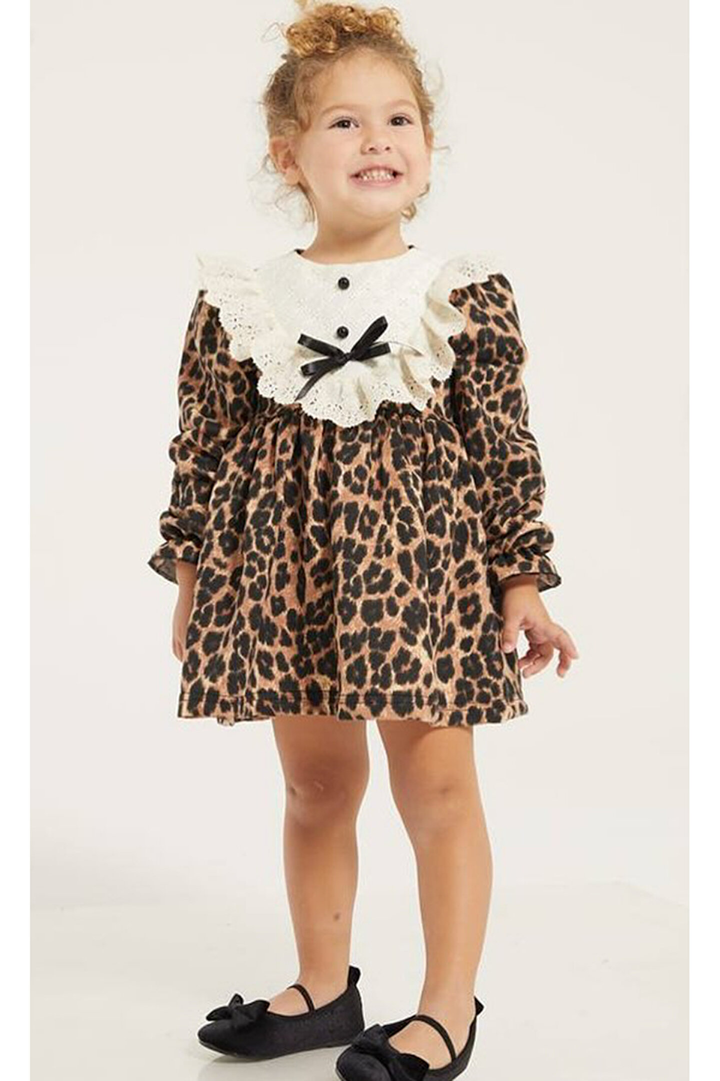 Baby Animals Kız Bebek Elbise Kız Çocuk Elbise Doğum Günü Parti Düğün Elbise Uzun Kollu Astarlı Elbise