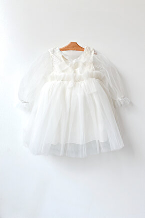 Mevsimlik Uzun Kollu Dantel Detaylı Kız Çocuk Elbisesi: Küçük prensesinizin yaz mevsiminde özel günlerde zarafetini ve şıklığını ön plana çıkaracak bu elbise, önünde bulunan fiyonk detayı ve dantel işlemeleriyle tasarlanmıştır.; Ayrıca etek kısmında bulunan yırtmaç detayı, hareket özgürlüğü sağlarken bebeğinizin zarif bir görünüm sergilemesini sağlar.; Özellikler: Dantel Detaylar: Elbisenin ön kısmında ve kollarda bulunan dantel detaylar, zarafet ve incelik katarken, küçük prensesinizin görünümünü daha etkileyici hale getirir.; Önünde Fiyonk Detayı: Elbisenin ön kısmında bulunan fiyonk detayı, sevimliliği ve şıklığı artırır.; Küçük prensesinizin görünümüne hoş bir dokunuş ekler.; Yırtmaç Detayı: Etek kısmında bulunan yırtmaç detayı, hareket özgürlüğü sağlarken, elbisenin tasarımına dinamizm katar.; Uzun Kollu Tasarım:Rahatlıkla giyilebilecek Uzun kollu tasarım, bebeğinizin serin kalmasını sağlar ve özgürce hareket etmesine olanak tanır.; Mevsimlik Kullanıma Uygun: Hafif yapısı ve nefes alabilen kumaşıyla yaz aylarında rahatlıkla giyilebilir.; Özel Günler İçin Uygun: Özel günlerde tercih edilebilecek şık tasarımıyla bebeğinizin her anında göz kamaştırmasını sağlar.; Bu yırtmaçlı, önü fiyonklu ve dantel detaylı Uzun kollu kız çocuk elbisesi, küçük prensesinizin serin ve şık kalmasını sağlarken, aynı zamanda özel günlerde de zarafetini tamamlar.; Zarif detaylarıyla bezenmiş bu elbise, bebeğinizin tarzını ve güzelliğini ön plana çıkarır.