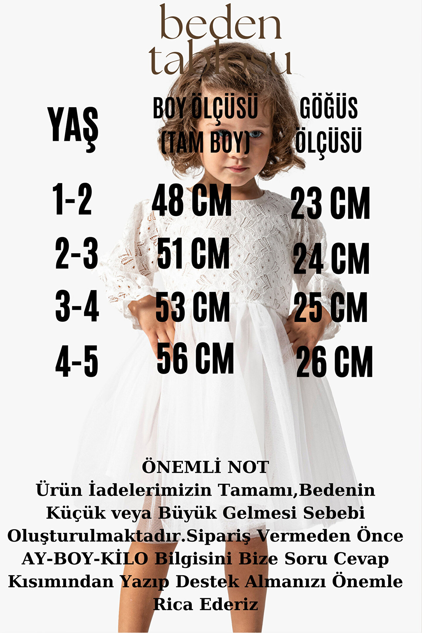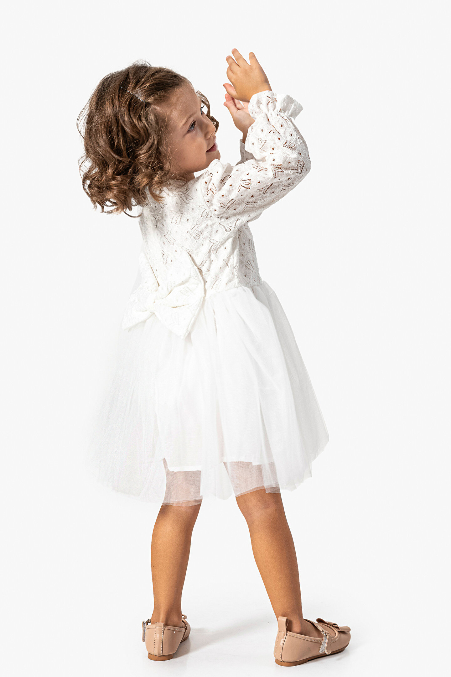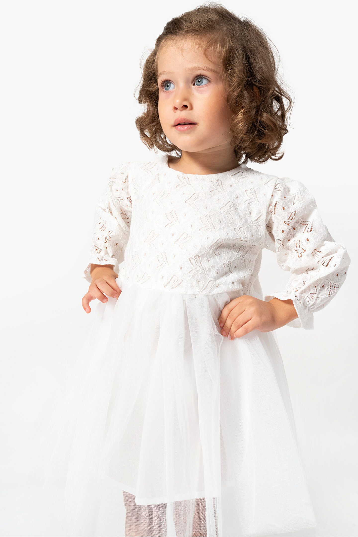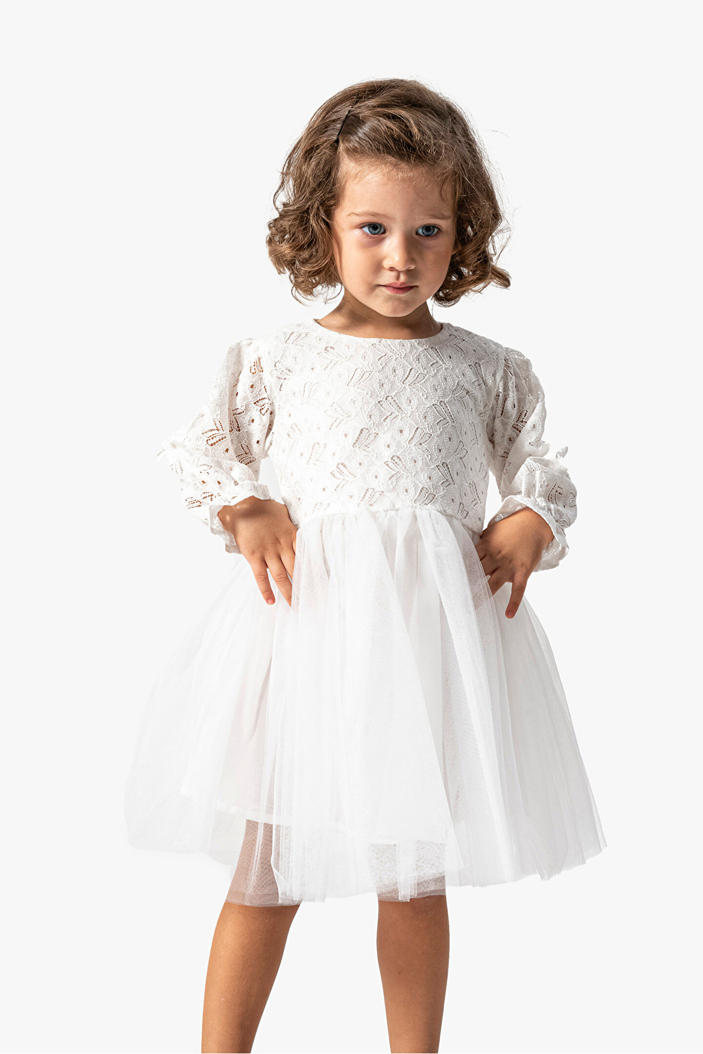 Mevsimlik Uzun Kollu Dantel Detaylı Kız Çocuk Elbisesi: Küçük prensesinizin yaz mevsiminde özel günlerde zarafetini ve şıklığını ön plana çıkaracak bu elbise, önünde bulunan fiyonk detayı ve dantel işlemeleriyle tasarlanmıştır.; Ayrıca etek kısmında bulunan yırtmaç detayı, hareket özgürlüğü sağlarken bebeğinizin zarif bir görünüm sergilemesini sağlar.; Özellikler: Dantel Detaylar: Elbisenin ön kısmında ve kollarda bulunan dantel detaylar, zarafet ve incelik katarken, küçük prensesinizin görünümünü daha etkileyici hale getirir.; Önünde Fiyonk Detayı: Elbisenin ön kısmında bulunan fiyonk detayı, sevimliliği ve şıklığı artırır.; Küçük prensesinizin görünümüne hoş bir dokunuş ekler.; Yırtmaç Detayı: Etek kısmında bulunan yırtmaç detayı, hareket özgürlüğü sağlarken, elbisenin tasarımına dinamizm katar.; Uzun Kollu Tasarım:Rahatlıkla giyilebilecek Uzun kollu tasarım, bebeğinizin serin kalmasını sağlar ve özgürce hareket etmesine olanak tanır.; Mevsimlik Kullanıma Uygun: Hafif yapısı ve nefes alabilen kumaşıyla yaz aylarında rahatlıkla giyilebilir.; Özel Günler İçin Uygun: Özel günlerde tercih edilebilecek şık tasarımıyla bebeğinizin her anında göz kamaştırmasını sağlar.; Bu yırtmaçlı, önü fiyonklu ve dantel detaylı Uzun kollu kız çocuk elbisesi, küçük prensesinizin serin ve şık kalmasını sağlarken, aynı zamanda özel günlerde de zarafetini tamamlar.; Zarif detaylarıyla bezenmiş bu elbise, bebeğinizin tarzını ve güzelliğini ön plana çıkarır.