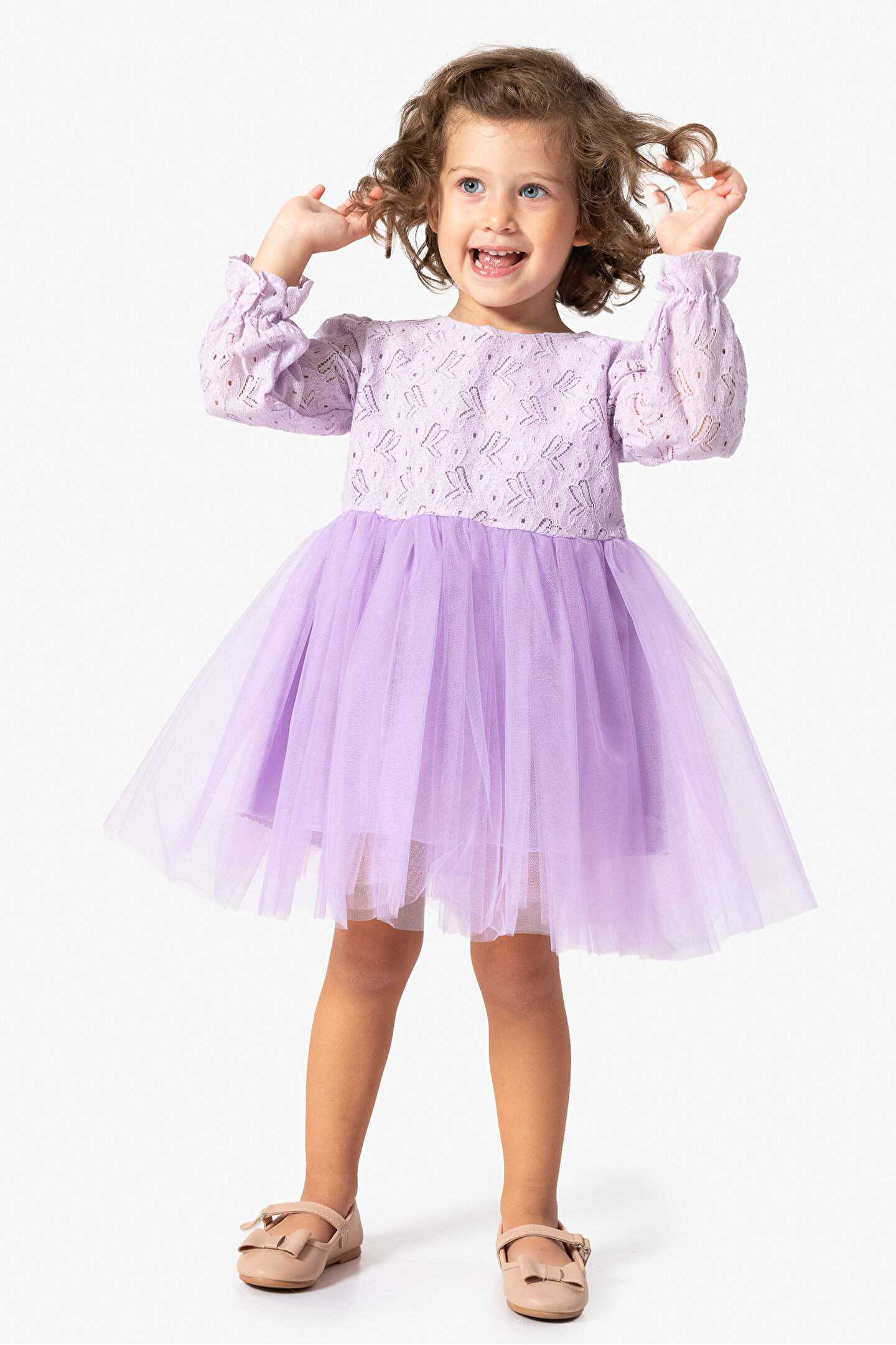 Mevsimlik Uzun Kollu Dantel Detaylı Kız Çocuk Elbisesi: Küçük prensesinizin yaz mevsiminde özel günlerde zarafetini ve şıklığını ön plana çıkaracak bu elbise, önünde bulunan fiyonk detayı ve dantel işlemeleriyle tasarlanmıştır.; Ayrıca etek kısmında bulunan yırtmaç detayı, hareket özgürlüğü sağlarken bebeğinizin zarif bir görünüm sergilemesini sağlar.; Özellikler: Dantel Detaylar: Elbisenin ön kısmında ve kollarda bulunan dantel detaylar, zarafet ve incelik katarken, küçük prensesinizin görünümünü daha etkileyici hale getirir.; Önünde Fiyonk Detayı: Elbisenin ön kısmında bulunan fiyonk detayı, sevimliliği ve şıklığı artırır.; Küçük prensesinizin görünümüne hoş bir dokunuş ekler.; Yırtmaç Detayı: Etek kısmında bulunan yırtmaç detayı, hareket özgürlüğü sağlarken, elbisenin tasarımına dinamizm katar.; Uzun Kollu Tasarım:Rahatlıkla giyilebilecek Uzun kollu tasarım, bebeğinizin serin kalmasını sağlar ve özgürce hareket etmesine olanak tanır.; Mevsimlik Kullanıma Uygun: Hafif yapısı ve nefes alabilen kumaşıyla yaz aylarında rahatlıkla giyilebilir.; Özel Günler İçin Uygun: Özel günlerde tercih edilebilecek şık tasarımıyla bebeğinizin her anında göz kamaştırmasını sağlar.; Bu yırtmaçlı, önü fiyonklu ve dantel detaylı Uzun kollu kız çocuk elbisesi, küçük prensesinizin serin ve şık kalmasını sağlarken, aynı zamanda özel günlerde de zarafetini tamamlar.; Zarif detaylarıyla bezenmiş bu elbise, bebeğinizin tarzını ve güzelliğini ön plana çıkarır.