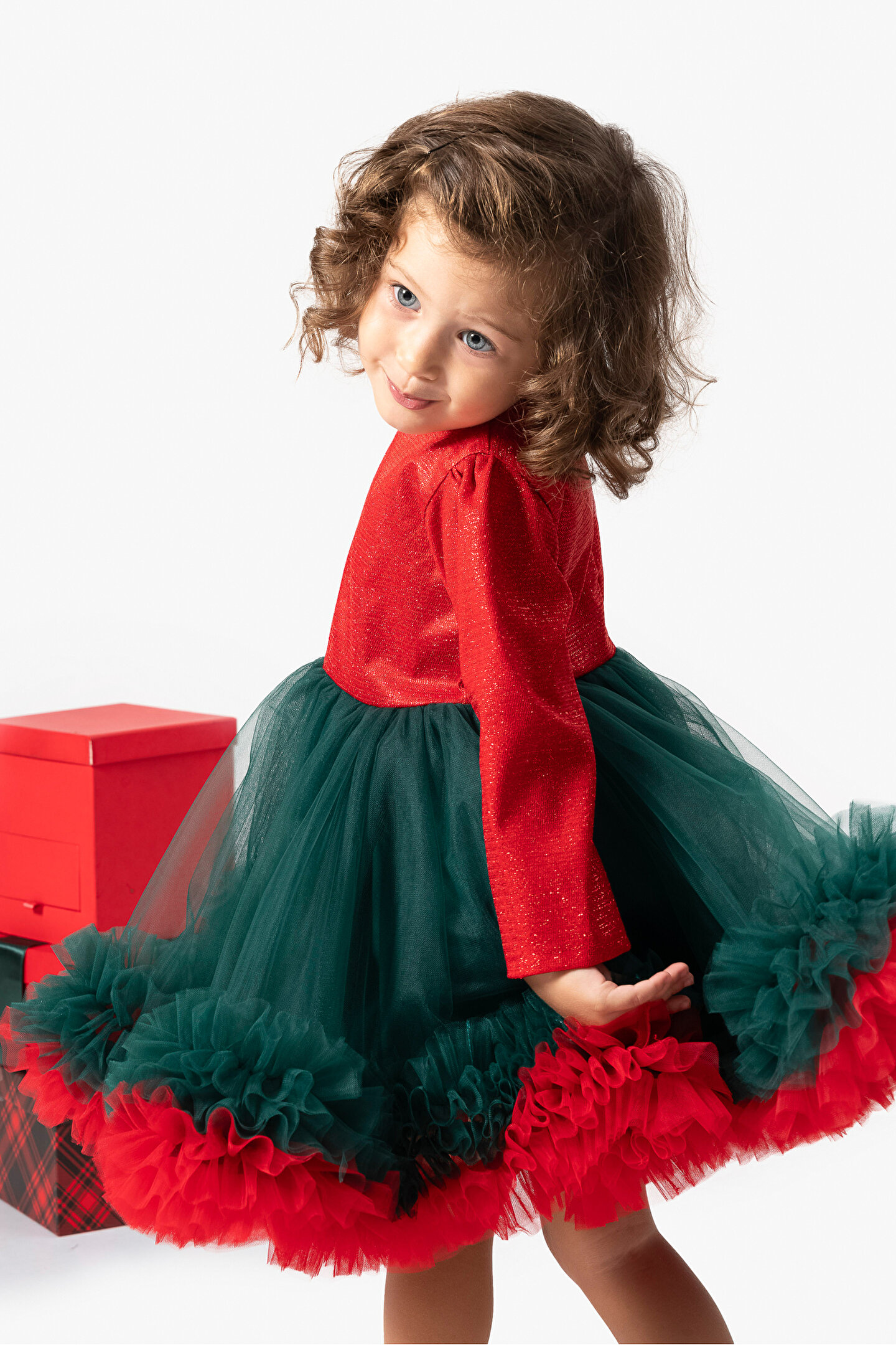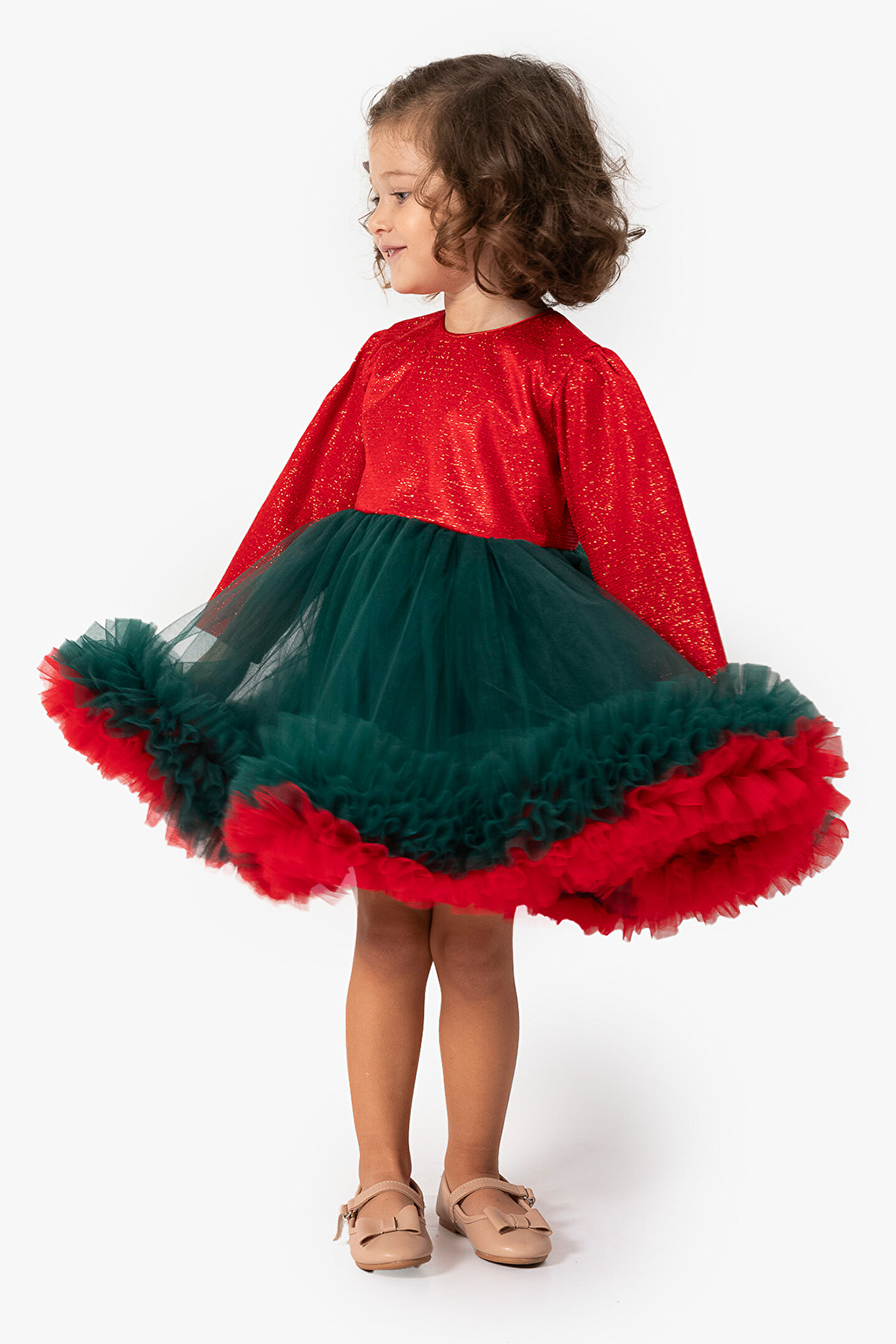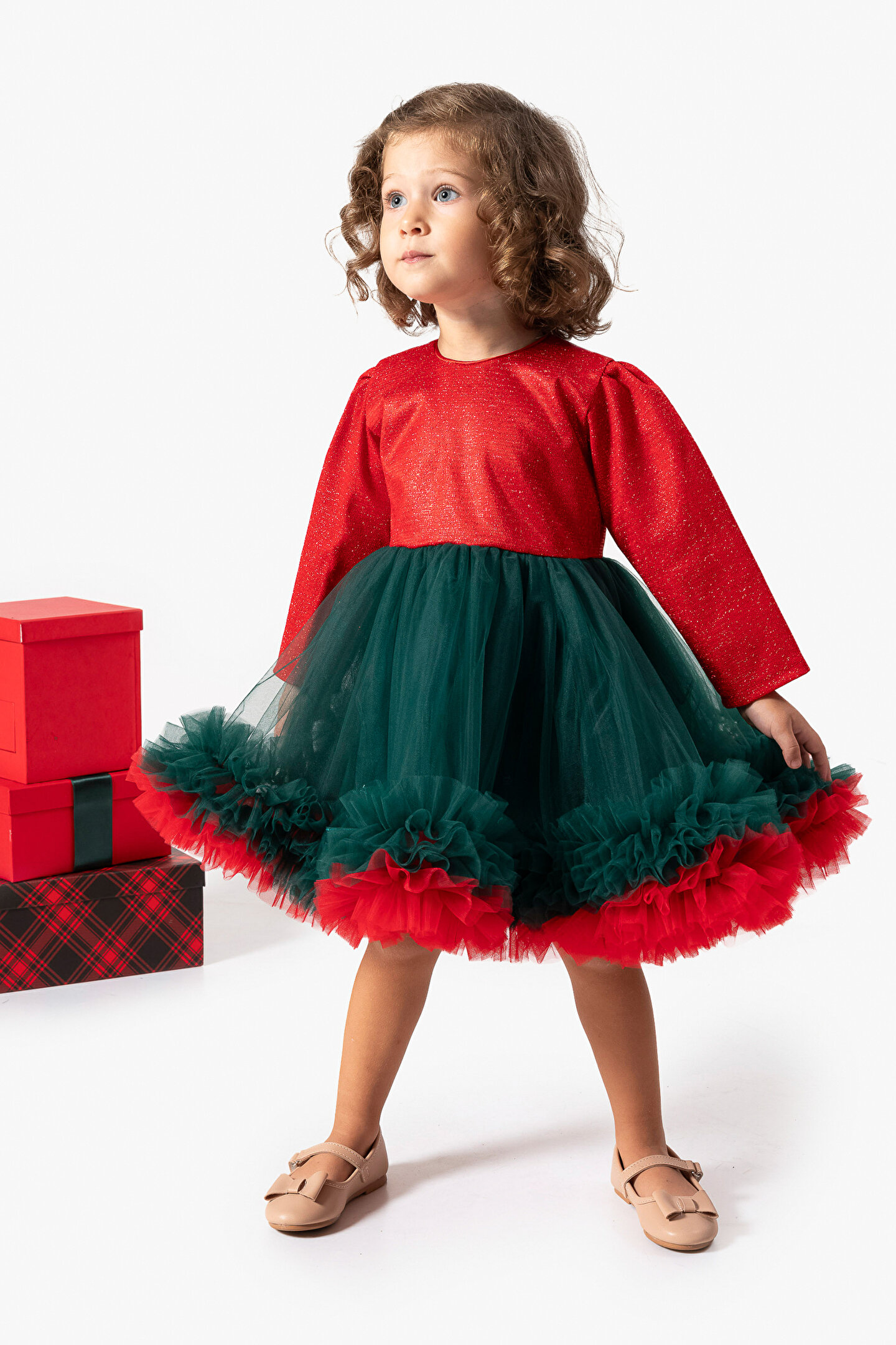 Baby Animals Kız Bebek Elbise Kız Çocuk Elbise Doğum Günü Parti Düğün Tütü Tüllü Uzun Kollu Astarlı Elbise