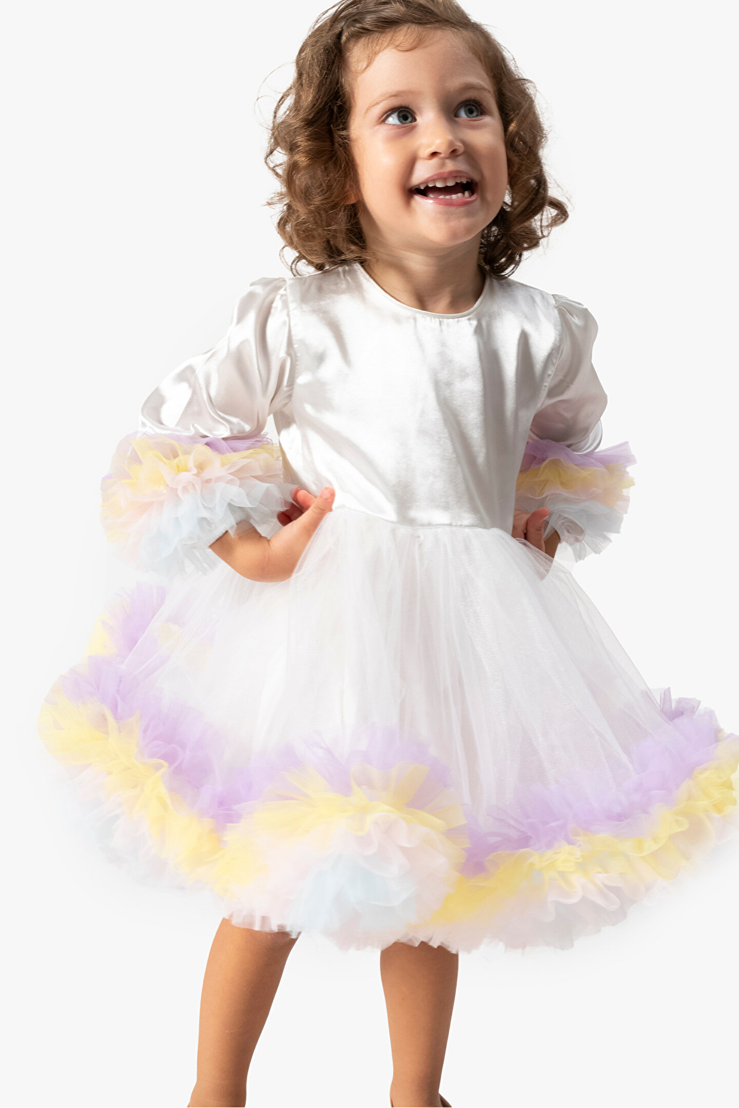 Baby Animals Kız Bebek Elbise Kız Çocuk Elbise Doğum Günü Parti Düğün Tütü Tüllü Uzun Kollu Astarlı Elbise