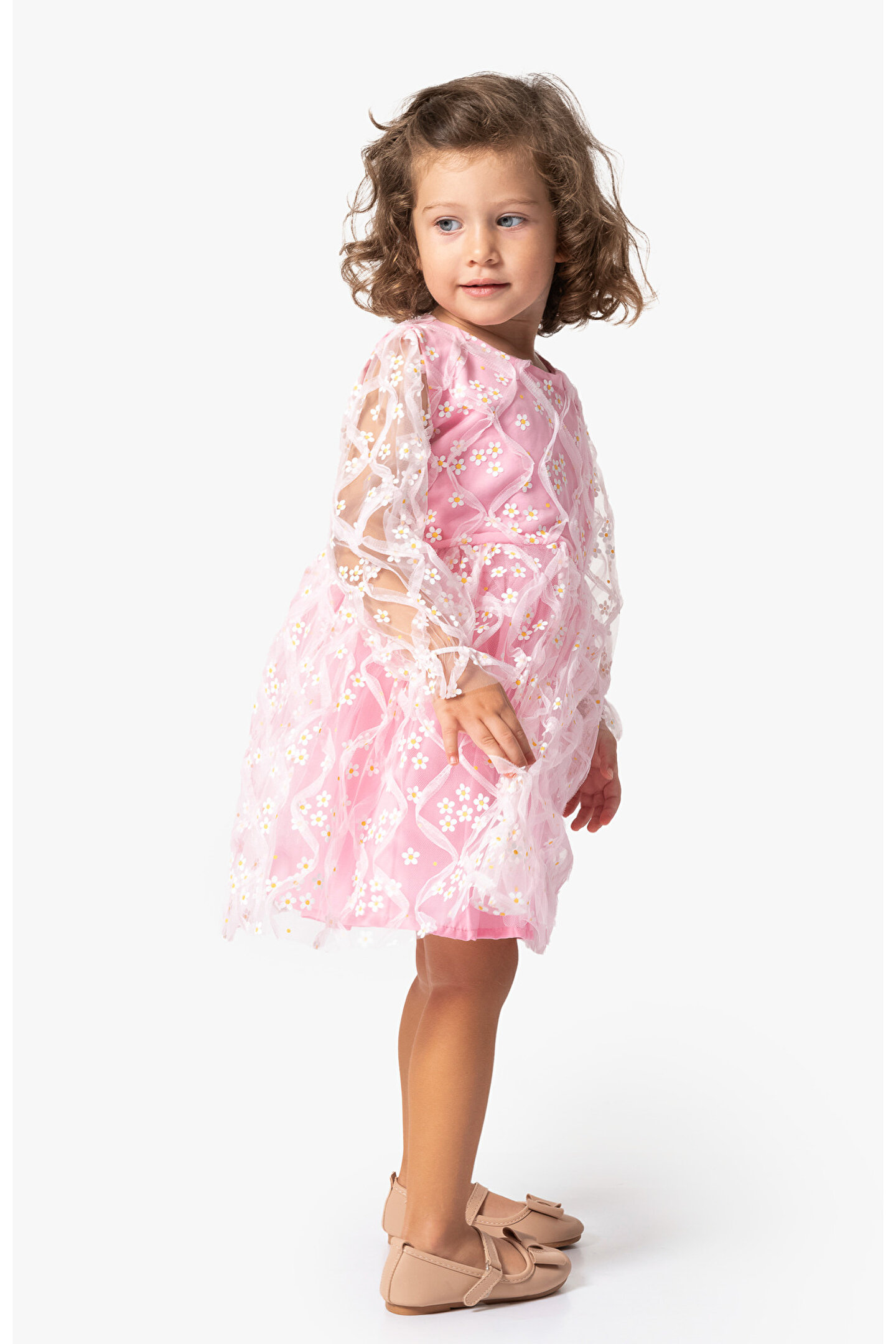 Mevsimlik Uzun Kollu Dantel Detaylı Kız Çocuk Elbisesi: Küçük prensesinizin yaz mevsiminde özel günlerde zarafetini ve şıklığını ön plana çıkaracak bu elbise, önünde bulunan fiyonk detayı ve dantel işlemeleriyle tasarlanmıştır.; Ayrıca etek kısmında bulunan yırtmaç detayı, hareket özgürlüğü sağlarken bebeğinizin zarif bir görünüm sergilemesini sağlar.; Özellikler: Dantel Detaylar: Elbisenin ön kısmında ve kollarda bulunan dantel detaylar, zarafet ve incelik katarken, küçük prensesinizin görünümünü daha etkileyici hale getirir.; Önünde Fiyonk Detayı: Elbisenin ön kısmında bulunan fiyonk detayı, sevimliliği ve şıklığı artırır.; Küçük prensesinizin görünümüne hoş bir dokunuş ekler.; Yırtmaç Detayı: Etek kısmında bulunan yırtmaç detayı, hareket özgürlüğü sağlarken, elbisenin tasarımına dinamizm katar.; Uzun Kollu Tasarım:Rahatlıkla giyilebilecek Uzun kollu tasarım, bebeğinizin serin kalmasını sağlar ve özgürce hareket etmesine olanak tanır.; Mevsimlik Kullanıma Uygun: Hafif yapısı ve nefes alabilen kumaşıyla yaz aylarında rahatlıkla giyilebilir.; Özel Günler İçin Uygun: Özel günlerde tercih edilebilecek şık tasarımıyla bebeğinizin her anında göz kamaştırmasını sağlar.; Bu yırtmaçlı, önü fiyonklu ve dantel detaylı Uzun kollu kız çocuk elbisesi, küçük prensesinizin serin ve şık kalmasını sağlarken, aynı zamanda özel günlerde de zarafetini tamamlar.; Zarif detaylarıyla bezenmiş bu elbise, bebeğinizin tarzını ve güzelliğini ön plana çıkarır.