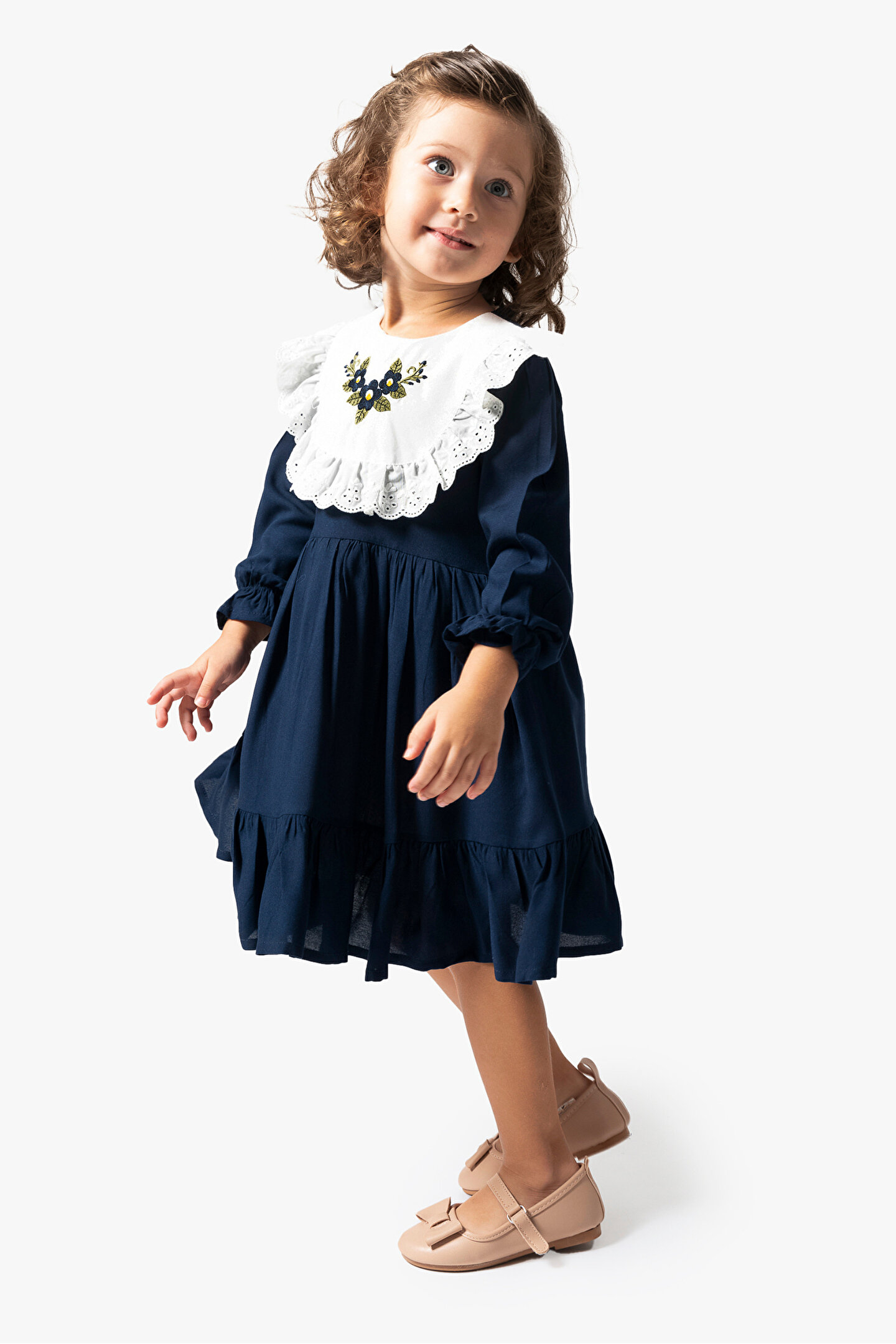 Mevsimlik Uzun Kollu Dantel Detaylı Kız Çocuk Elbisesi: Küçük prensesinizin yaz mevsiminde özel günlerde zarafetini ve şıklığını ön plana çıkaracak bu elbise, önünde bulunan fiyonk detayı ve dantel işlemeleriyle tasarlanmıştır.; Ayrıca etek kısmında bulunan yırtmaç detayı, hareket özgürlüğü sağlarken bebeğinizin zarif bir görünüm sergilemesini sağlar.; Özellikler: Dantel Detaylar: Elbisenin ön kısmında ve kollarda bulunan dantel detaylar, zarafet ve incelik katarken, küçük prensesinizin görünümünü daha etkileyici hale getirir.; Önünde Fiyonk Detayı: Elbisenin ön kısmında bulunan fiyonk detayı, sevimliliği ve şıklığı artırır.; Küçük prensesinizin görünümüne hoş bir dokunuş ekler.; Yırtmaç Detayı: Etek kısmında bulunan yırtmaç detayı, hareket özgürlüğü sağlarken, elbisenin tasarımına dinamizm katar.; Uzun Kollu Tasarım:Rahatlıkla giyilebilecek Uzun kollu tasarım, bebeğinizin serin kalmasını sağlar ve özgürce hareket etmesine olanak tanır.; Mevsimlik Kullanıma Uygun: Hafif yapısı ve nefes alabilen kumaşıyla yaz aylarında rahatlıkla giyilebilir.; Özel Günler İçin Uygun: Özel günlerde tercih edilebilecek şık tasarımıyla bebeğinizin her anında göz kamaştırmasını sağlar.; Bu yırtmaçlı, önü fiyonklu ve dantel detaylı Uzun kollu kız çocuk elbisesi, küçük prensesinizin serin ve şık kalmasını sağlarken, aynı zamanda özel günlerde de zarafetini tamamlar.; Zarif detaylarıyla bezenmiş bu elbise, bebeğinizin tarzını ve güzelliğini ön plana çıkarır.