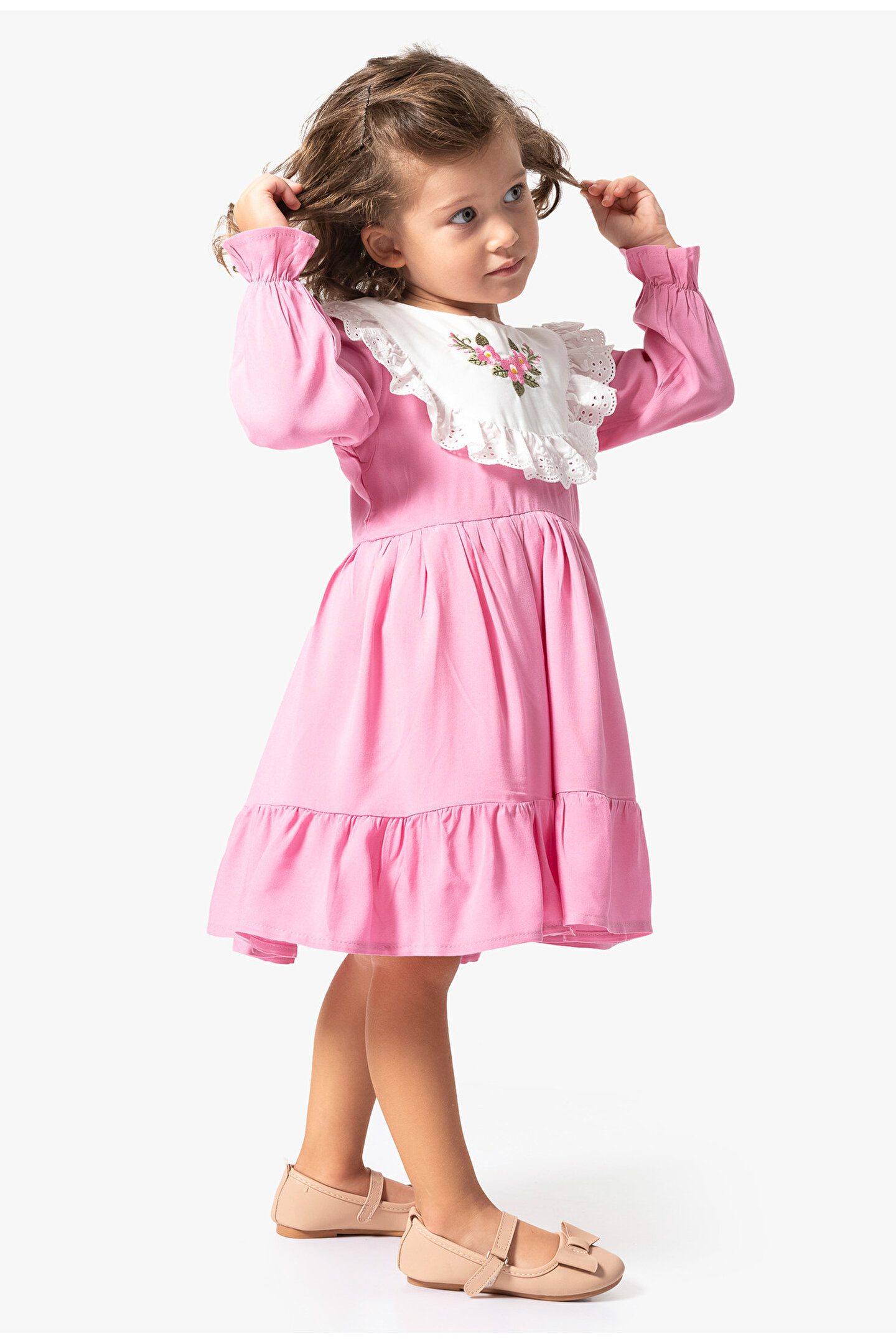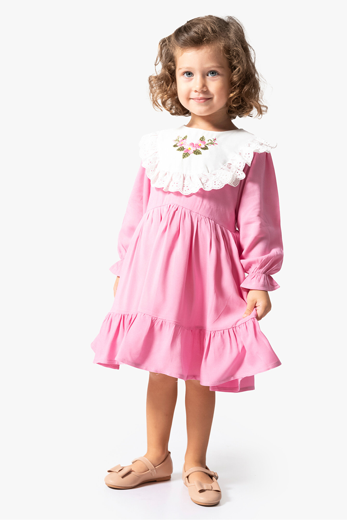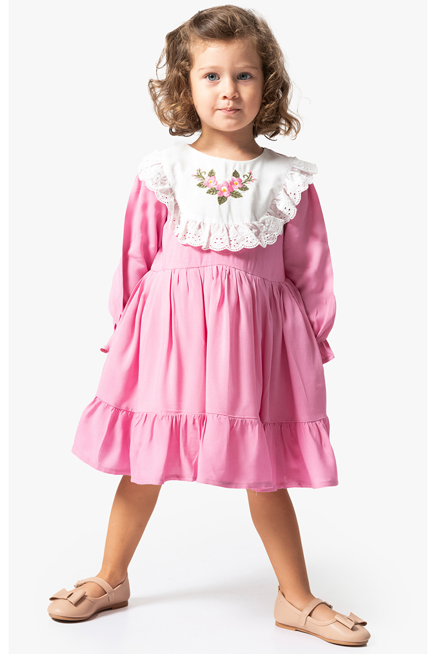 Mevsimlik Uzun Kollu Dantel Detaylı Kız Çocuk Elbisesi: Küçük prensesinizin yaz mevsiminde özel günlerde zarafetini ve şıklığını ön plana çıkaracak bu elbise, önünde bulunan fiyonk detayı ve dantel işlemeleriyle tasarlanmıştır.; Ayrıca etek kısmında bulunan yırtmaç detayı, hareket özgürlüğü sağlarken bebeğinizin zarif bir görünüm sergilemesini sağlar.; Özellikler: Dantel Detaylar: Elbisenin ön kısmında ve kollarda bulunan dantel detaylar, zarafet ve incelik katarken, küçük prensesinizin görünümünü daha etkileyici hale getirir.; Önünde Fiyonk Detayı: Elbisenin ön kısmında bulunan fiyonk detayı, sevimliliği ve şıklığı artırır.; Küçük prensesinizin görünümüne hoş bir dokunuş ekler.; Yırtmaç Detayı: Etek kısmında bulunan yırtmaç detayı, hareket özgürlüğü sağlarken, elbisenin tasarımına dinamizm katar.; Uzun Kollu Tasarım:Rahatlıkla giyilebilecek Uzun kollu tasarım, bebeğinizin serin kalmasını sağlar ve özgürce hareket etmesine olanak tanır.; Mevsimlik Kullanıma Uygun: Hafif yapısı ve nefes alabilen kumaşıyla yaz aylarında rahatlıkla giyilebilir.; Özel Günler İçin Uygun: Özel günlerde tercih edilebilecek şık tasarımıyla bebeğinizin her anında göz kamaştırmasını sağlar.; Bu yırtmaçlı, önü fiyonklu ve dantel detaylı Uzun kollu kız çocuk elbisesi, küçük prensesinizin serin ve şık kalmasını sağlarken, aynı zamanda özel günlerde de zarafetini tamamlar.; Zarif detaylarıyla bezenmiş bu elbise, bebeğinizin tarzını ve güzelliğini ön plana çıkarır.
