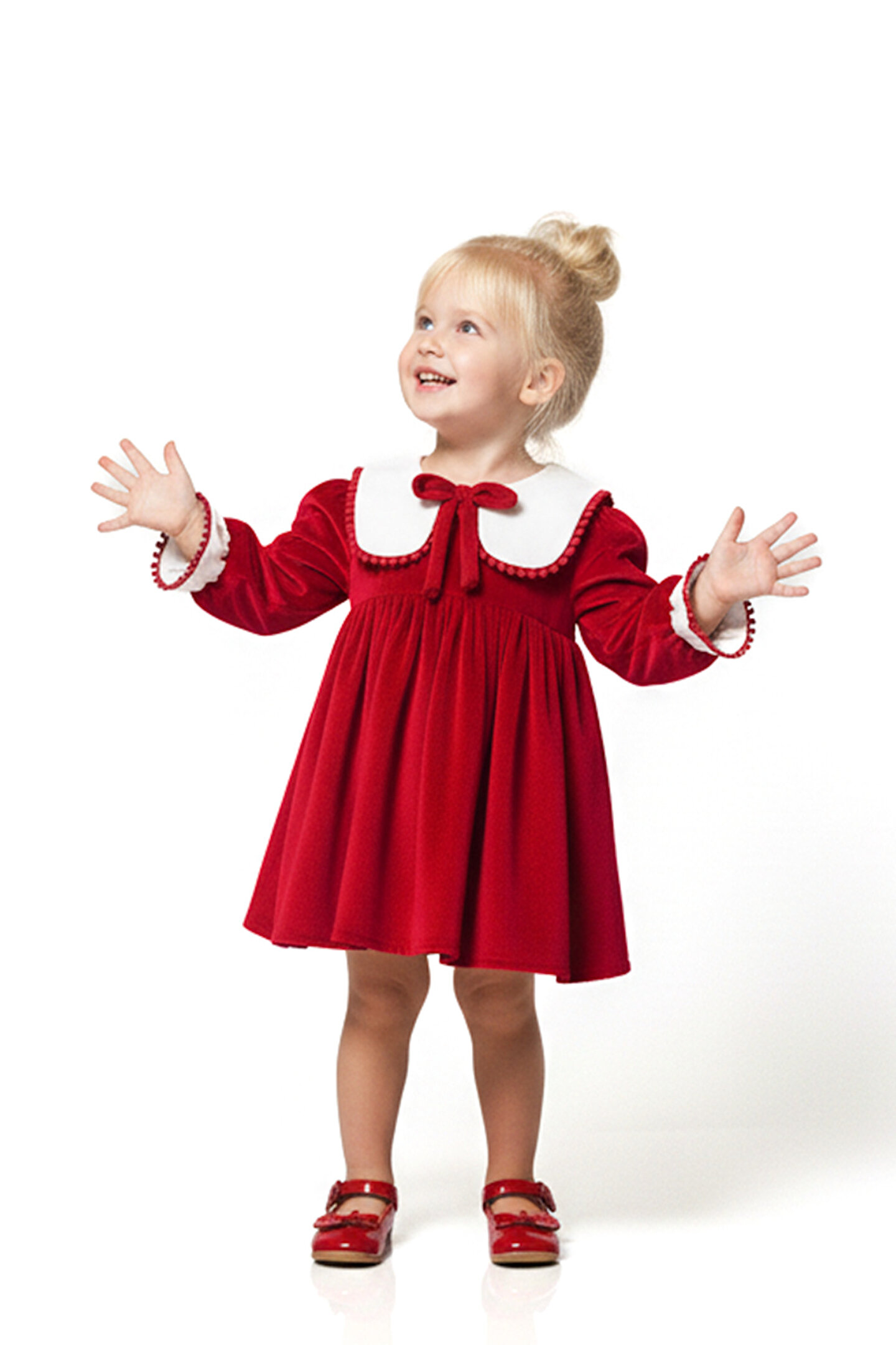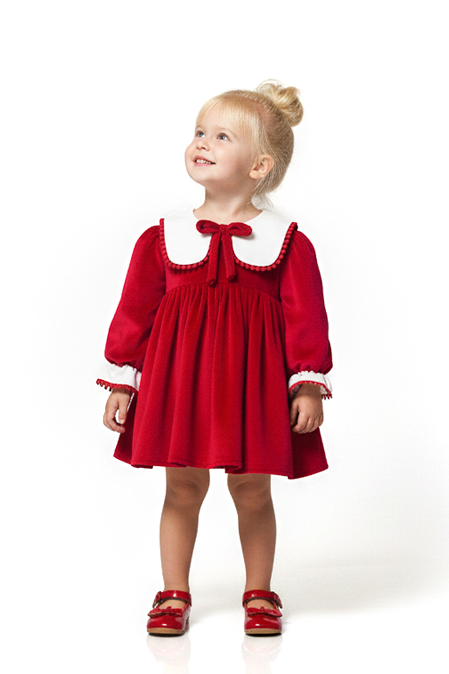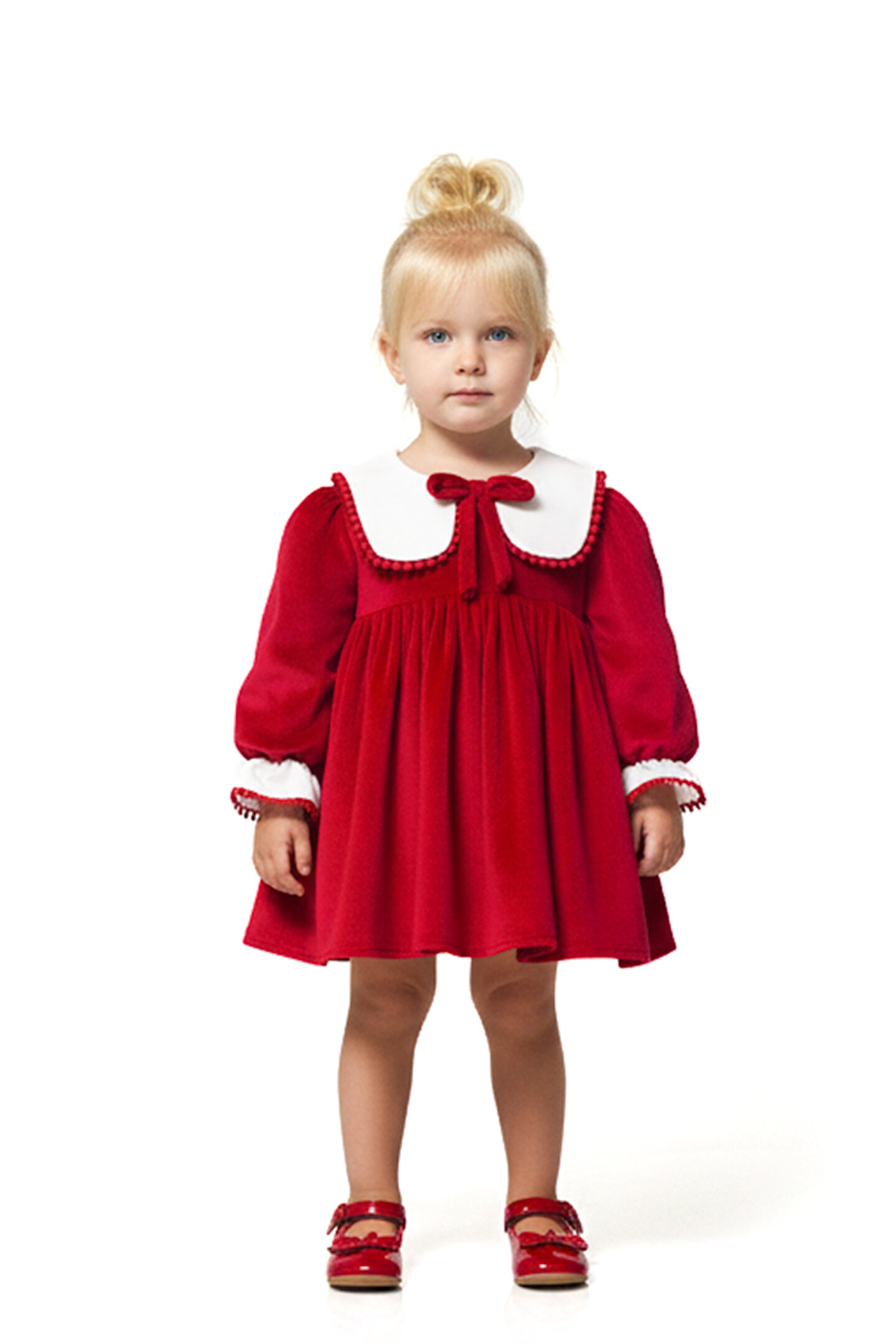 Mevsimlik Uzun Kollu Dantel Detaylı Kız Çocuk Elbisesi: Küçük prensesinizin özel günlerde zarafetini ve şıklığını ön plana çıkaracak bu elbise, önünde bulunan Yakalı fiyonk detayı ve dantel işlemeleriyle tasarlanmıştır.; Özellikler: Dantel Detaylar: Elbisenin ön kısmında ve kollarda bulunan dantel detaylar, zarafet ve incelik katarken, küçük prensesinizin görünümünü daha etkileyici hale getirir.; Önünde Yakalı Fiyonk Detayı: Elbisenin ön kısmında bulunan fiyonk detayı, sevimliliği ve şıklığı artırır.; Küçük prensesinizin görünümüne hoş bir dokunuş ekler.; Uzun Kollu Tasarım:Rahatlıkla giyilebilecek Uzun kollu tasarım, bebeğinizin serin kalmasını sağlar ve özgürce hareket etmesine olanak tanır.; Mevsimlik Kullanıma Uygun: Hafif yapısı ve nefes alabilen kumaşıyla rahatlıkla giyilebilir.; Özel Günler İçin Uygun: Özel günlerde tercih edilebilecek şık tasarımıyla bebeğinizin her anında göz kamaştırmasını sağlar.; Bu önü Yakalı fiyonklu ve dantel detaylı Uzun kollu kız çocuk elbisesi, küçük prensesinizin şık kalmasını sağlarken, aynı zamanda özel günlerde de zarafetini tamamlar.; Zarif detaylarıyla bezenmiş bu elbise, bebeğinizin tarzını ve güzelliğini ön plana çıkarır.
