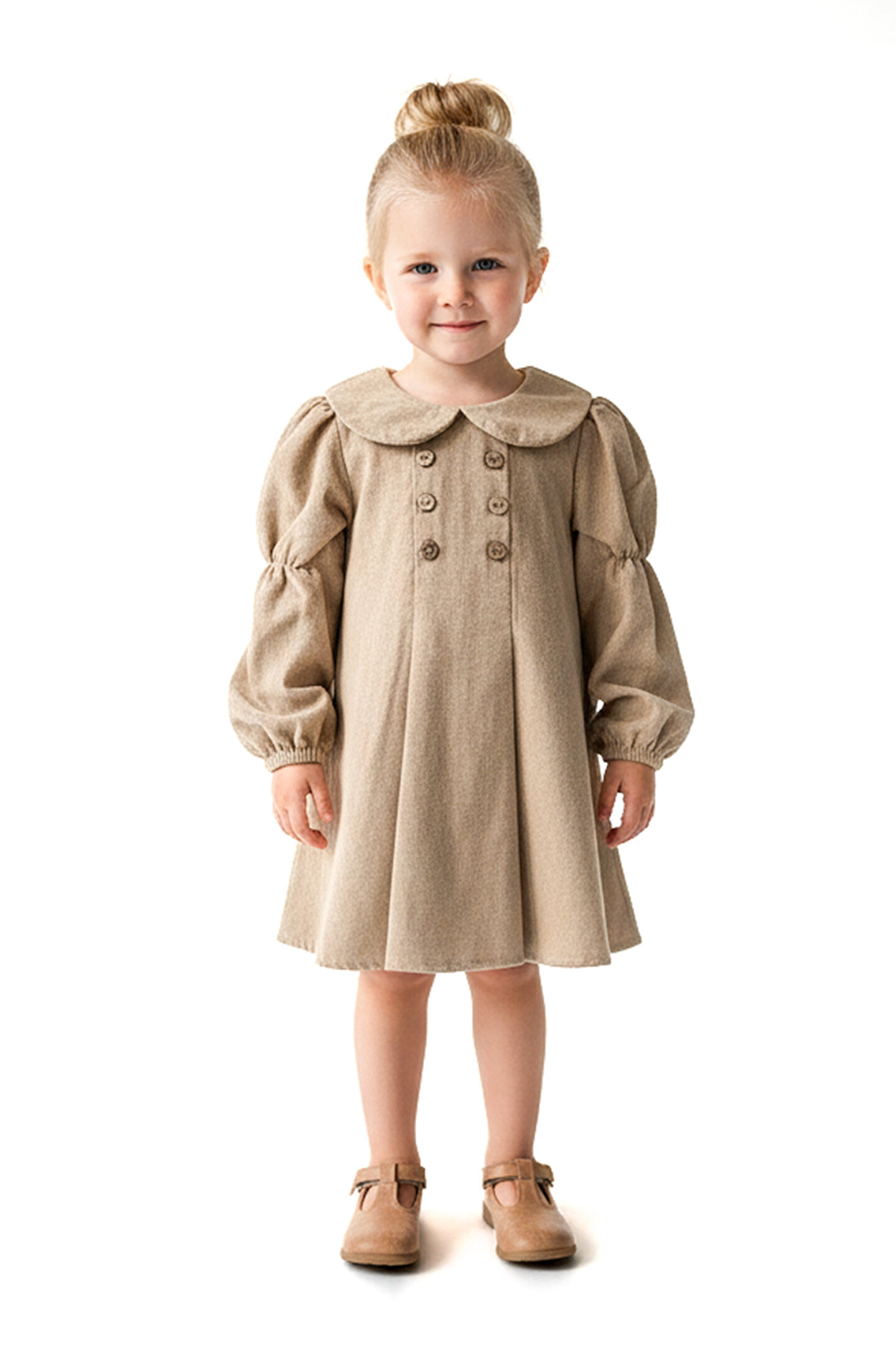 Baby Animals Kız Bebek Elbise Kız Çocuk Elbise Keten Doğum Günü Parti Düğün Özel Gün Uzun Kol Yakalı Astarlı