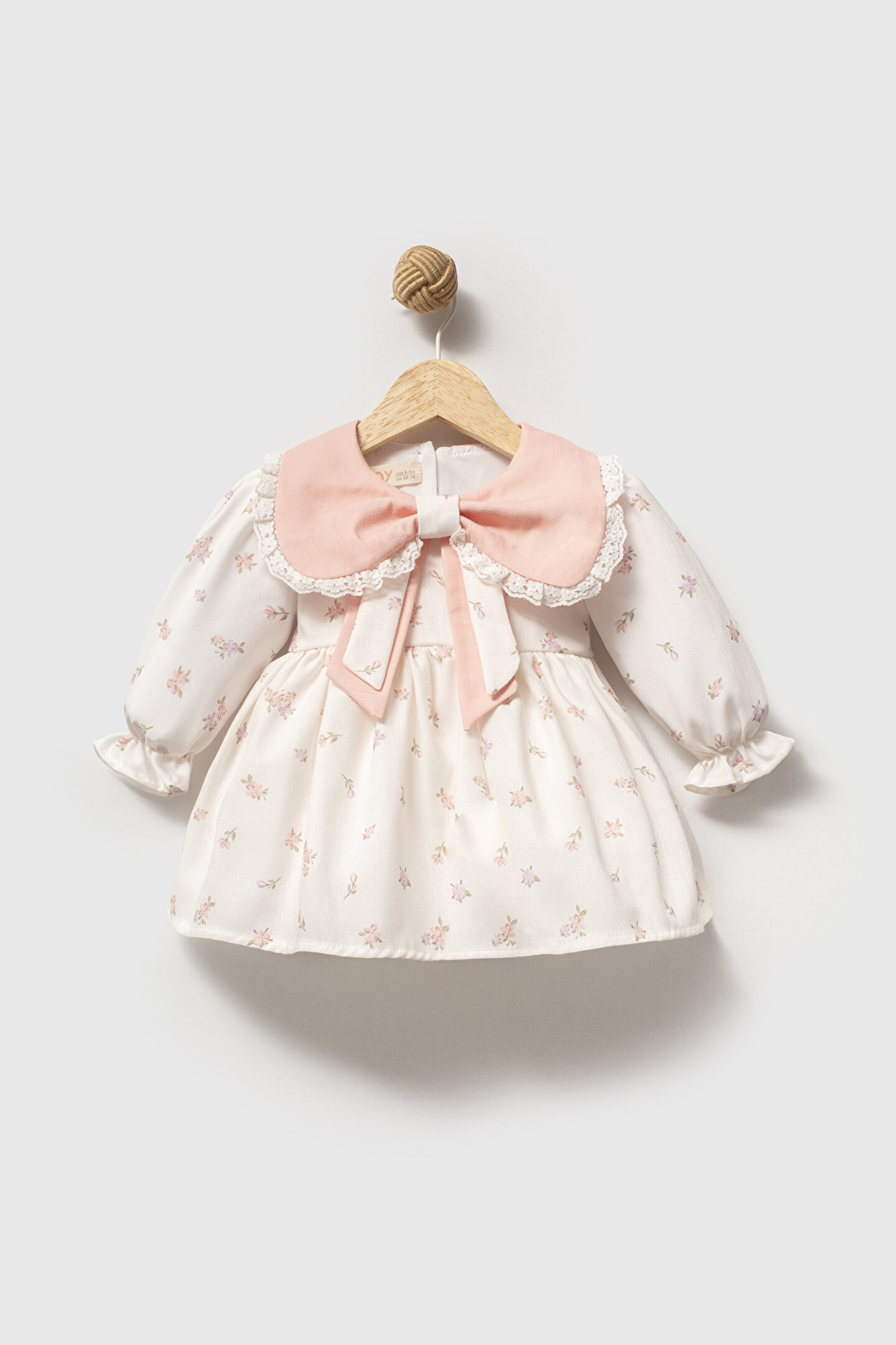 Baby Animals Kız Bebek Elbise Kız Çocuk Elbise Yakalı Doğum Günü Parti Düğün Özel Gün Uzun Kol Astarlı Çiçekli