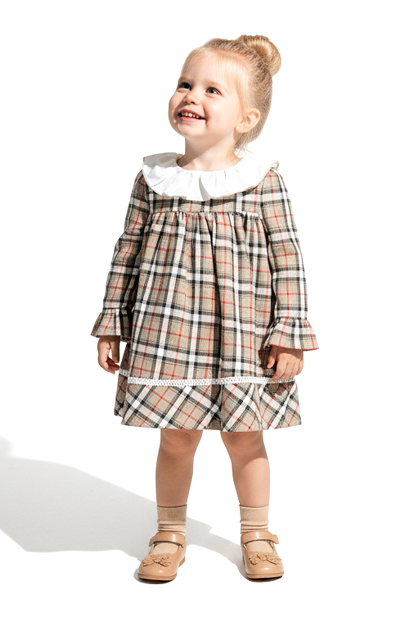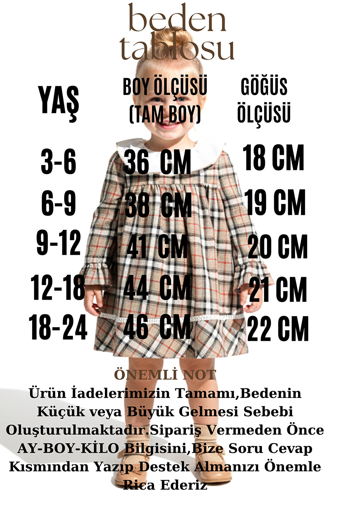 Baby Animals Kız Bebek Elbise Kız Çocuk Elbise Yakalı Doğum Günü Parti Düğün Özel Gün Uzun Kol Astarlı Ekose