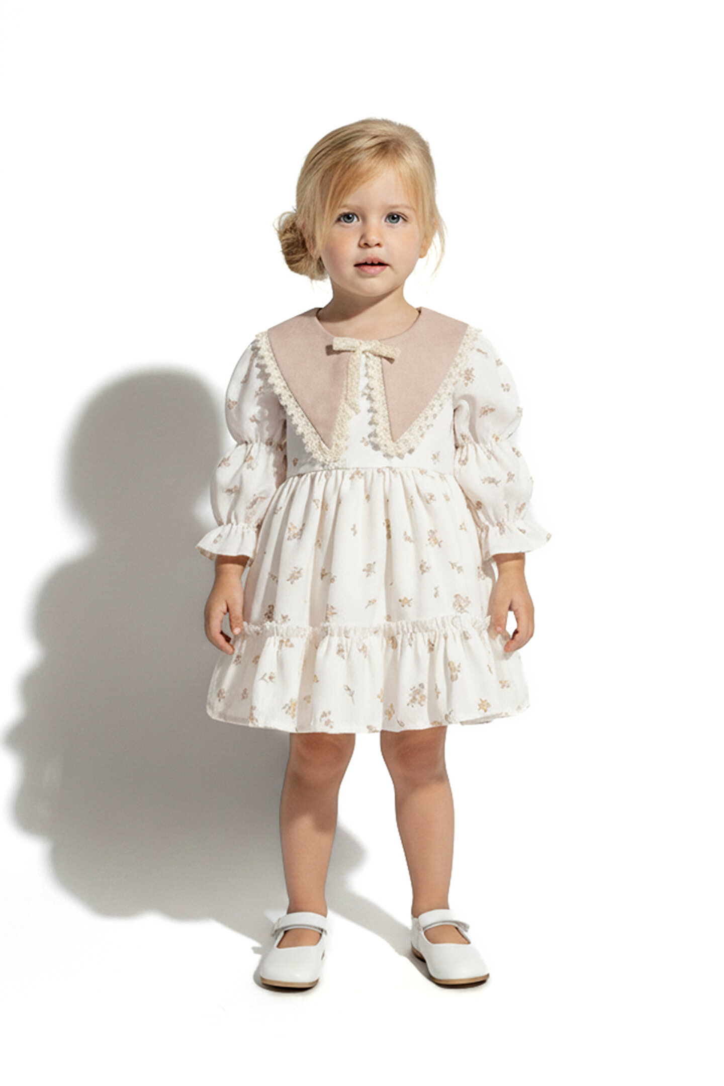 Baby Animals Kız Bebek Elbise Kız Çocuk Elbise Yakalı Doğum Günü Parti Düğün Özel Gün Uzun Kol Astarlı Elbise