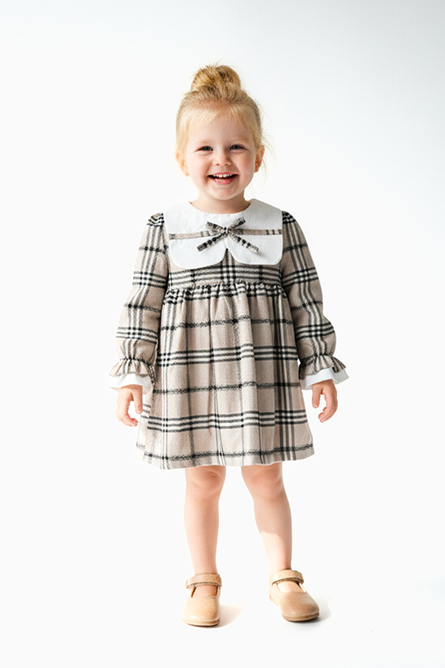 Mevsimlik Uzun Kollu Dantel Detaylı Kız Çocuk Elbisesi: Küçük prensesinizin özel günlerde zarafetini ve şıklığını ön plana çıkaracak bu elbise, önünde bulunan Yakalı fiyonk detayı ve dantel işlemeleriyle tasarlanmıştır.; Özellikler: Dantel Detaylar: Elbisenin ön kısmında ve kollarda bulunan dantel detaylar, zarafet ve incelik katarken, küçük prensesinizin görünümünü daha etkileyici hale getirir.; Önünde Yakalı Fiyonk Detayı: Elbisenin ön kısmında bulunan fiyonk detayı, sevimliliği ve şıklığı artırır.; Küçük prensesinizin görünümüne hoş bir dokunuş ekler.; Uzun Kollu Tasarım:Rahatlıkla giyilebilecek Uzun kollu tasarım, bebeğinizin serin kalmasını sağlar ve özgürce hareket etmesine olanak tanır.; Mevsimlik Kullanıma Uygun: Hafif yapısı ve nefes alabilen kumaşıyla rahatlıkla giyilebilir.; Özel Günler İçin Uygun: Özel günlerde tercih edilebilecek şık tasarımıyla bebeğinizin her anında göz kamaştırmasını sağlar.; Bu önü Yakalı fiyonklu ve dantel detaylı Uzun kollu kız çocuk elbisesi, küçük prensesinizin şık kalmasını sağlarken, aynı zamanda özel günlerde de zarafetini tamamlar.; Zarif detaylarıyla bezenmiş bu elbise, bebeğinizin tarzını ve güzelliğini ön plana çıkarır.