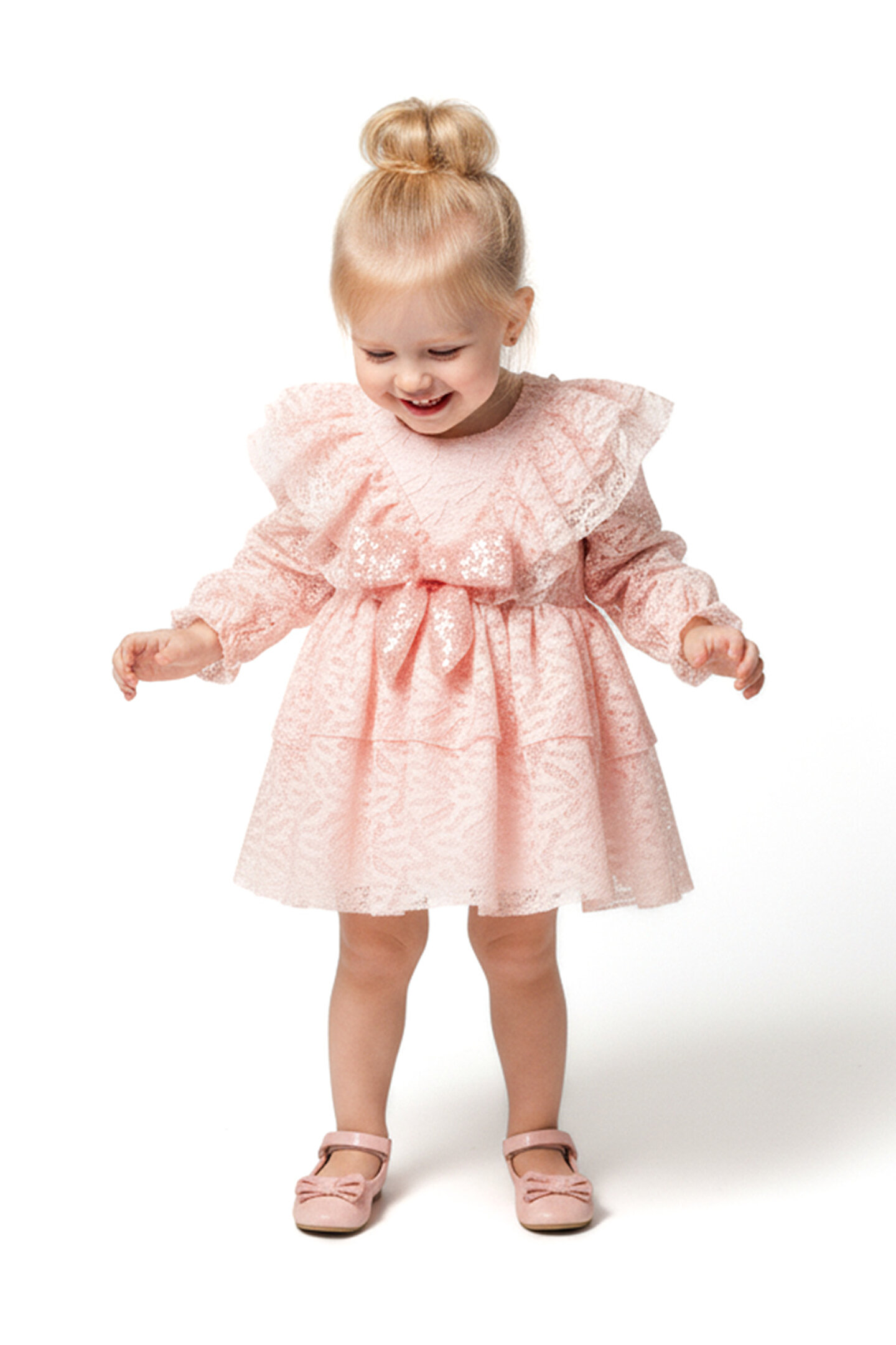 Baby Animals Kız Bebek Elbise Kız Çocuk Elbise Yakalı Doğum Günü Parti Düğün Özel Gün Uzun Kol Fiyonklu Astarlı
