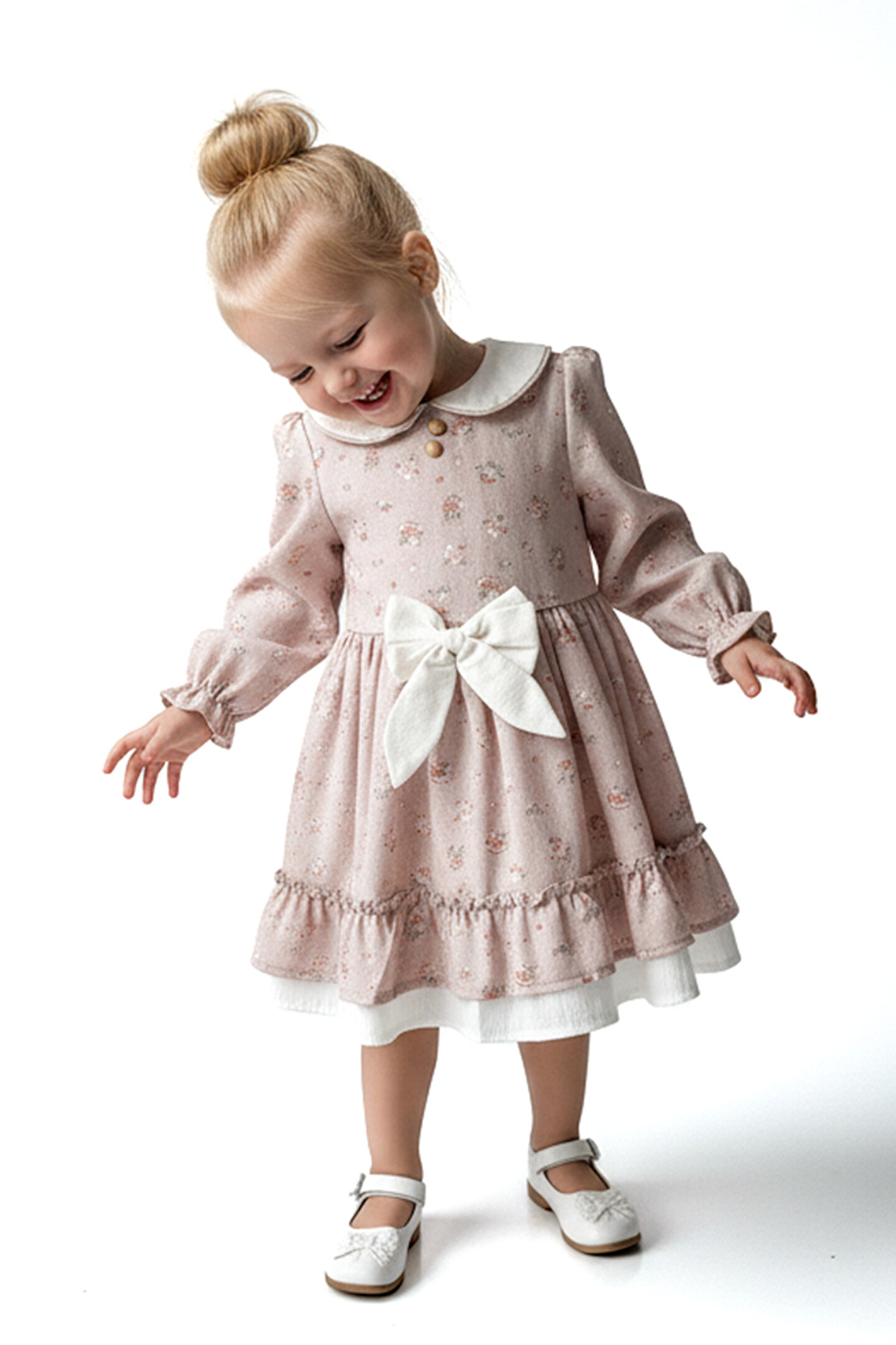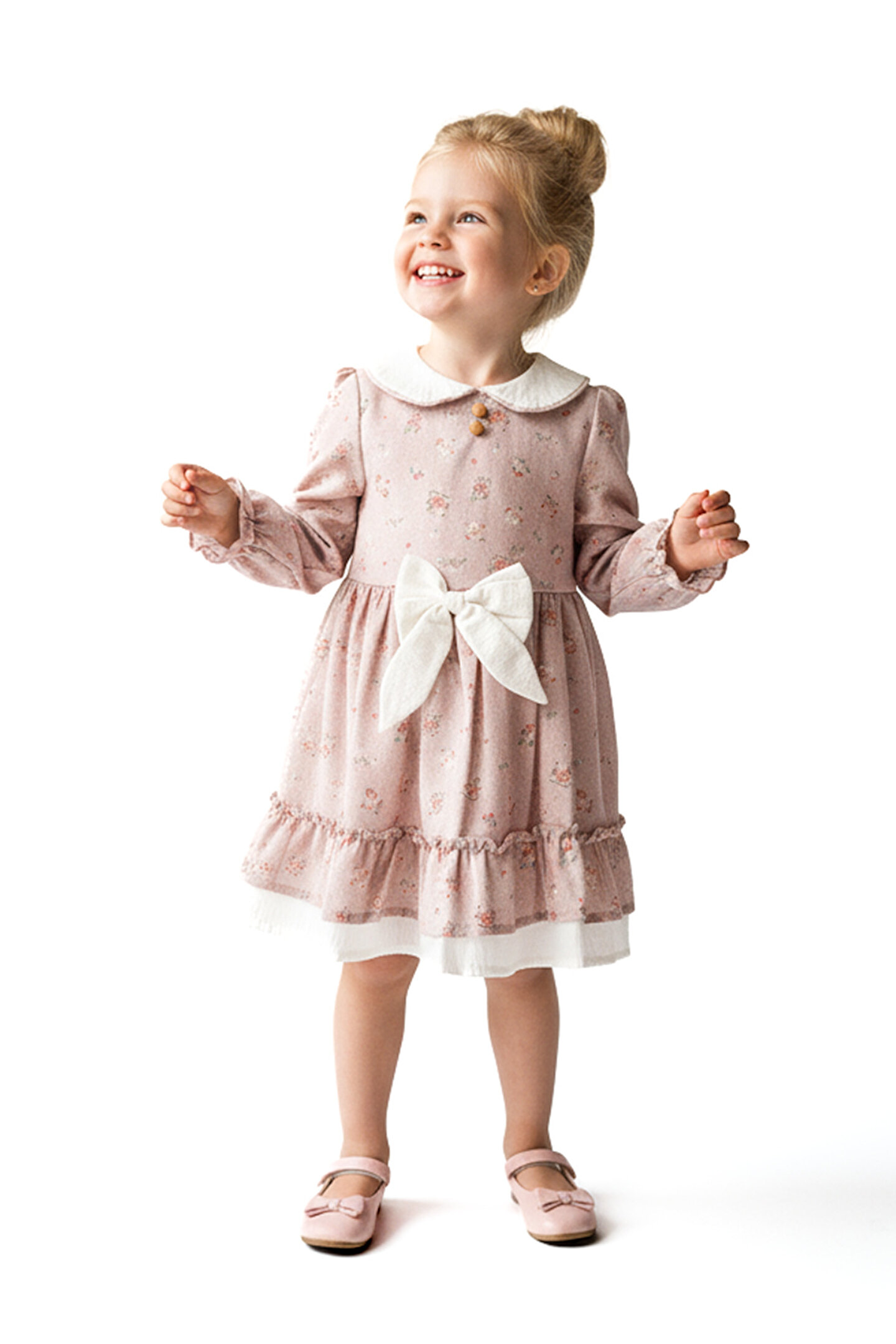 Mevsimlik Uzun Kollu Dantel Detaylı Kız Çocuk Elbisesi: Küçük prensesinizin özel günlerde zarafetini ve şıklığını ön plana çıkaracak bu elbise, önünde bulunan Yakalı fiyonk detayı ve dantel işlemeleriyle tasarlanmıştır.; Özellikler: Dantel Detaylar: Elbisenin ön kısmında ve kollarda bulunan dantel detaylar, zarafet ve incelik katarken, küçük prensesinizin görünümünü daha etkileyici hale getirir.; Önünde Yakalı Fiyonk Detayı: Elbisenin ön kısmında bulunan fiyonk detayı, sevimliliği ve şıklığı artırır.; Küçük prensesinizin görünümüne hoş bir dokunuş ekler.; Uzun Kollu Tasarım:Rahatlıkla giyilebilecek Uzun kollu tasarım, bebeğinizin serin kalmasını sağlar ve özgürce hareket etmesine olanak tanır.; Mevsimlik Kullanıma Uygun: Hafif yapısı ve nefes alabilen kumaşıyla rahatlıkla giyilebilir.; Özel Günler İçin Uygun: Özel günlerde tercih edilebilecek şık tasarımıyla bebeğinizin her anında göz kamaştırmasını sağlar.; Bu önü Yakalı fiyonklu ve dantel detaylı Uzun kollu kız çocuk elbisesi, küçük prensesinizin şık kalmasını sağlarken, aynı zamanda özel günlerde de zarafetini tamamlar.; Zarif detaylarıyla bezenmiş bu elbise, bebeğinizin tarzını ve güzelliğini ön plana çıkarır.