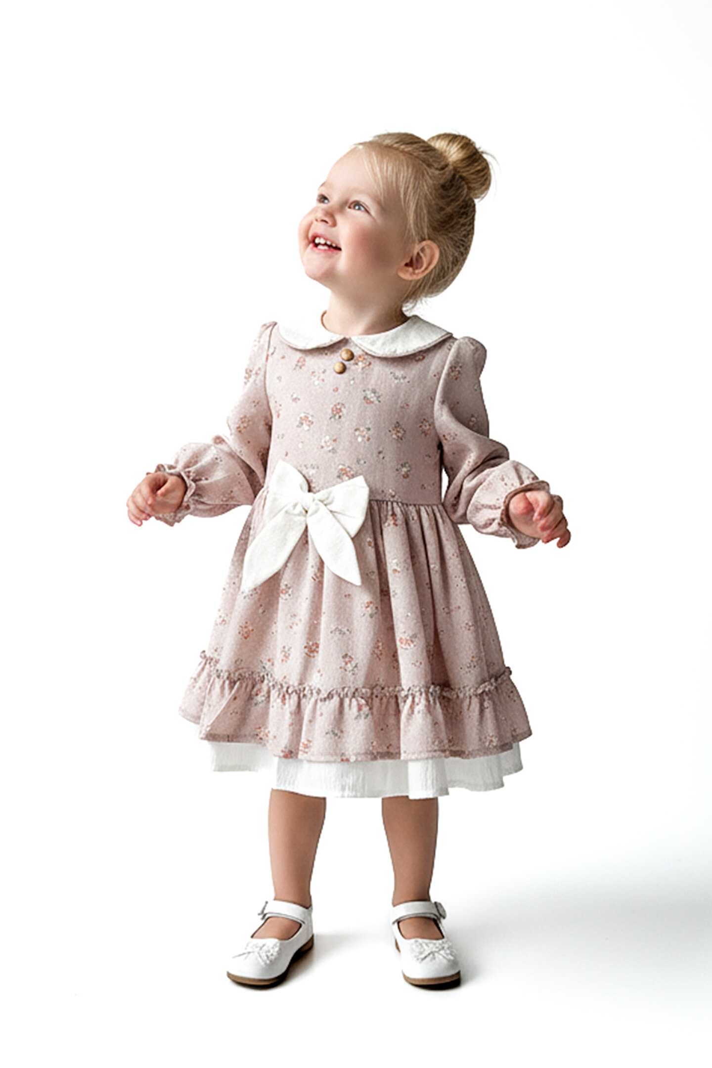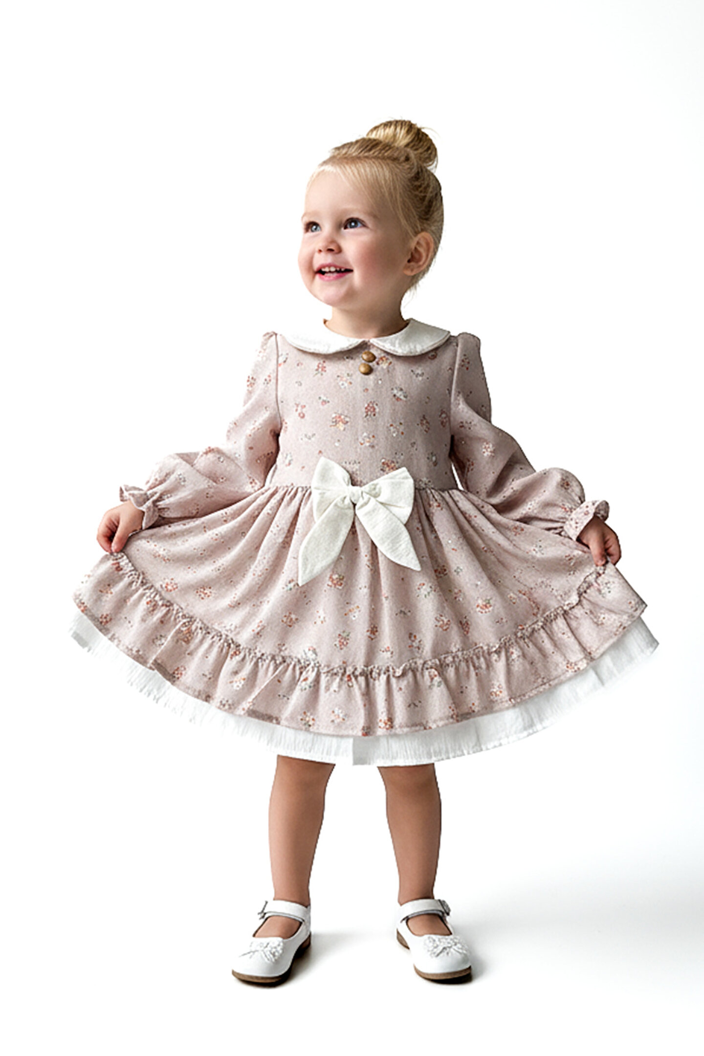 Baby Animals Kız Bebek Elbise Kız Çocuk Elbise Yakalı Doğum Günü Parti Düğün Özel Gün Uzun Kol Fiyonklu Çiçekli