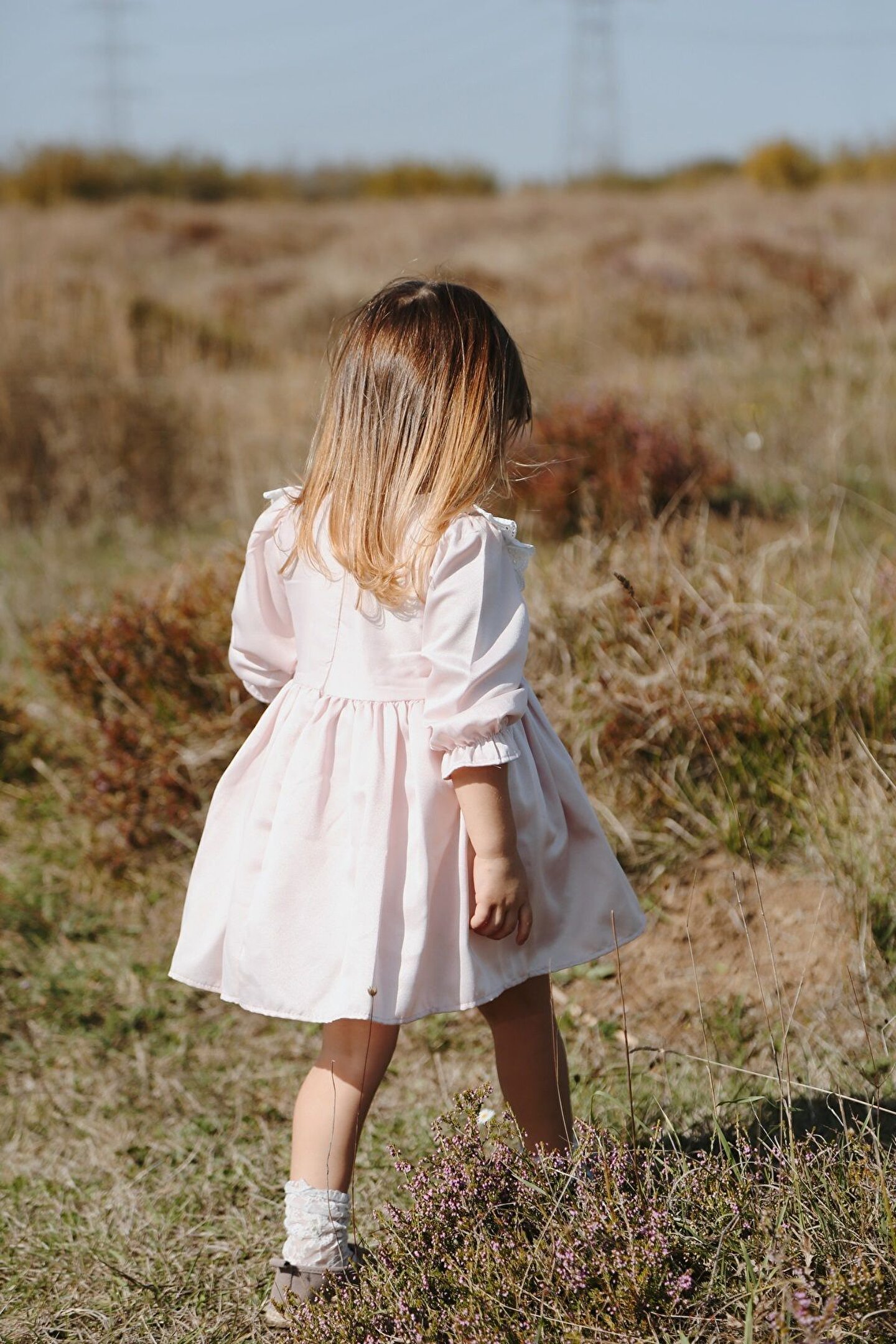 Çocuklar için özel olarak tasarlanmış, pamuklu kumaştan üretilmiş rahat ve konforlu bir elbise; Saten dokusuyla şıklığı ve zarafeti bir arada sunan, çocukların cildine nazik dokunuşuyla dikkat çeken bir tasarım; A; line silueti sayesinde vücut hatlarını nazikçe sararak feminen bir görünüm sağlar; Düz deseniyle sade ve şık bir görünüm sunarken, bisiklet yaka ve uzun kollarla tamamlanan zarif detaylar ekler; Düğün ve nikah gibi özel günlerde tercih edilebilecek ideal bir seçim olan bu elbise, regular boy ve orta kalınlıkta tasarlanmıştır; Astarlı yapısı sayesinde rahatlık ve konforu artırırken, fırfır detayları ile hareket kazandırır; Recycle+organik malzemelerle üretilmiş olup sürdürülebilir moda anlayışını destekler;