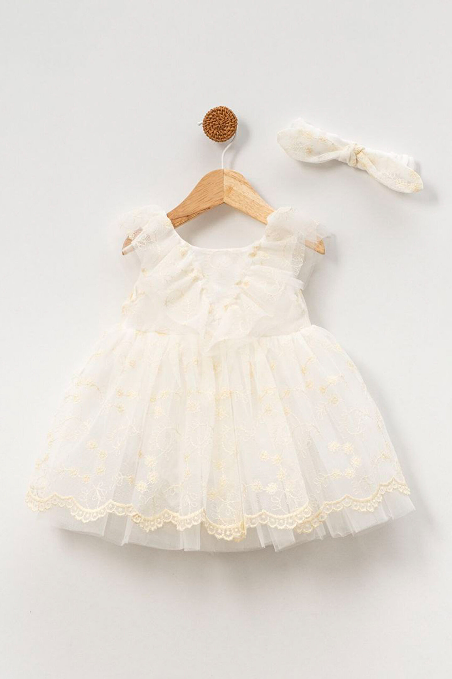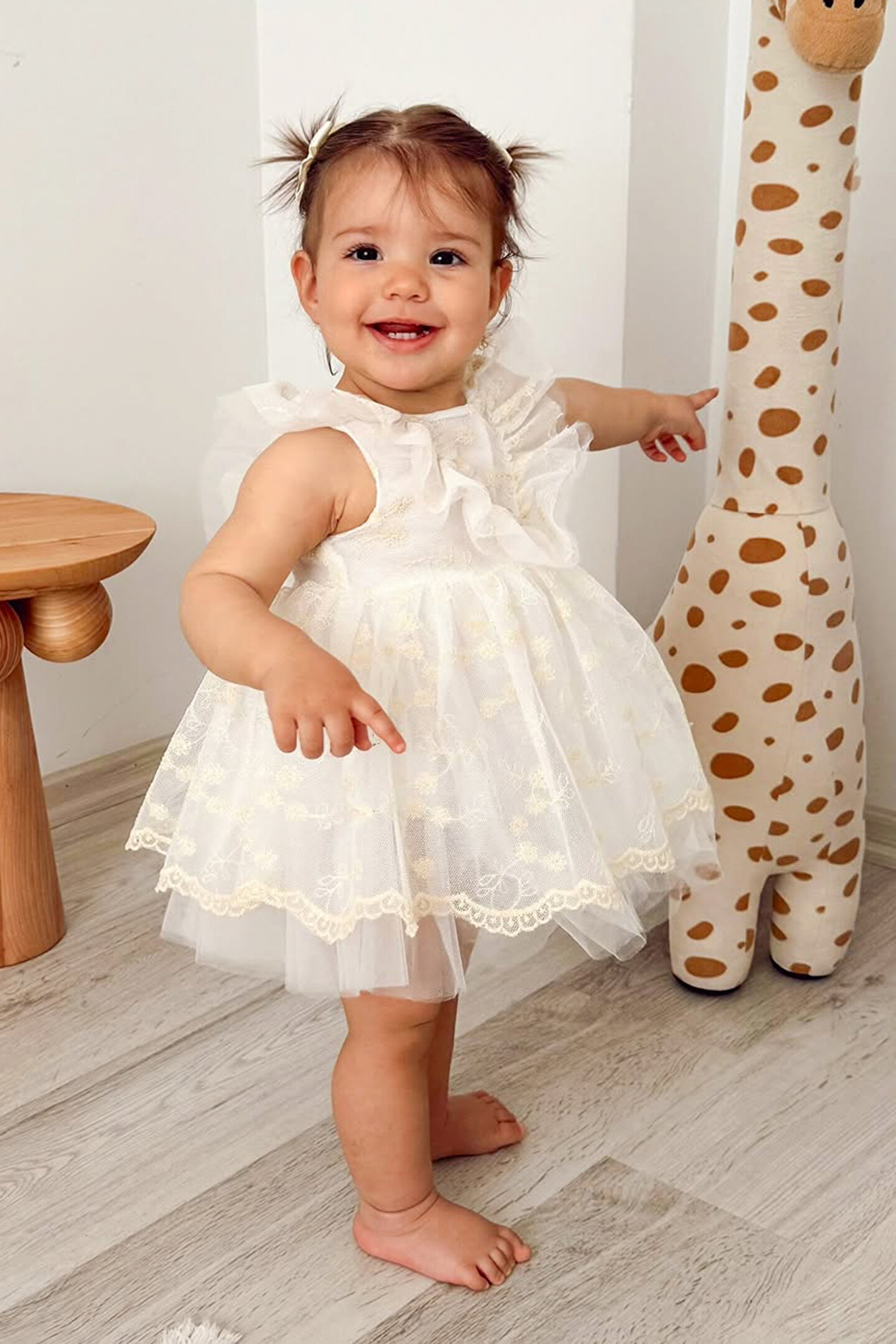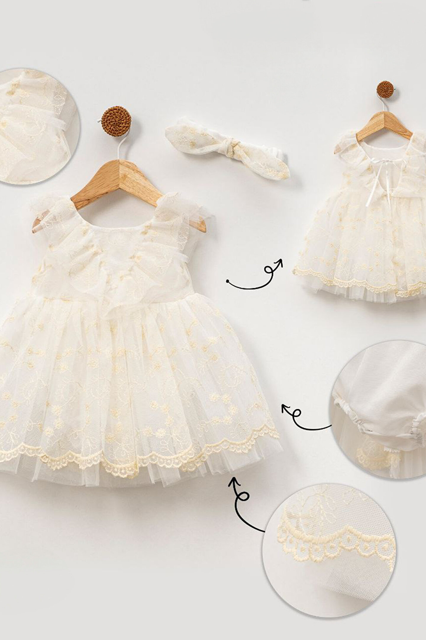 Baby Animals Kız Bebek Kız Çocuk Doğum Günü Parti Düğün Elbise Kısa Kol Bandanalı Dantelli Astarlı Romper