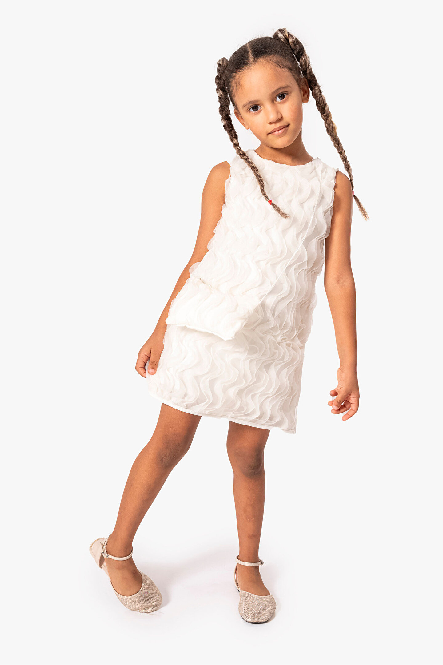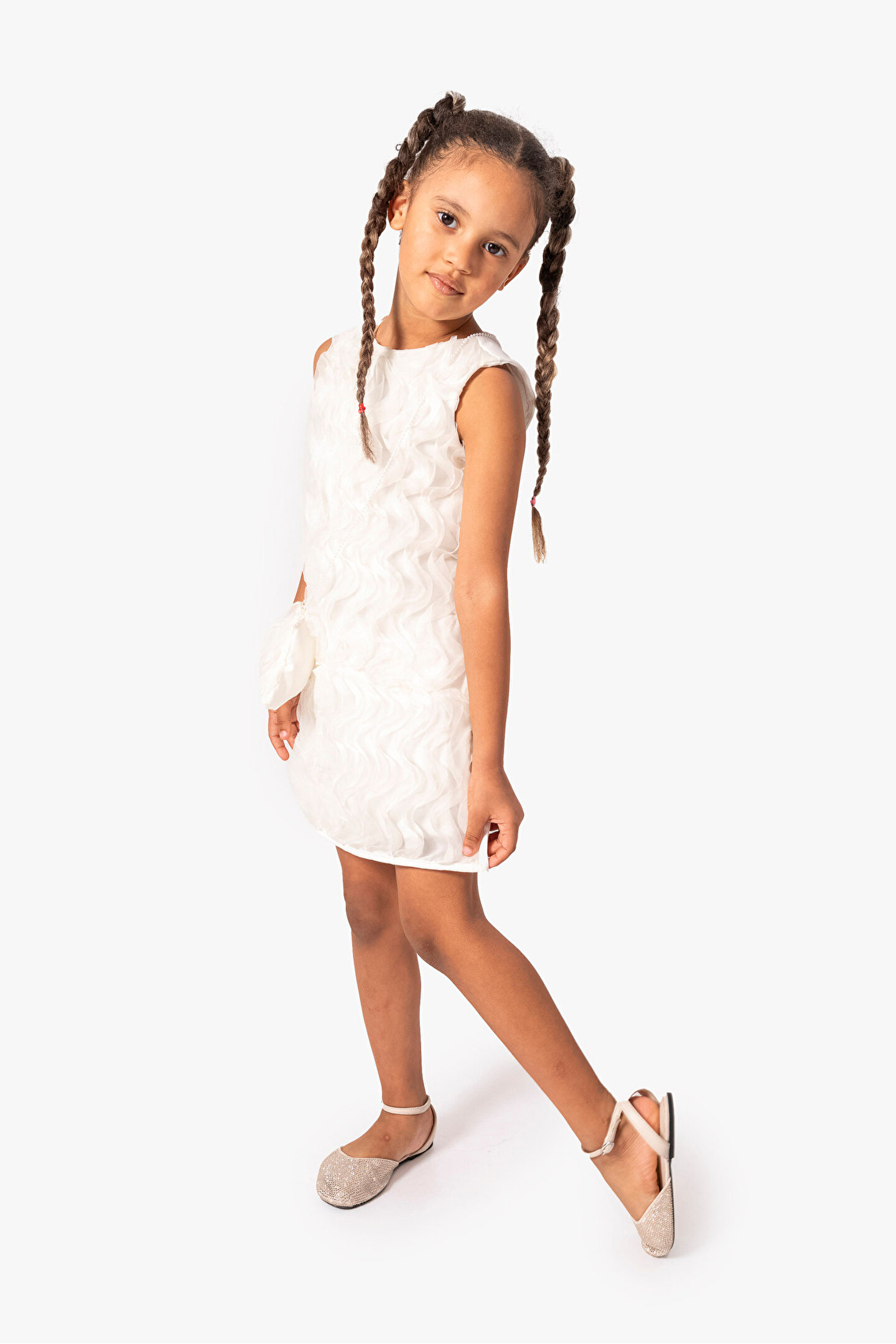 Yazlık Kısa Kollu Dantel Detaylı Kız Çocuk Elbisesi: Küçük prensesinizin yaz mevsiminde özel günlerde zarafetini ve şıklığını ön plana çıkaracak bu elbise, önünde bulunan fiyonk detayı ve dantel işlemeleriyle tasarlanmıştır.; Ayrıca etek kısmında bulunan yırtmaç detayı, hareket özgürlüğü sağlarken bebeğinizin zarif bir görünüm sergilemesini sağlar.; Özellikler: Dantel Detaylar: Elbisenin ön kısmında ve kollarda bulunan dantel detaylar, zarafet ve incelik katarken, küçük prensesinizin görünümünü daha etkileyici hale getirir.; Önünde Fiyonk Detayı: Elbisenin ön kısmında bulunan fiyonk detayı, sevimliliği ve şıklığı artırır.; Küçük prensesinizin görünümüne hoş bir dokunuş ekler.; Yırtmaç Detayı: Etek kısmında bulunan yırtmaç detayı, hareket özgürlüğü sağlarken, elbisenin tasarımına dinamizm katar.; Kısa Kollu Tasarım: Sıcak yaz günlerinde rahatlıkla giyilebilecek kısa kollu tasarım, bebeğinizin serin kalmasını sağlar ve özgürce hareket etmesine olanak tanır.; Yazlık Kullanıma Uygun: Hafif yapısı ve nefes alabilen kumaşıyla yaz aylarında rahatlıkla giyilebilir.; Özel Günler İçin Uygun: Özel günlerde tercih edilebilecek şık tasarımıyla bebeğinizin her anında göz kamaştırmasını sağlar.; Bu yırtmaçlı, önü fiyonklu ve dantel detaylı kısa kollu kız çocuk elbisesi, küçük prensesinizin yazın serin ve şık kalmasını sağlarken, aynı zamanda özel günlerde de zarafetini tamamlar.; Zarif detaylarıyla bezenmiş bu elbise, bebeğinizin tarzını ve güzelliğini ön plana çıkarır.