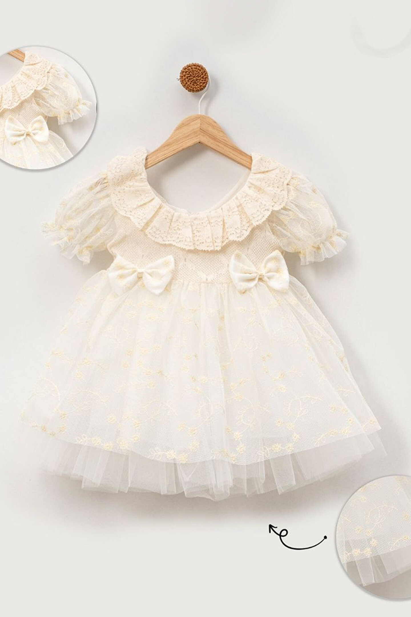 Baby Animals Kız Bebek Kız Çocuk Doğum Günü Parti Düğün Elbise Kısa Kol Fiyonk Dantelli Astarlı